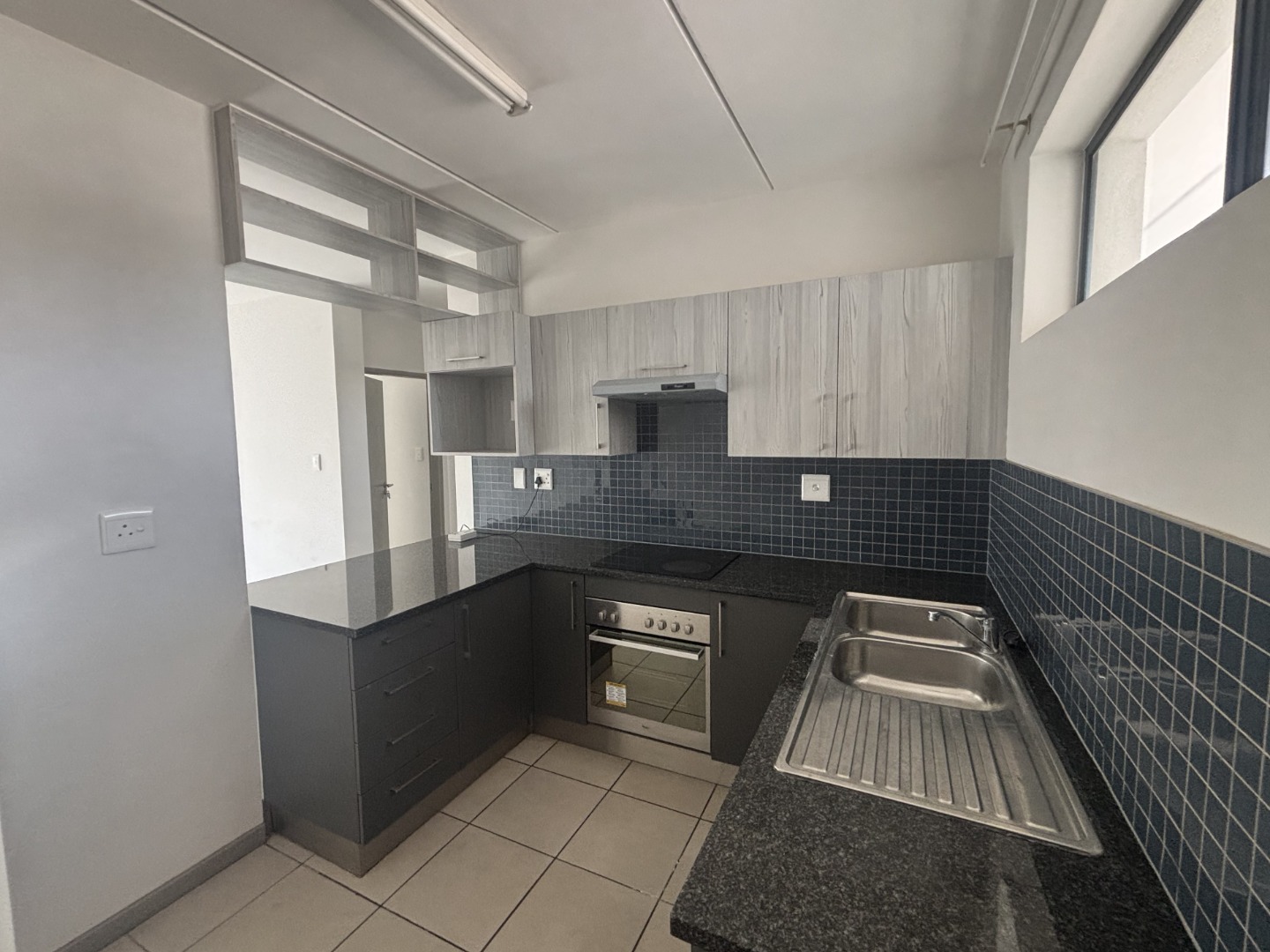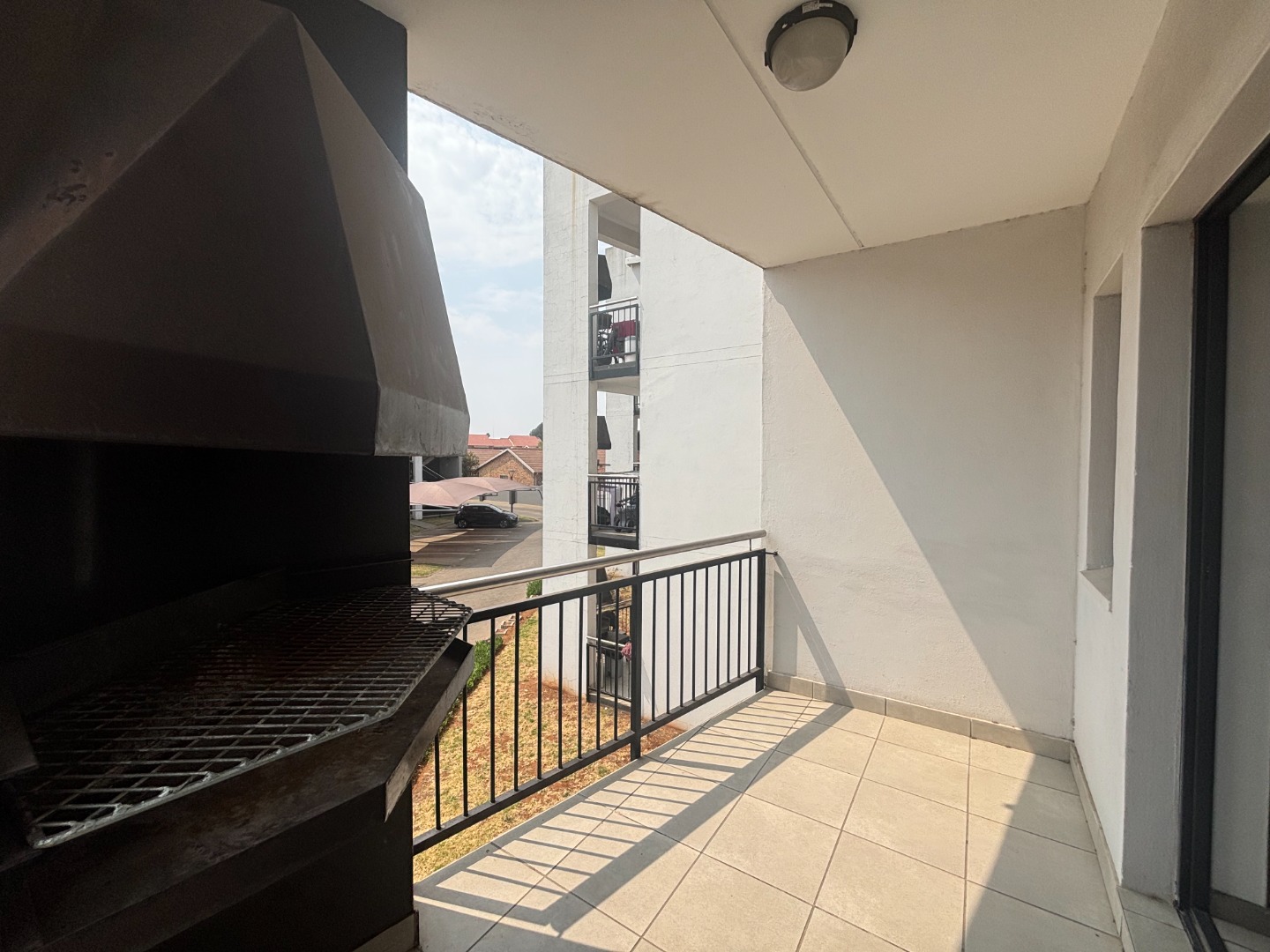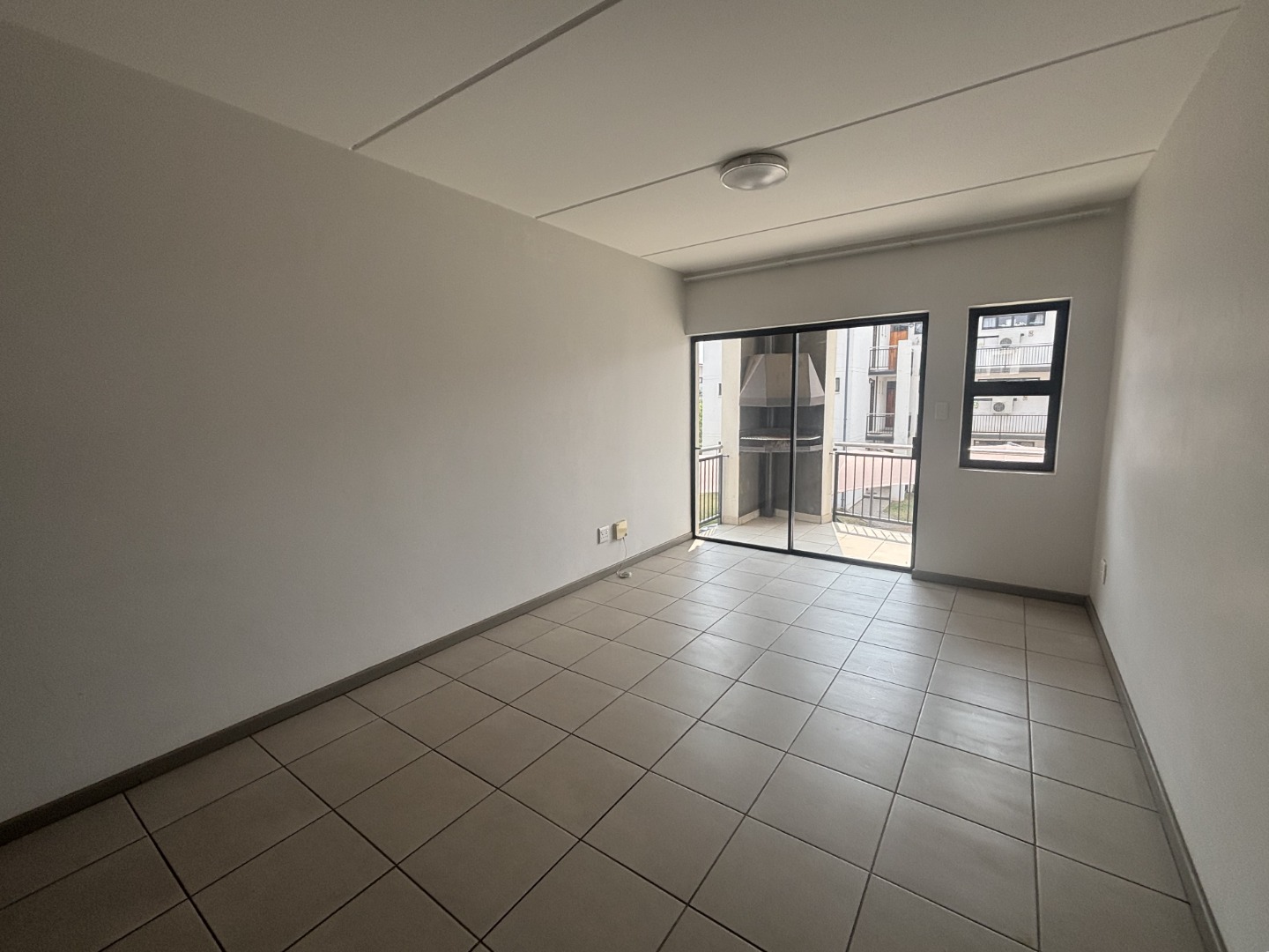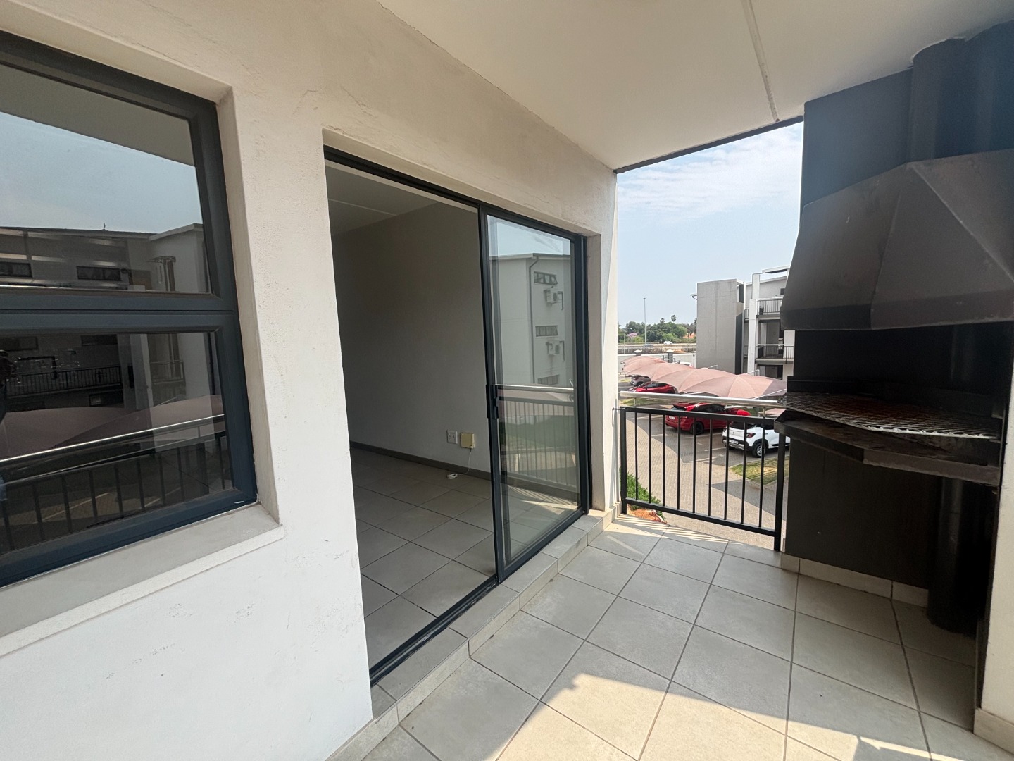 Step into a pristine, move-in-ready home featuring a sleek, contemporary kitchen with ample cabinetry, a tabletop electric stove, and space for your preferred appliances. The open-plan layout seamlessly connects the kitchen to a spacious living area, which flows effortlessly onto a private balcony equipped with a built-in braai—ideal for entertaining friends or enjoying serene evenings with loved ones.