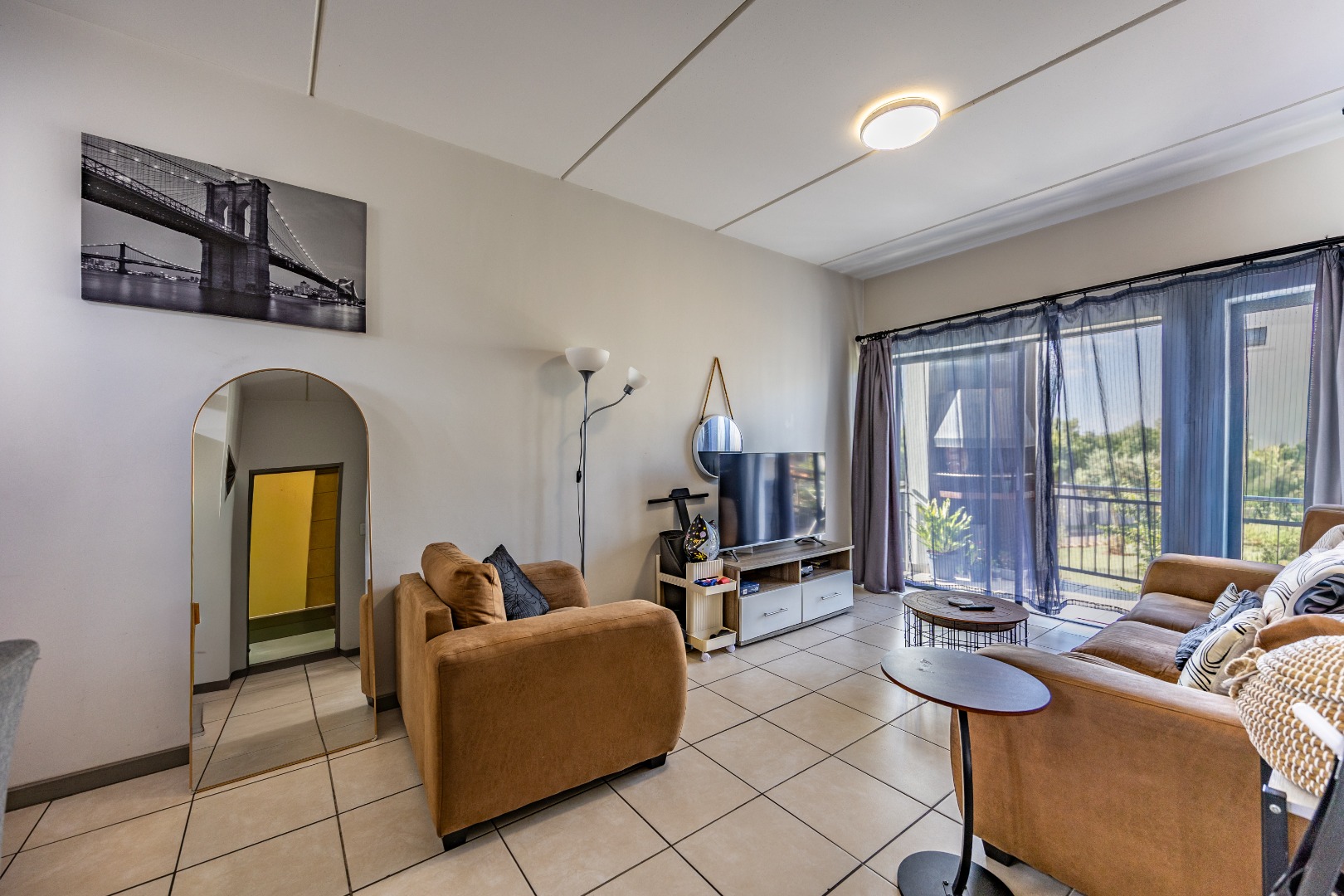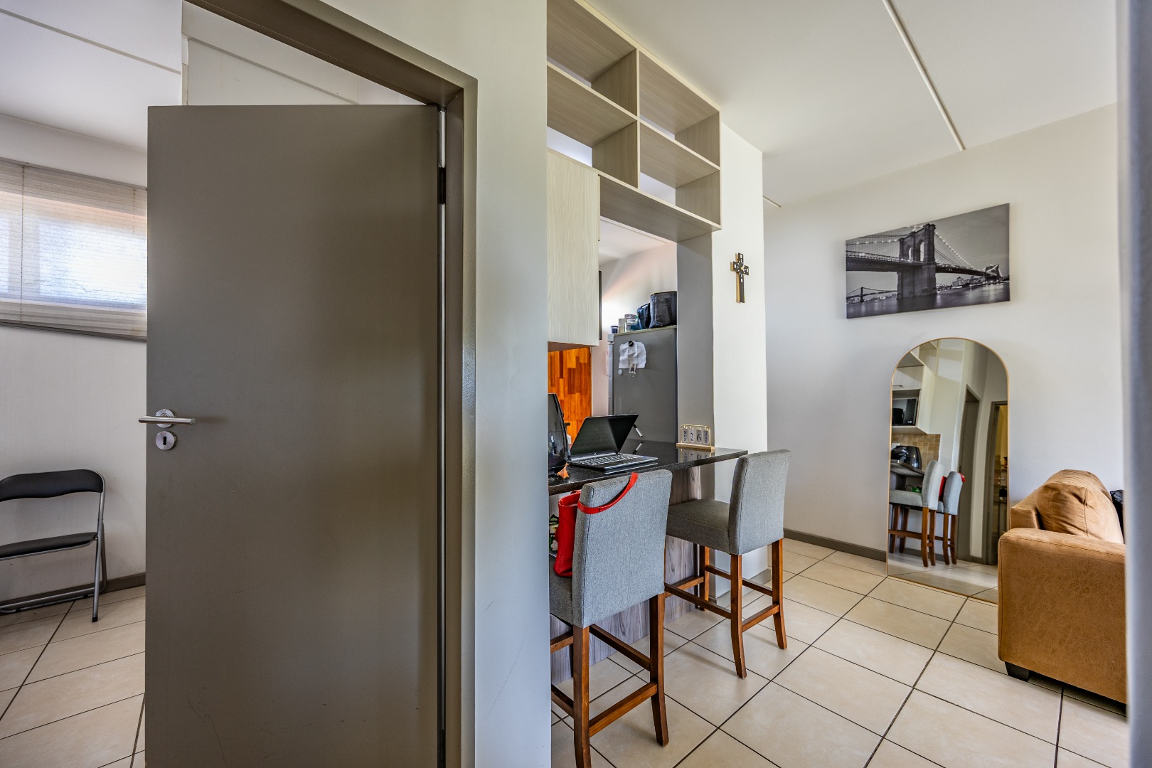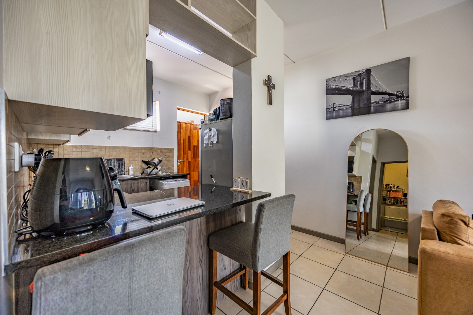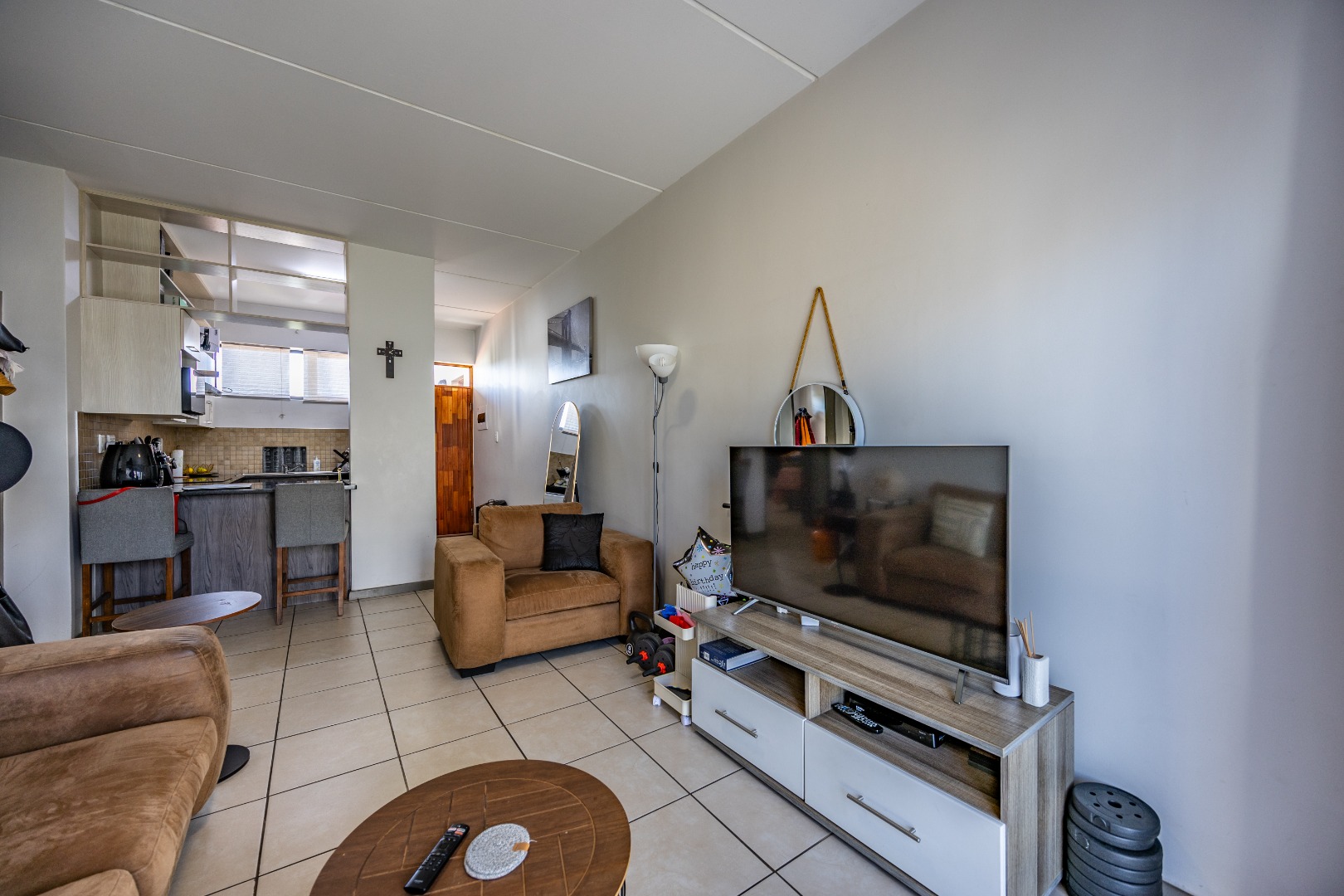 This modern 67 sqm apartment offers comfortable living within a secure complex in Elarduspark, Pretoria. The open-plan layout seamlessly integrates the living area with a contemporary kitchen, creating an inviting space filled with natural light. The kitchen boasts stylish two-tone cabinetry, granite-style countertops, a built-in oven and hob, a double sink, and space for a washing machine, complemented by a practical breakfast bar. Tiled flooring extends throughout, ensuring easy maintenance. The residence features two well-proportioned bedrooms and two bathrooms, providing ample comfort and privacy. Each space is designed for functionality, catering to modern living requirements. Step outside to enjoy the private balcony, offering scenic views and an ideal spot for relaxation or entertaining. The property also includes a built-in braai and a dedicated braai room, perfect for social gatherings. A single parking space is allocated, and residents benefit from well-maintained communal green spaces within the complex. Security is paramount, with 24-hour security, CCTV surveillance, a security post, an alarm system, electric fencing, and a security gate, ensuring peace of mind. The apartment is also fibre-ready, providing high-speed internet connectivity. This sought-after Pretoria suburb is known for its convenient location and access to amenities, making it an excellent choice for a balanced lifestyle. Key Features: * 2 Bedrooms, 2 Bathrooms * 67 sqm Floor Size * Open-plan living with modern kitchen * Balcony with scenic views * Built-in braai and braai room * Dedicated parking space * 24-hour security complex with CCTV * Fibre-ready connectivity