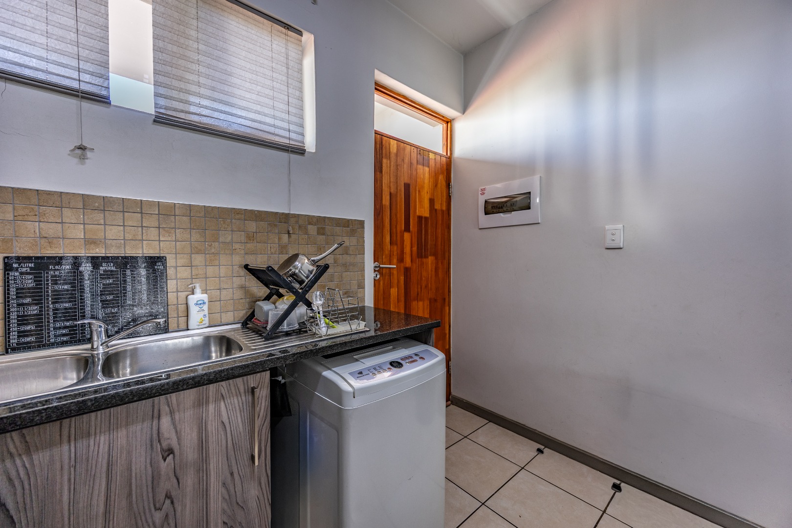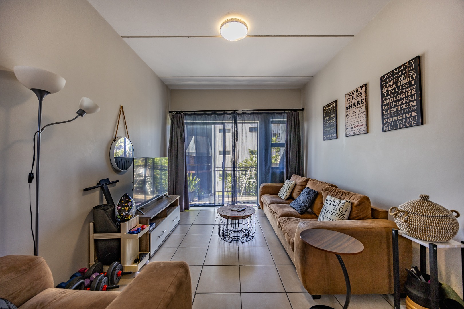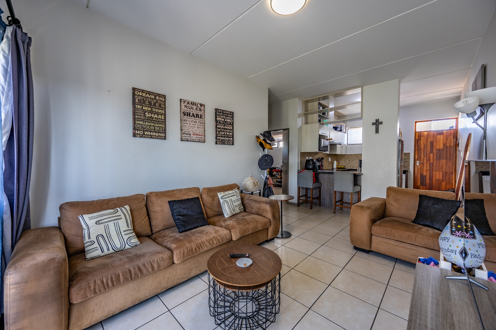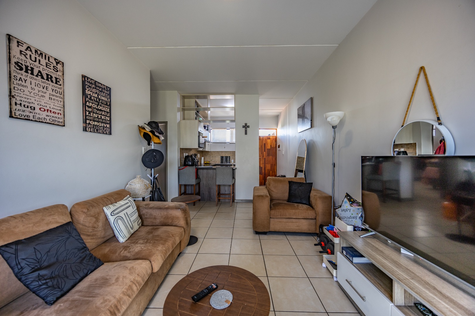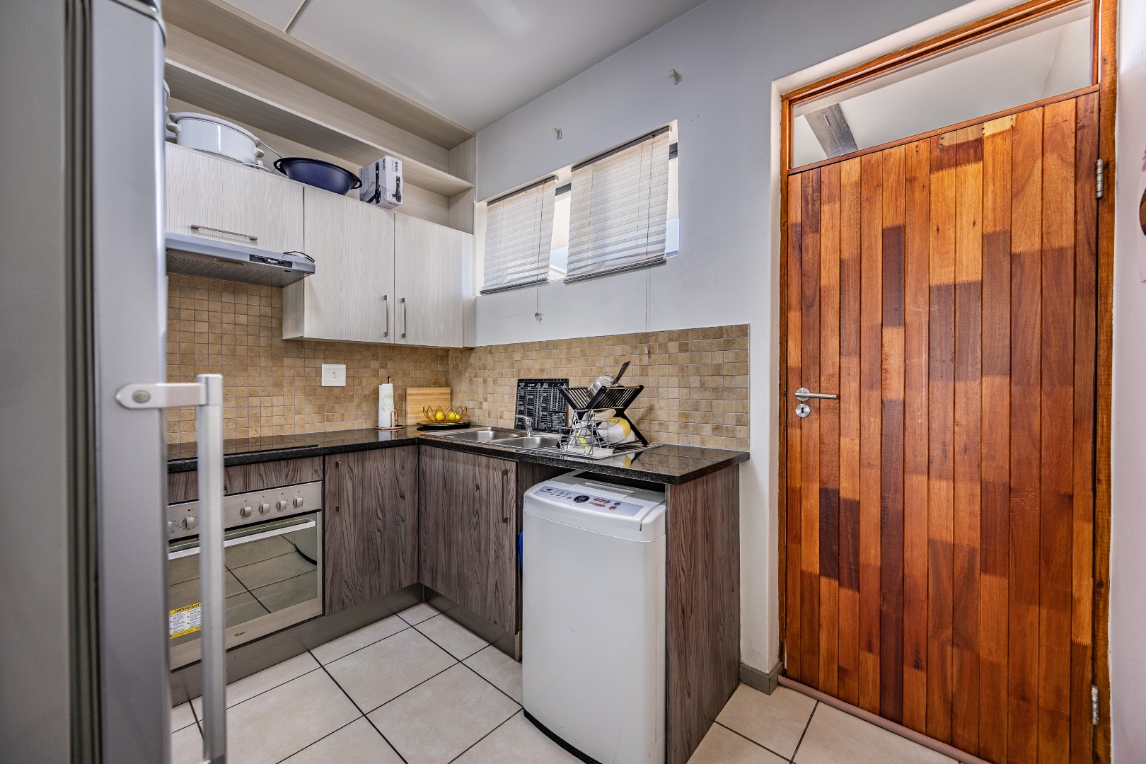 This modern 67 sqm apartment offers comfortable living within a secure complex in Elarduspark, Pretoria. The open-plan layout seamlessly integrates the living area with a contemporary kitchen, creating an inviting space filled with natural light. The kitchen boasts stylish two-tone cabinetry, granite-style countertops, a built-in oven and hob, a double sink, and space for a washing machine, complemented by a practical breakfast bar. Tiled flooring extends throughout, ensuring easy maintenance. The residence features two well-proportioned bedrooms and two bathrooms, providing ample comfort and privacy. Each space is designed for functionality, catering to modern living requirements. Step outside to enjoy the private balcony, offering scenic views and an ideal spot for relaxation or entertaining. The property also includes a built-in braai and a dedicated braai room, perfect for social gatherings. A single parking space is allocated, and residents benefit from well-maintained communal green spaces within the complex. Security is paramount, with 24-hour security, CCTV surveillance, a security post, an alarm system, electric fencing, and a security gate, ensuring peace of mind. The apartment is also fibre-ready, providing high-speed internet connectivity. This sought-after Pretoria suburb is known for its convenient location and access to amenities, making it an excellent choice for a balanced lifestyle. Key Features: * 2 Bedrooms, 2 Bathrooms * 67 sqm Floor Size * Open-plan living with modern kitchen * Balcony with scenic views * Built-in braai and braai room * Dedicated parking space * 24-hour security complex with CCTV * Fibre-ready connectivity