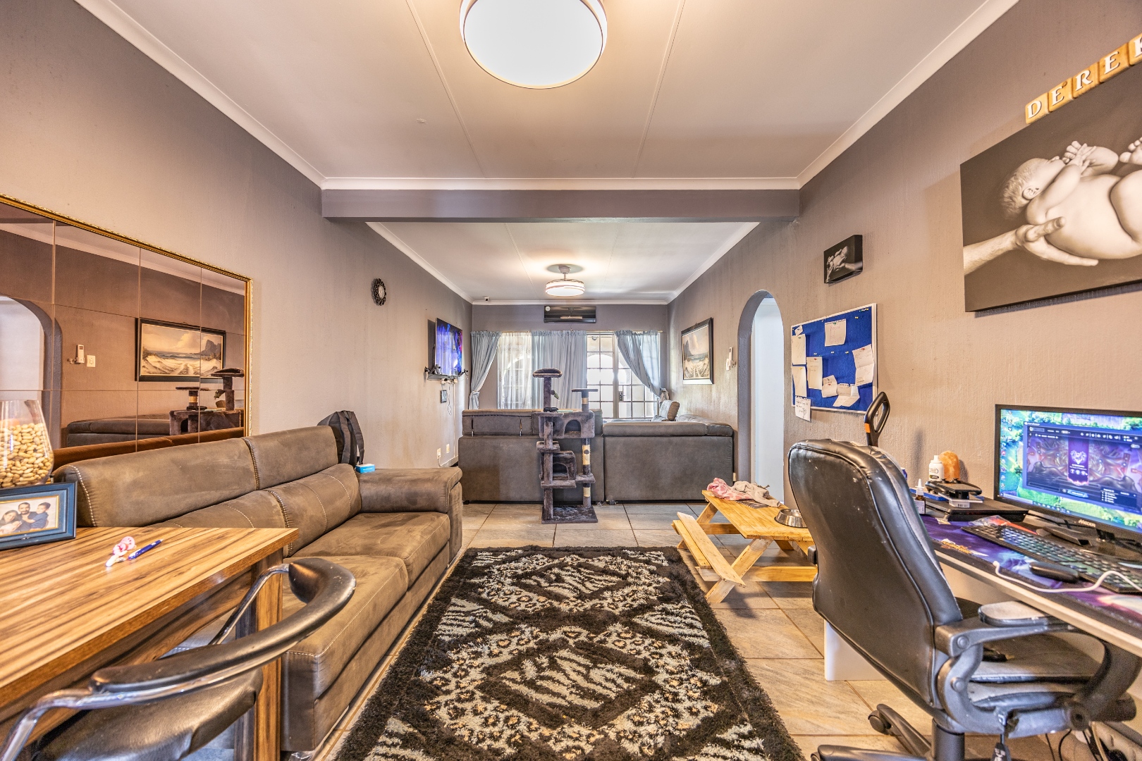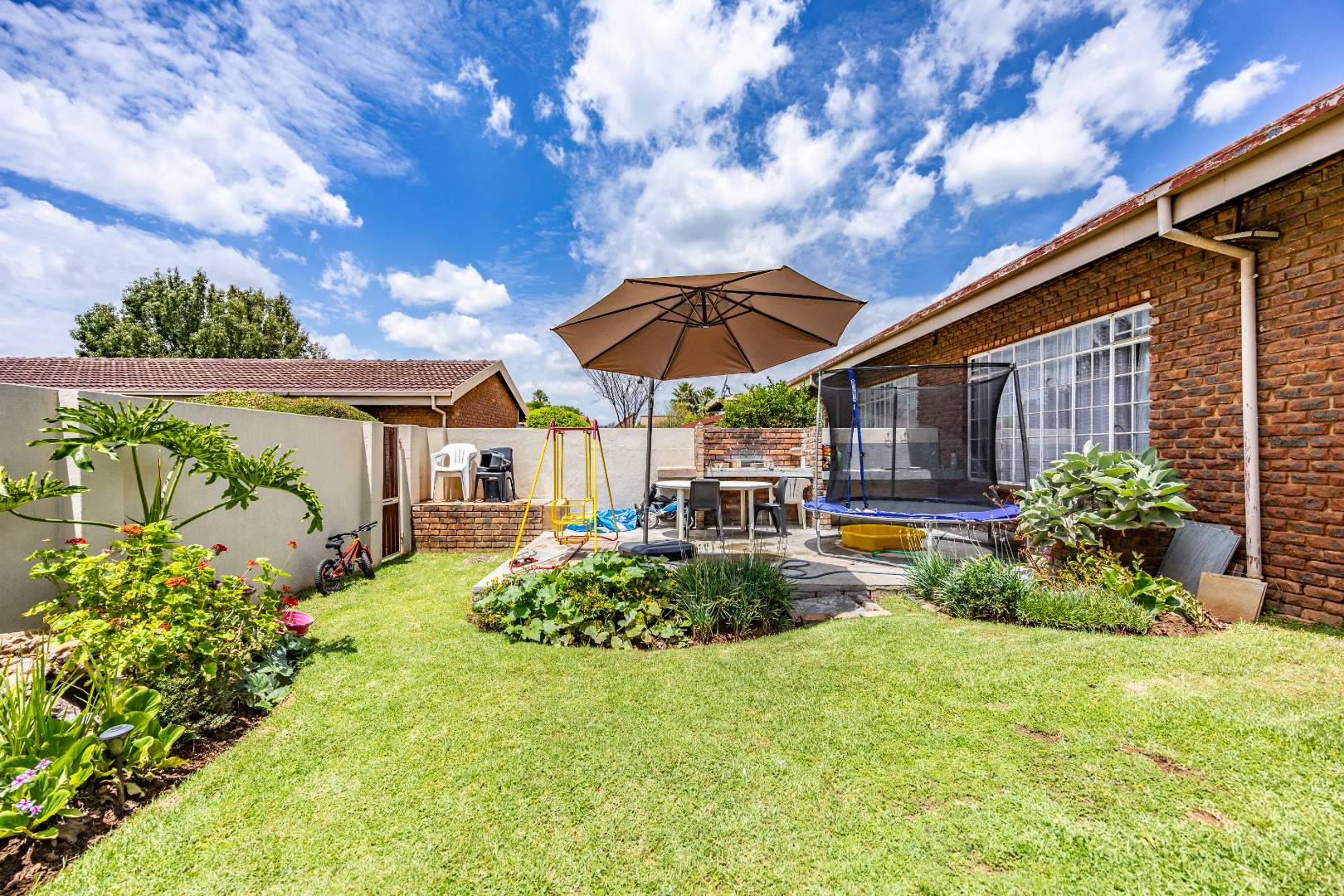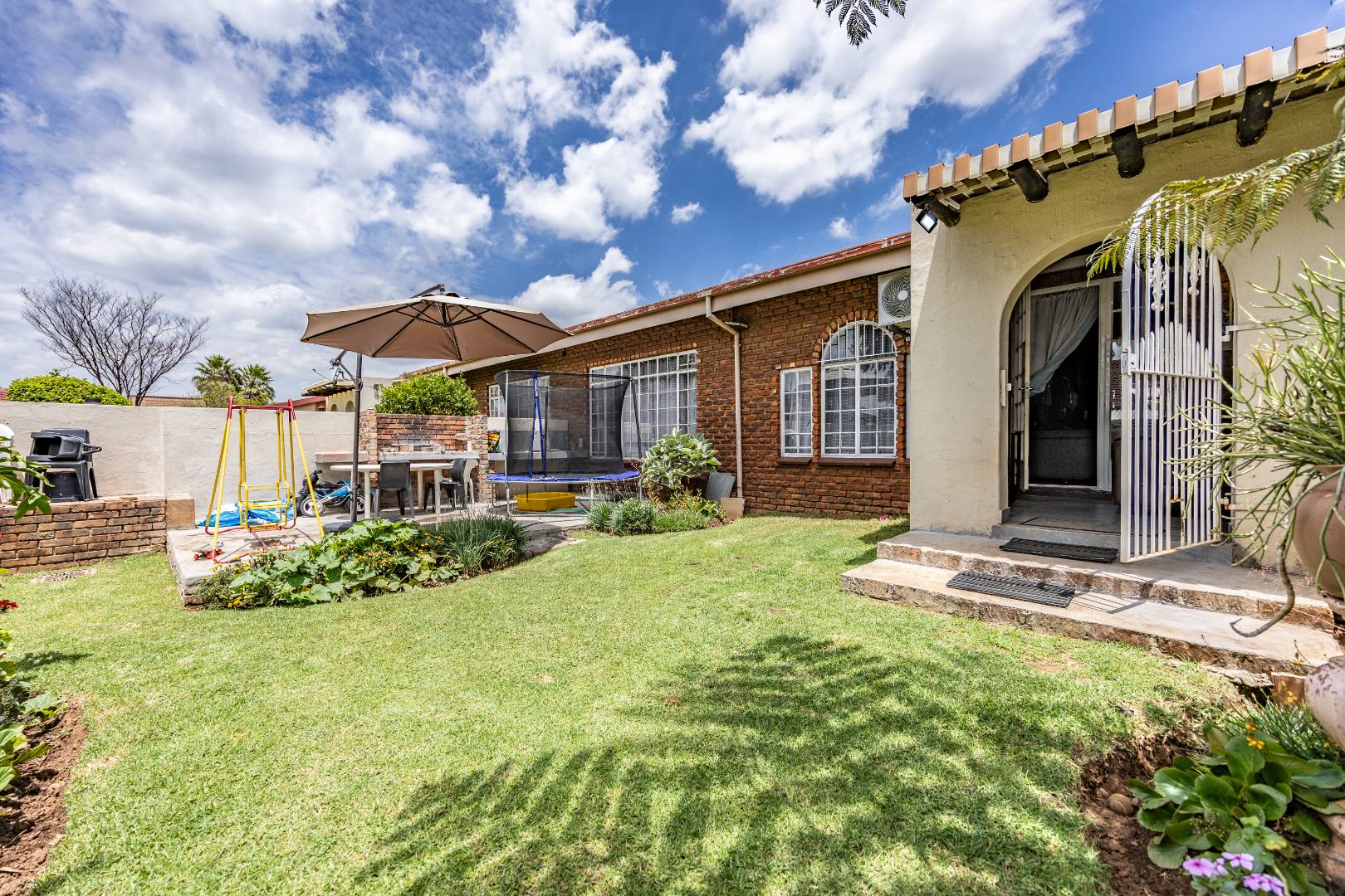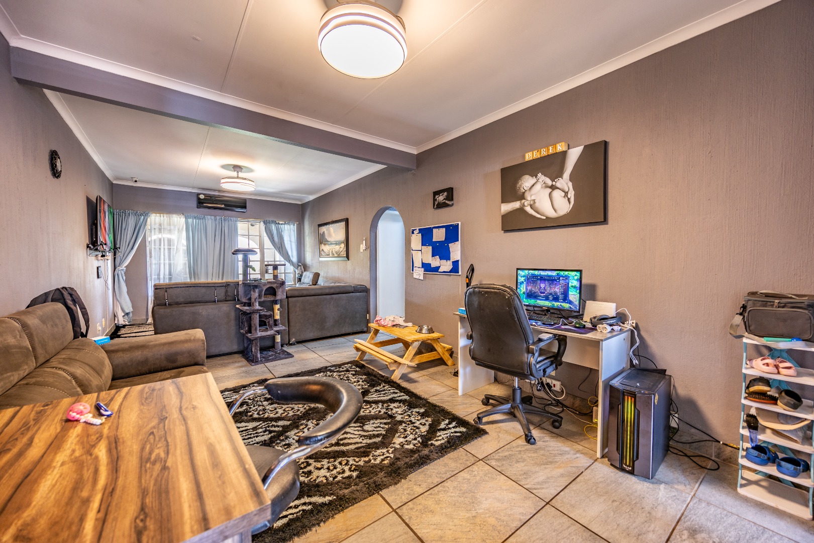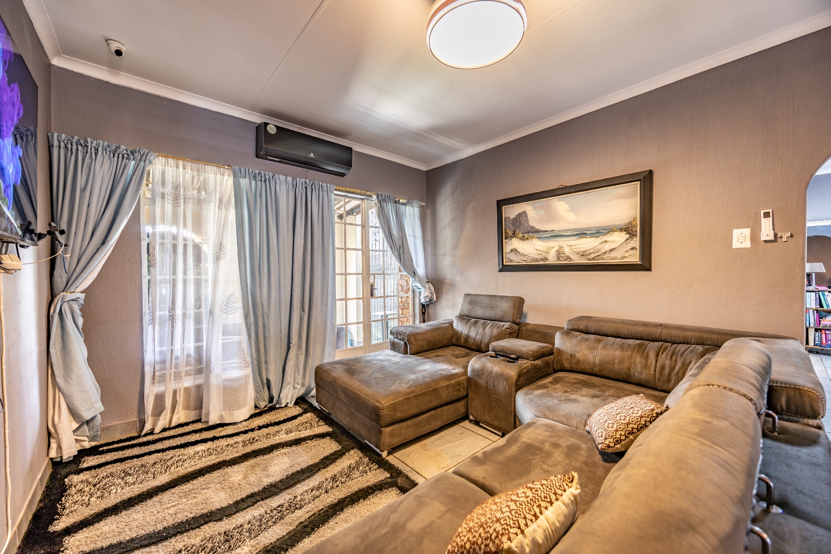 Discover this inviting 3-bedroom, 2-bathroom residence situated within a secure complex in Elarduspark, Pretoria. This property offers a comfortable 109 sqm of living space, designed for practical family living. The exterior boasts a well-maintained lawn and a brick facade, complemented by an outdoor patio area perfect for entertaining. The garden features child-friendly amenities, creating an ideal environment for families, further secured by an access gate. Step inside to a versatile living area featuring durable tiled flooring and an open-plan layout, seamlessly connecting the lounge and dining room. This spacious area is equipped with an air conditioning unit, ensuring comfort throughout the seasons. The design allows for flexible furniture arrangements, accommodating both relaxation and a dedicated workspace. The functional kitchen is a highlight, offering abundant wooden cabinetry for ample storage, a built-in oven, and space for a large double-door refrigerator. Tiled flooring ensures easy maintenance, and the property benefits from a dedicated pantry. This well-appointed space caters efficiently to everyday culinary needs. The home comprises three comfortable bedrooms and two bathrooms, providing sufficient accommodation for a family. Security is well-addressed with an alarm system and perimeter fencing, contributing to a safe living environment. Connectivity is ensured with fibre internet availability, catering to modern lifestyle demands. The property also includes two garages and two additional parking spaces, offering convenience. * 3 Bedrooms, 2 Bathrooms * 109 sqm Floor Size * 2 Garages, 2 Parking Spaces * Outdoor Patio & Garden * Tiled Flooring & Air Conditioning * Fibre Ready * Access Gate, Alarm, Fence * Pantry