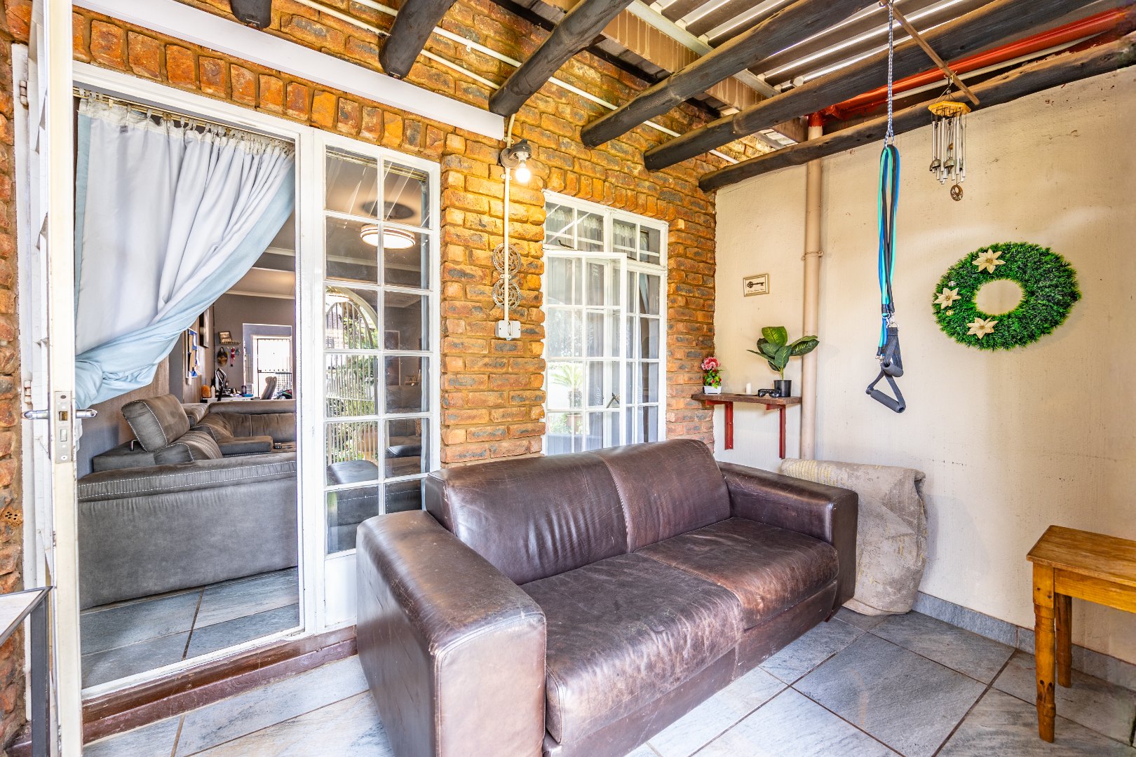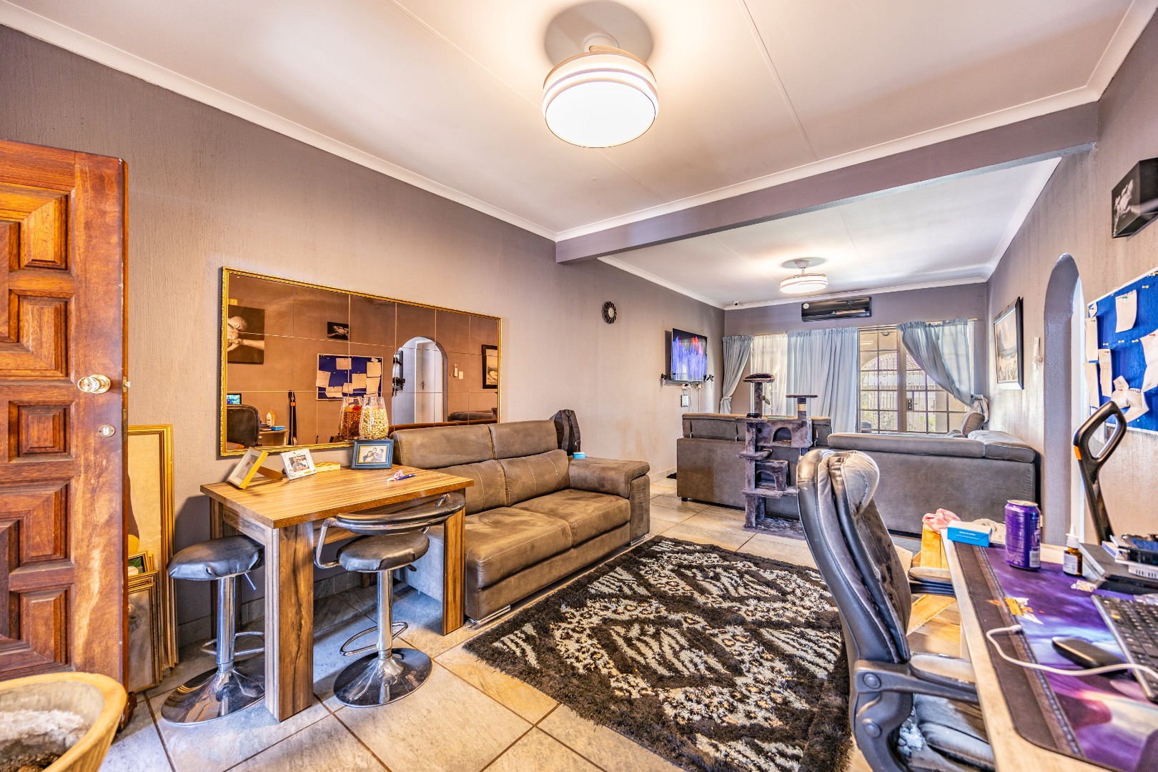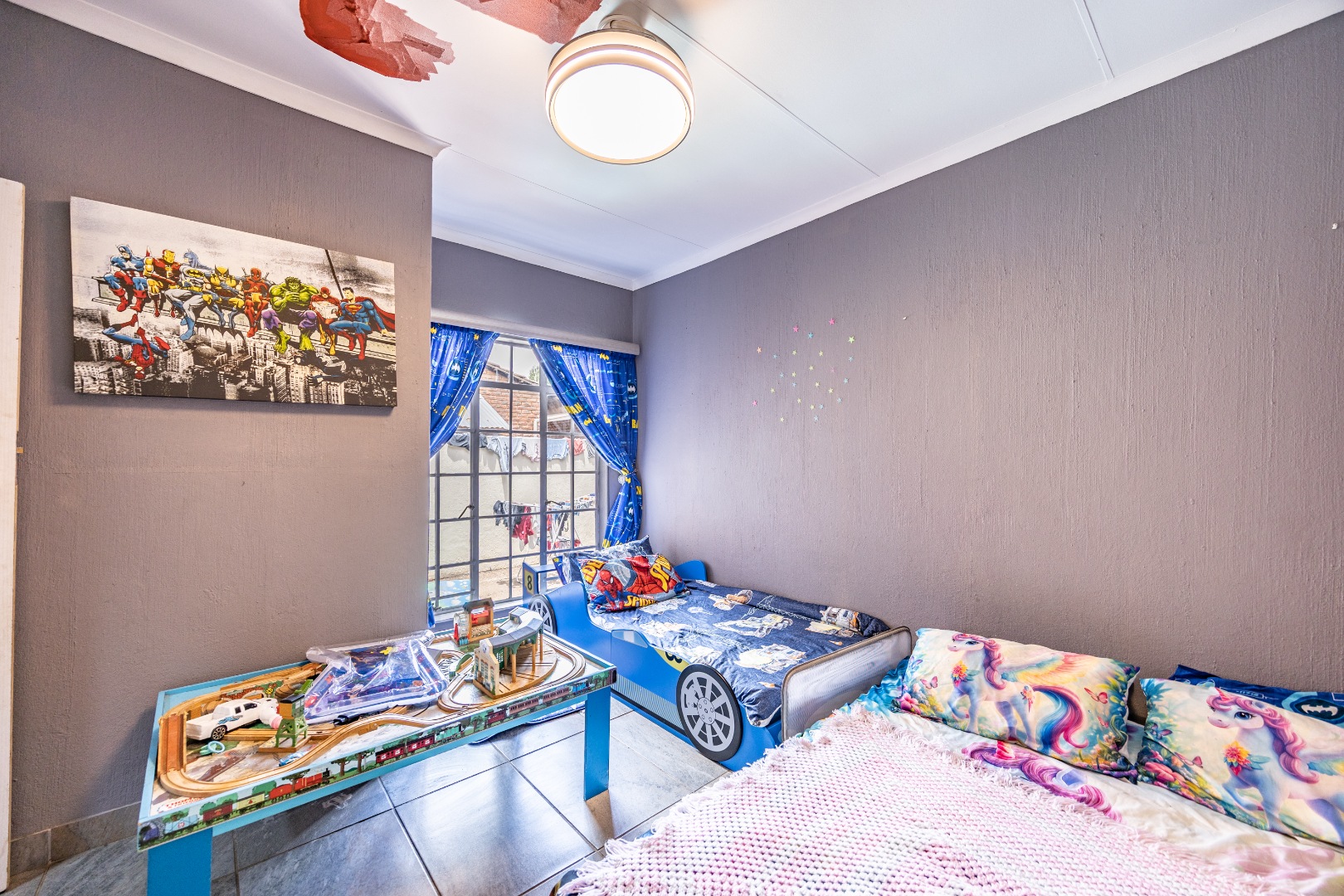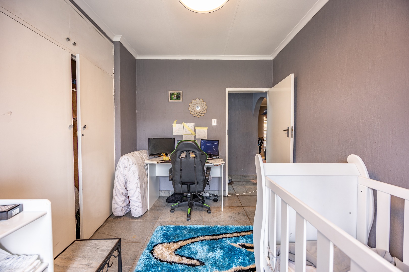Discover this inviting 3-bedroom, 2-bathroom residence situated within a secure complex in Elarduspark, Pretoria. This property offers a comfortable 109 sqm of living space, designed for practical family living. The exterior boasts a well-maintained lawn and a brick facade, complemented by an outdoor patio area perfect for entertaining. The garden features child-friendly amenities, creating an ideal environment for families, further secured by an access gate. Step inside to a versatile living area featuring durable tiled flooring and an open-plan layout, seamlessly connecting the lounge and dining room. This spacious area is equipped with an air conditioning unit, ensuring comfort throughout the seasons. The design allows for flexible furniture arrangements, accommodating both relaxation and a dedicated workspace. The functional kitchen is a highlight, offering abundant wooden cabinetry for ample storage, a built-in oven, and space for a large double-door refrigerator. Tiled flooring ensures easy maintenance, and the property benefits from a dedicated pantry. This well-appointed space caters efficiently to everyday culinary needs. The home comprises three comfortable bedrooms and two bathrooms, providing sufficient accommodation for a family. Security is well-addressed with an alarm system and perimeter fencing, contributing to a safe living environment. Connectivity is ensured with fibre internet availability, catering to modern lifestyle demands. The property also includes two garages and two additional parking spaces, offering convenience. * 3 Bedrooms, 2 Bathrooms * 109 sqm Floor Size * 2 Garages, 2 Parking Spaces * Outdoor Patio & Garden * Tiled Flooring & Air Conditioning * Fibre Ready * Access Gate, Alarm, Fence * Pantry