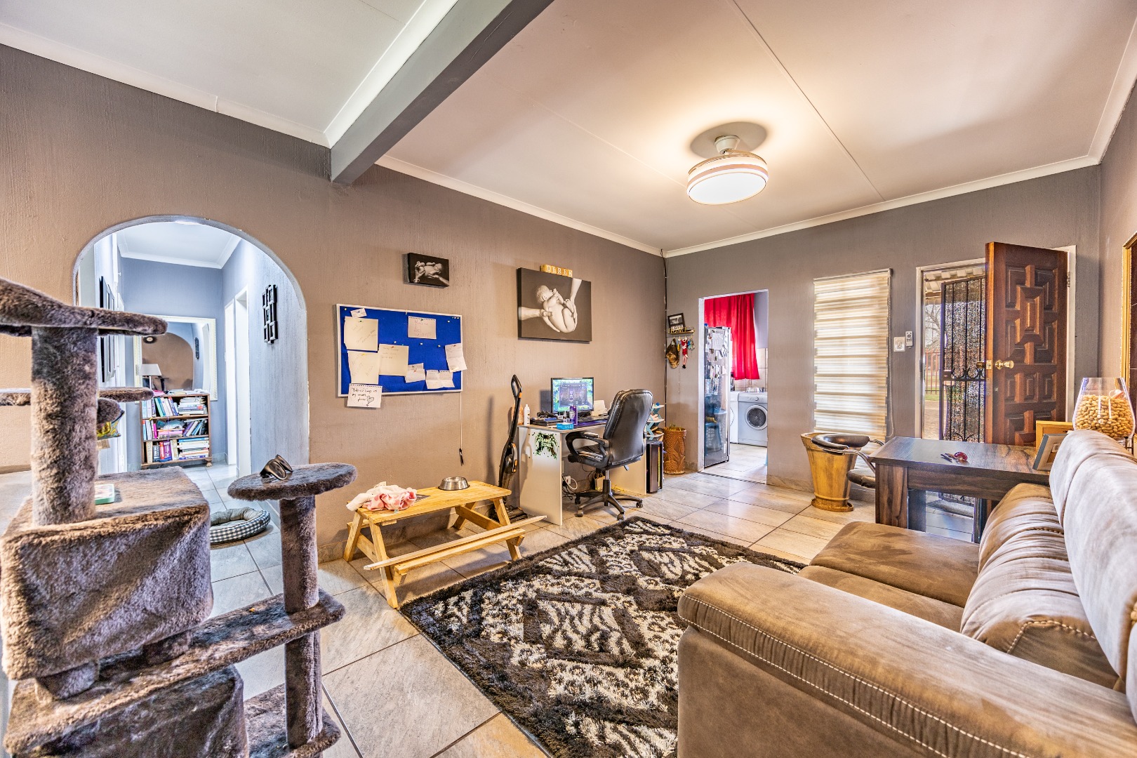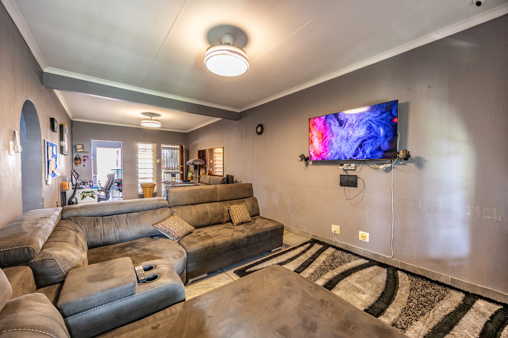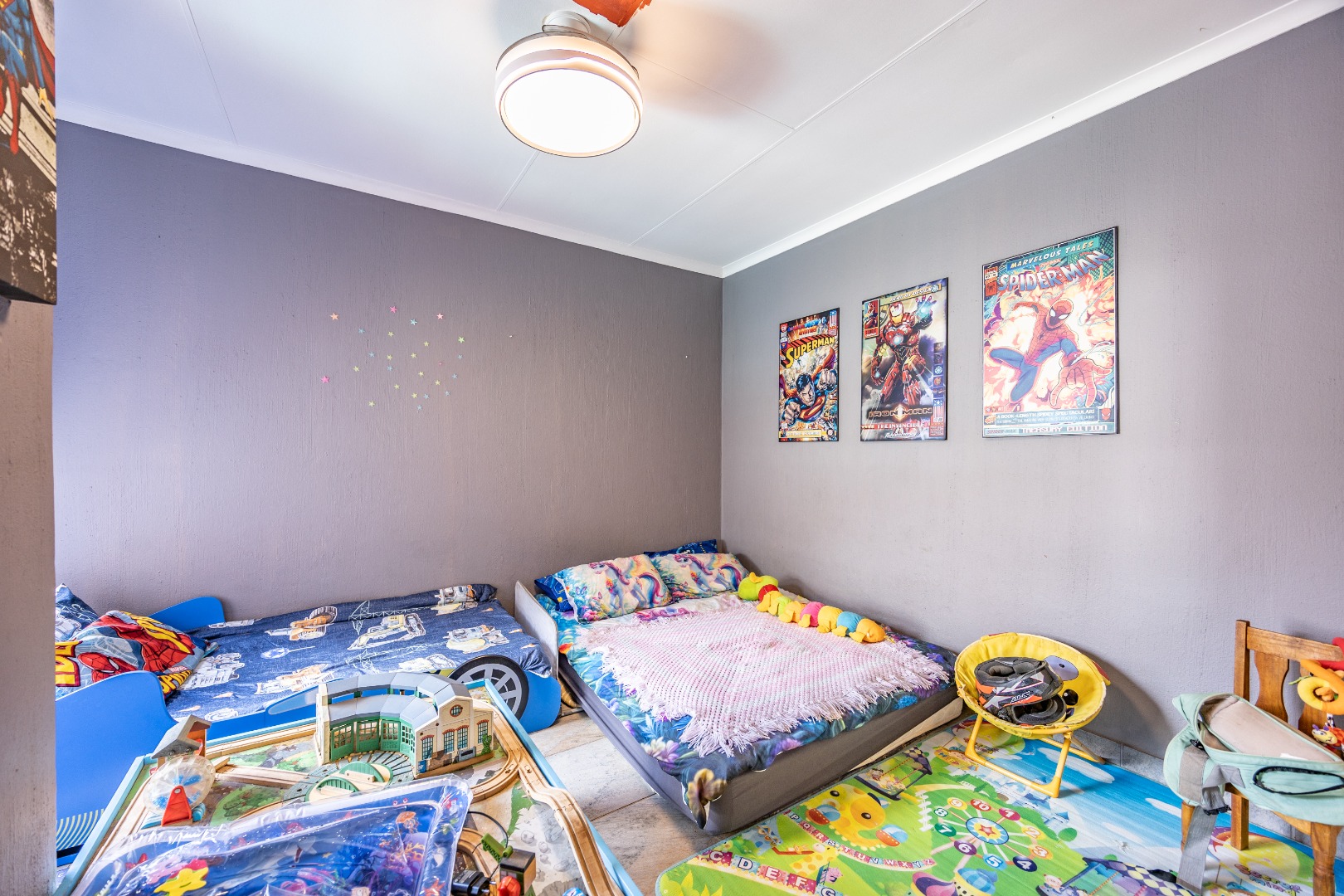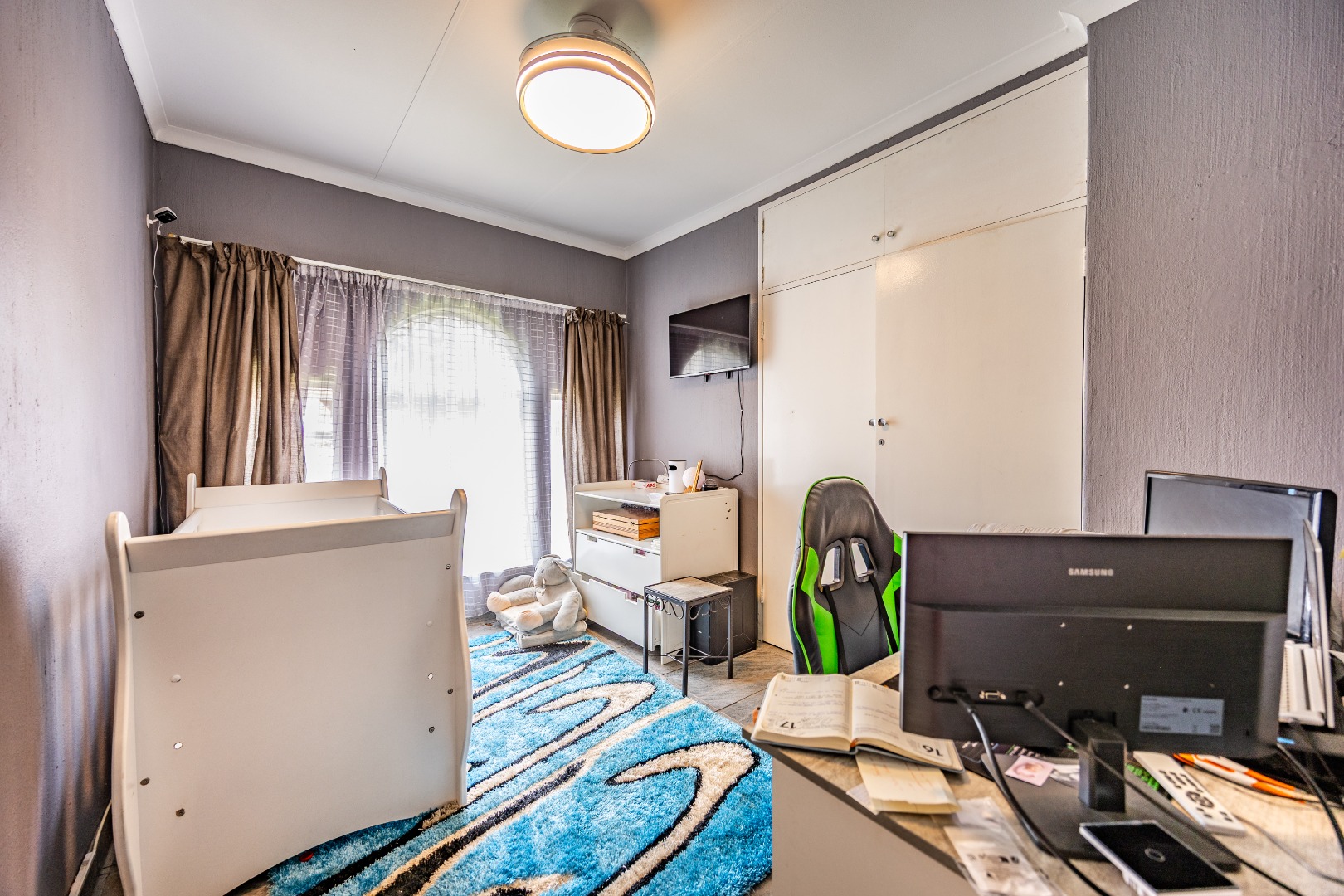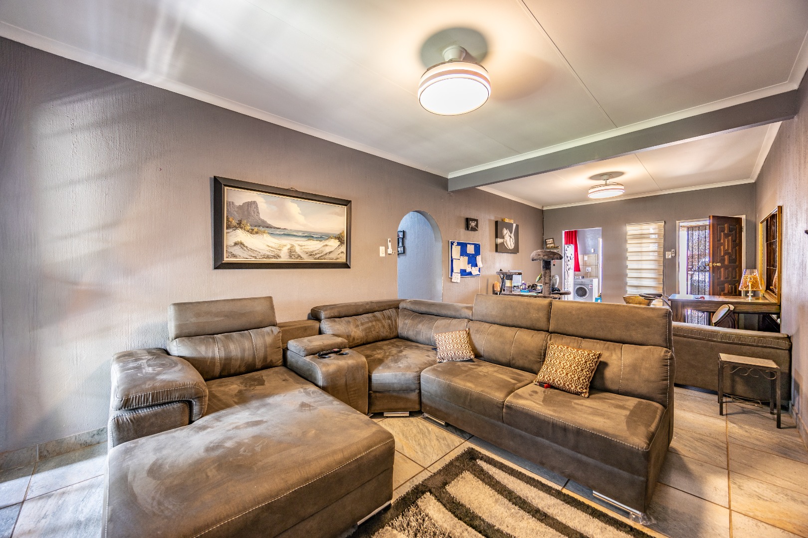 Discover this inviting 3-bedroom, 2-bathroom residence situated within a secure complex in Elarduspark, Pretoria. This property offers a comfortable 109 sqm of living space, designed for practical family living. The exterior boasts a well-maintained lawn and a brick facade, complemented by an outdoor patio area perfect for entertaining. The garden features child-friendly amenities, creating an ideal environment for families, further secured by an access gate. Step inside to a versatile living area featuring durable tiled flooring and an open-plan layout, seamlessly connecting the lounge and dining room. This spacious area is equipped with an air conditioning unit, ensuring comfort throughout the seasons. The design allows for flexible furniture arrangements, accommodating both relaxation and a dedicated workspace. The functional kitchen is a highlight, offering abundant wooden cabinetry for ample storage, a built-in oven, and space for a large double-door refrigerator. Tiled flooring ensures easy maintenance, and the property benefits from a dedicated pantry. This well-appointed space caters efficiently to everyday culinary needs. The home comprises three comfortable bedrooms and two bathrooms, providing sufficient accommodation for a family. Security is well-addressed with an alarm system and perimeter fencing, contributing to a safe living environment. Connectivity is ensured with fibre internet availability, catering to modern lifestyle demands. The property also includes two garages and two additional parking spaces, offering convenience. * 3 Bedrooms, 2 Bathrooms * 109 sqm Floor Size * 2 Garages, 2 Parking Spaces * Outdoor Patio & Garden * Tiled Flooring & Air Conditioning * Fibre Ready * Access Gate, Alarm, Fence * Pantry