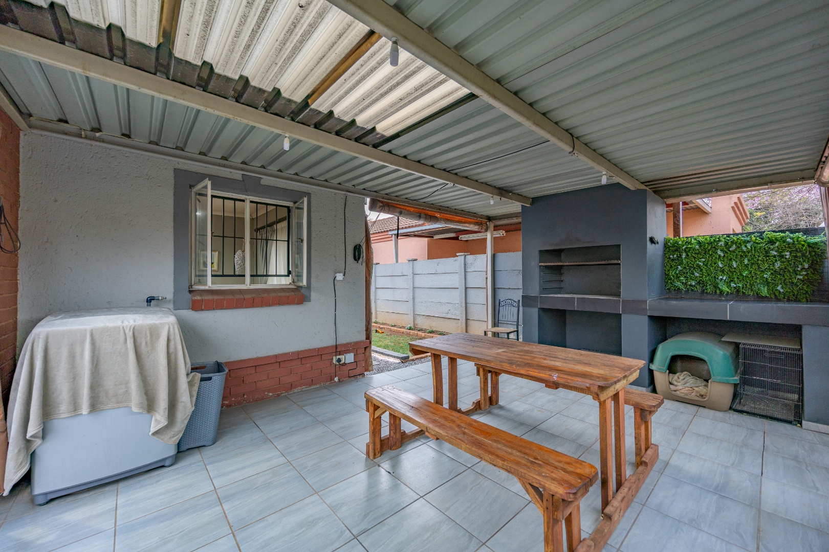 The exterior has been upgraded to a modern, low-maintenance design, complemented by a newly built entertainment area with a built-in braai for hosting family and friends. Additional features include undercover parking for two vehicles, ensuring your cars are protected throughout the year. This move-in-ready home combines comfort, style, and functionality, making it a must-see opportunity in Eloffsdal.