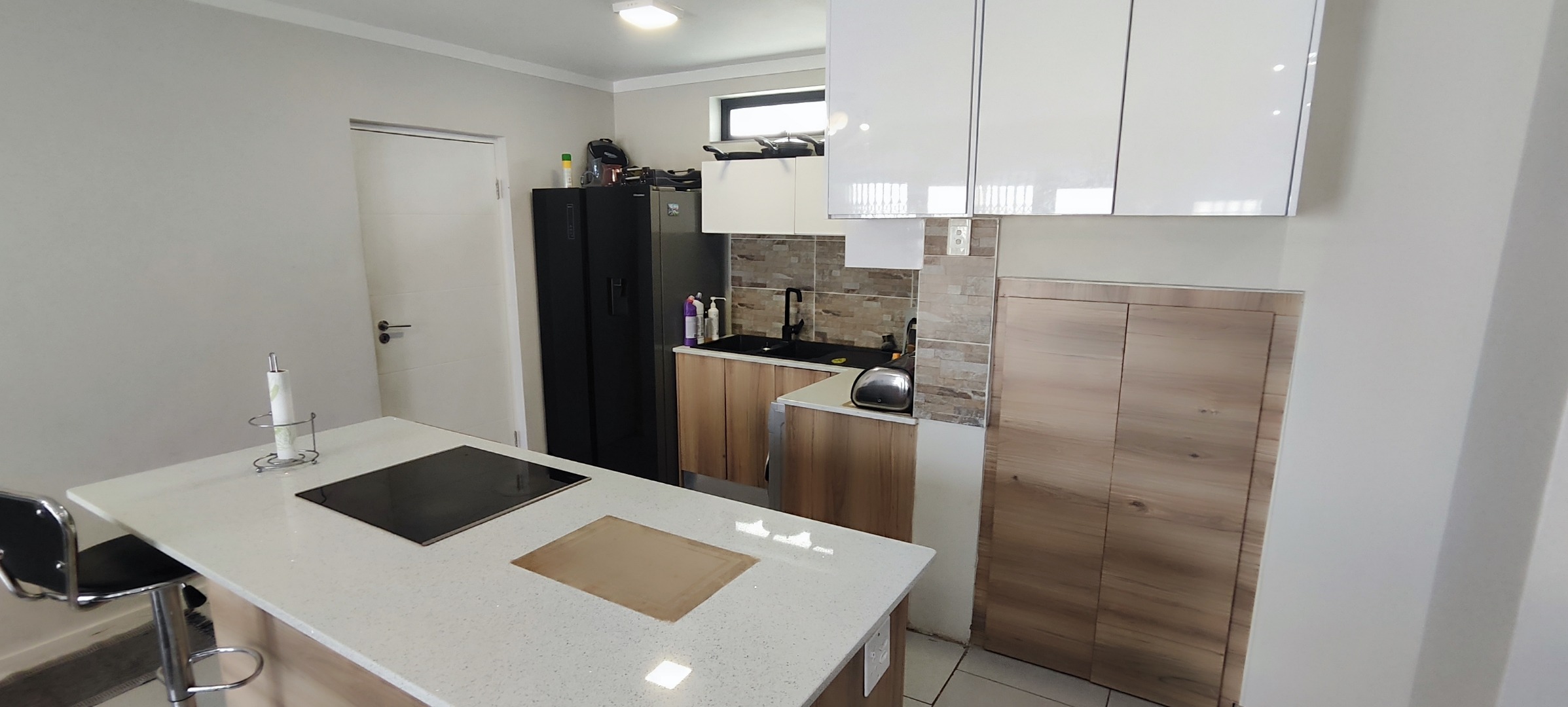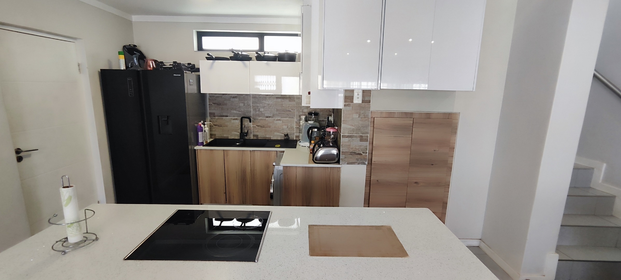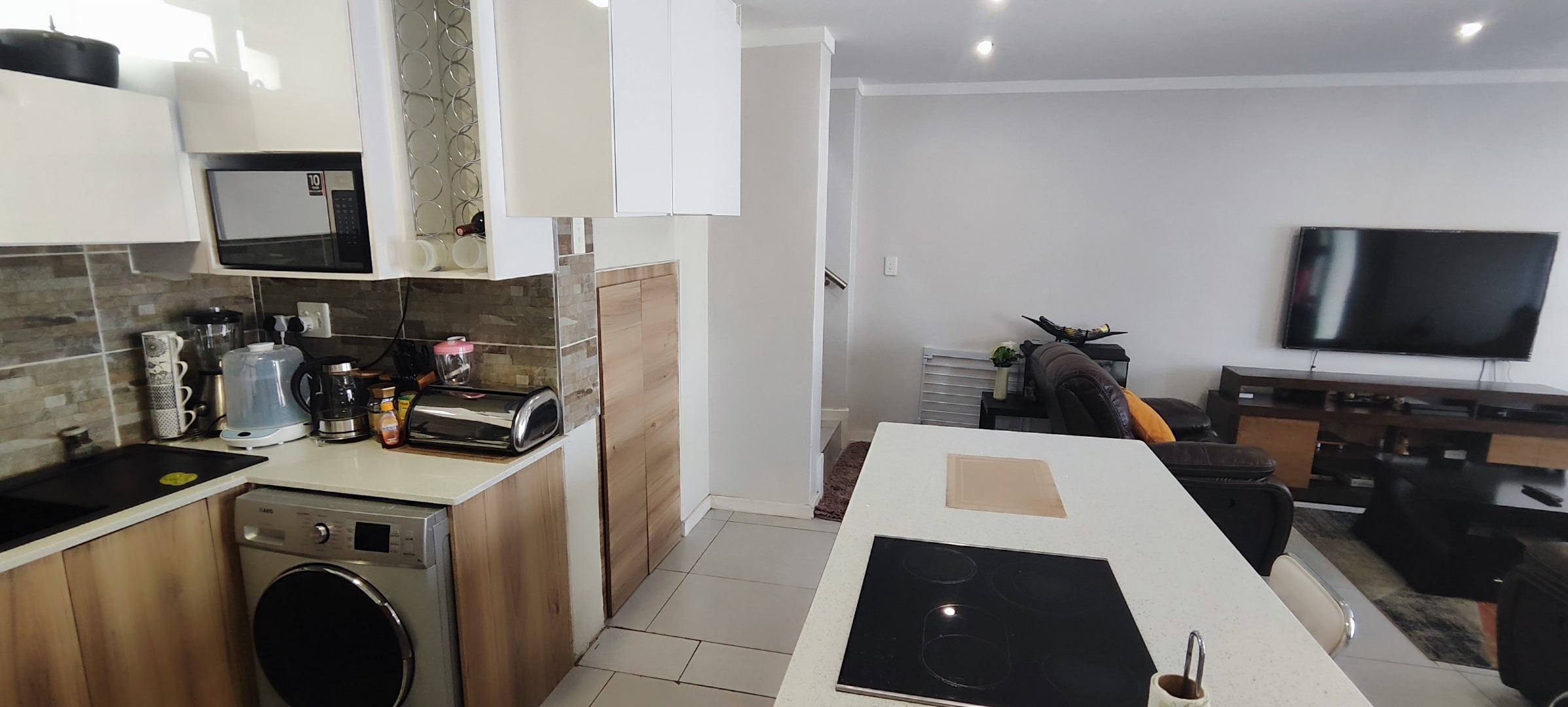This modern 2-bedroom, 2-bathroom townhouse in the sought-after Vivini Estate, Pretoria East, offers secure and comfortable living in a prime location. The home boasts an open-plan kitchen, lounge, and dining area that flows seamlessly into a small private garden, perfect for relaxed entertaining. The kitchen is stylish and modern, designed for convenience and functionality.