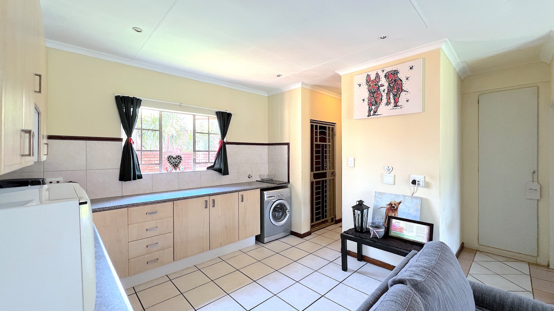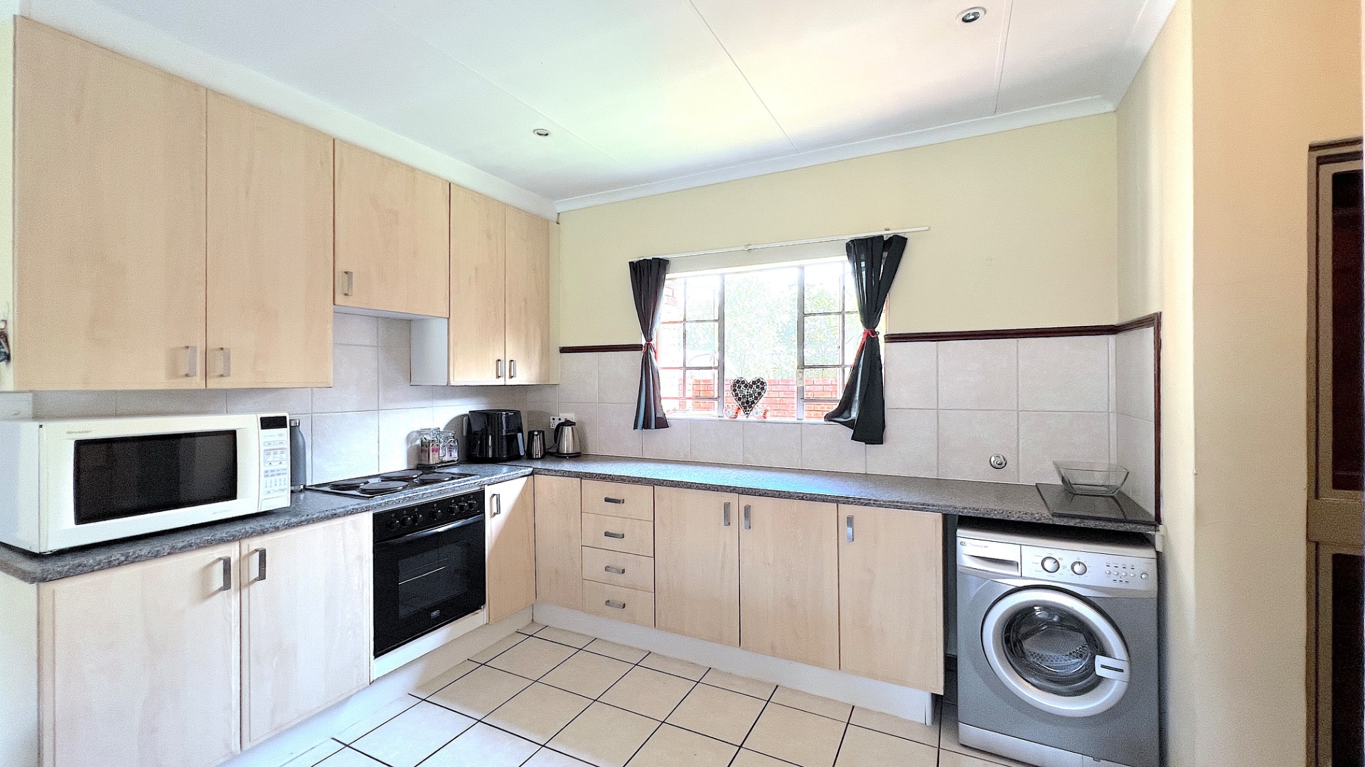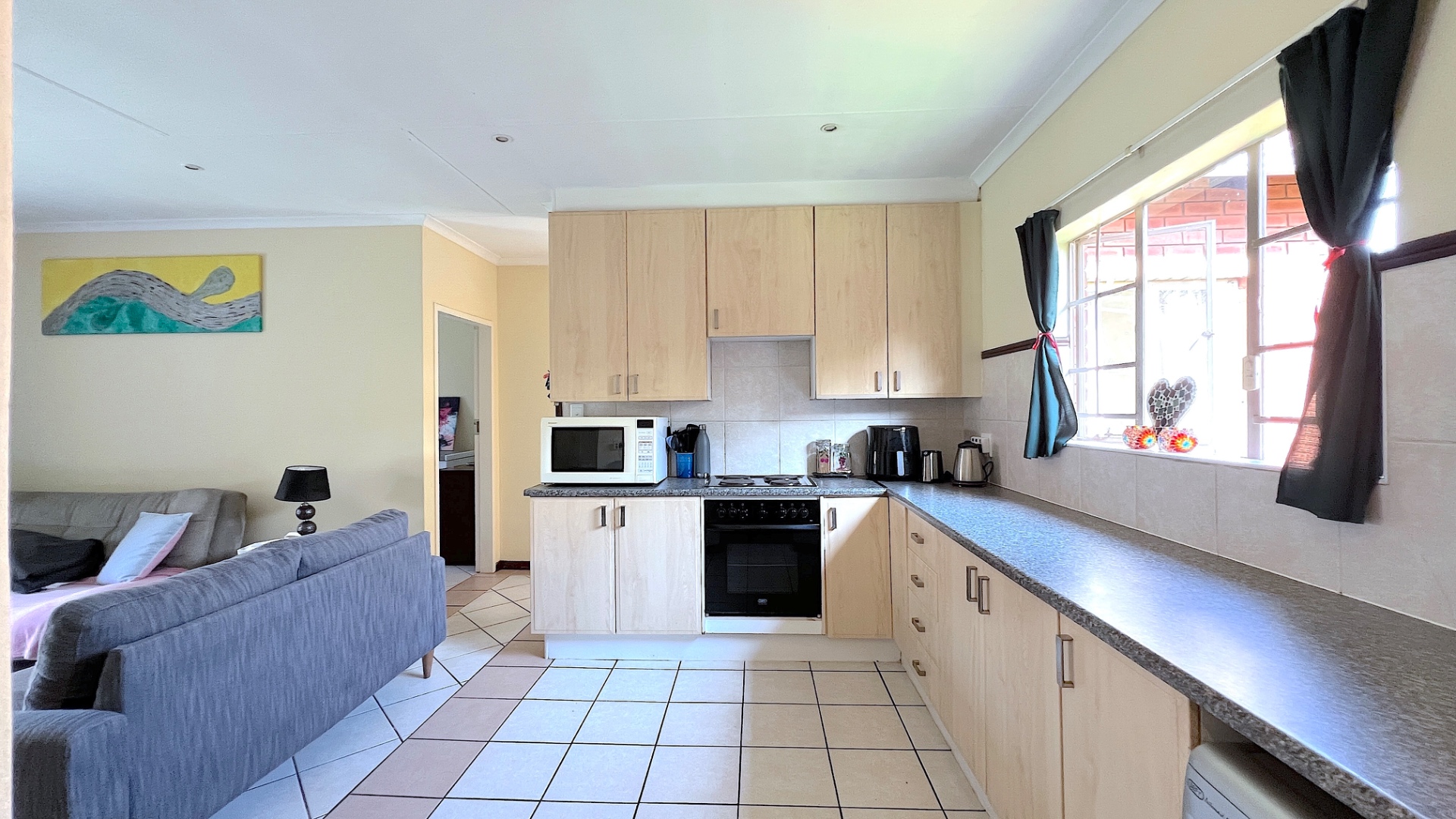 Step inside and you’re welcomed by a spacious open-plan living and dining area, designed for effortless flow and everyday comfort. Large windows invite natural light throughout, creating a warm and inviting ambiance. The modern kitchen is a true centerpiece of the home, featuring sleek counters, ample cupboard space, and quality finishes. With generous room for appliances, it caters perfectly to the demands of a contemporary lifestyle.