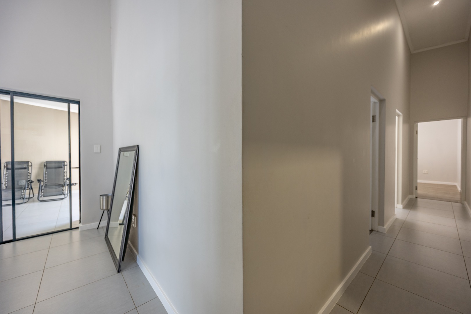 This stylish home in the sought-after Vivini Estate, Equestria, offers the perfect balance of modern living and convenience. Featuring 3 spacious bedrooms and 2 bathrooms (main en-suite), an open-plan kitchen and dining area, and an enclosed patio with a built-in braai, it’s designed for both comfort and entertaining. Two automated garages complete the home’s practical layout.