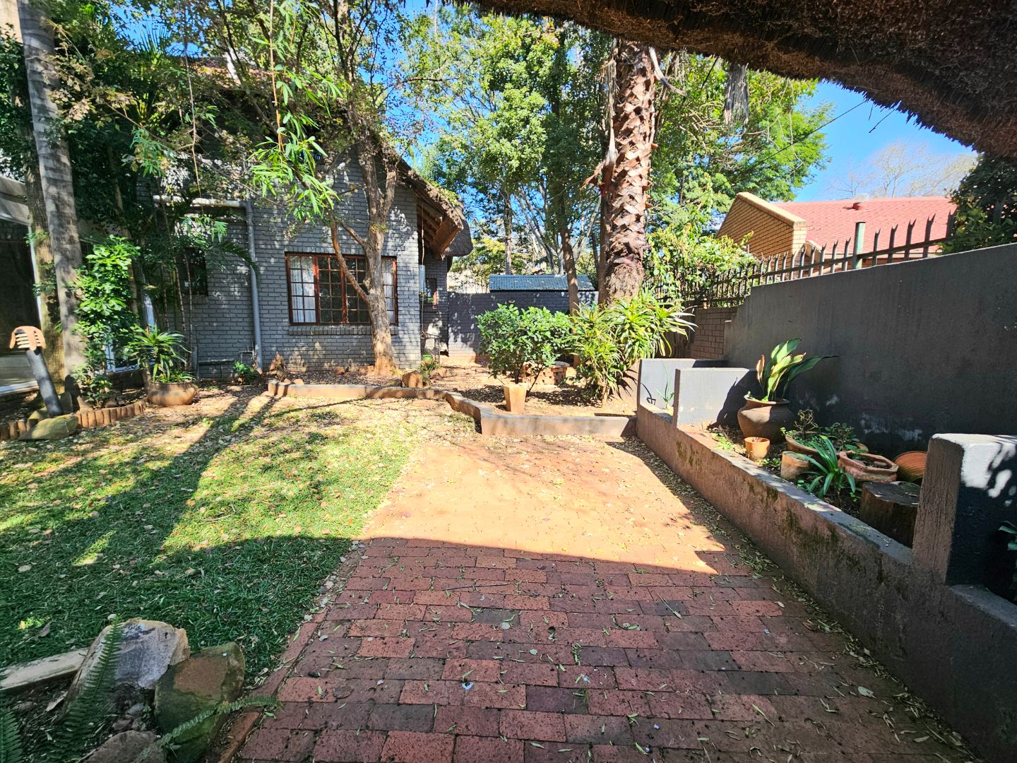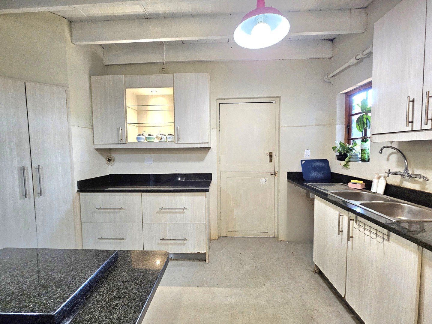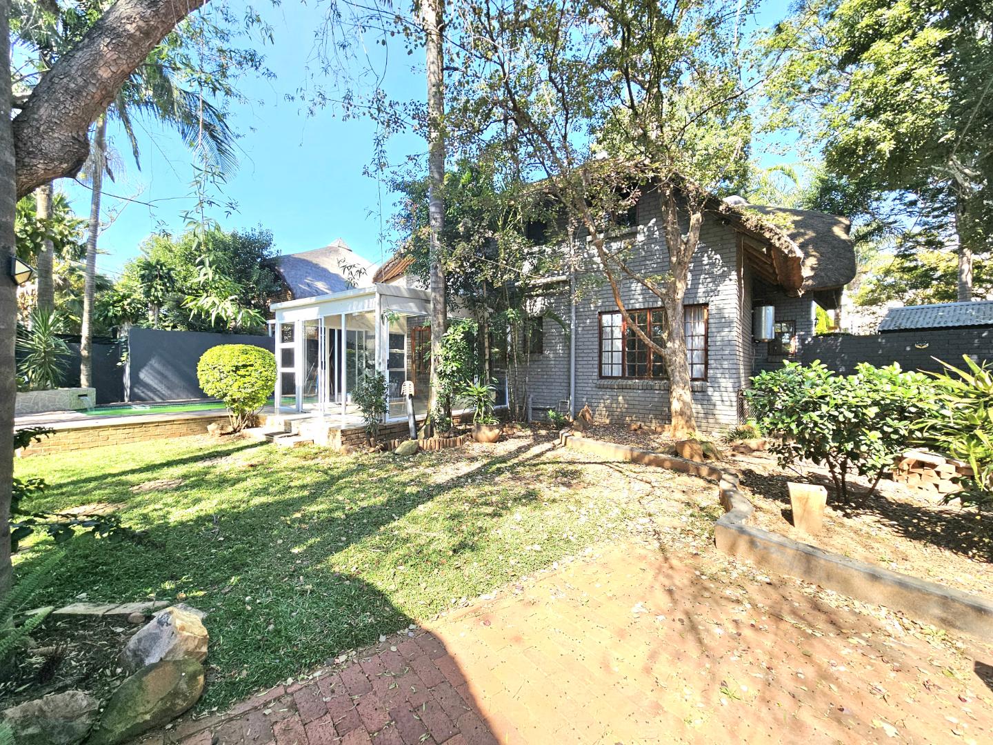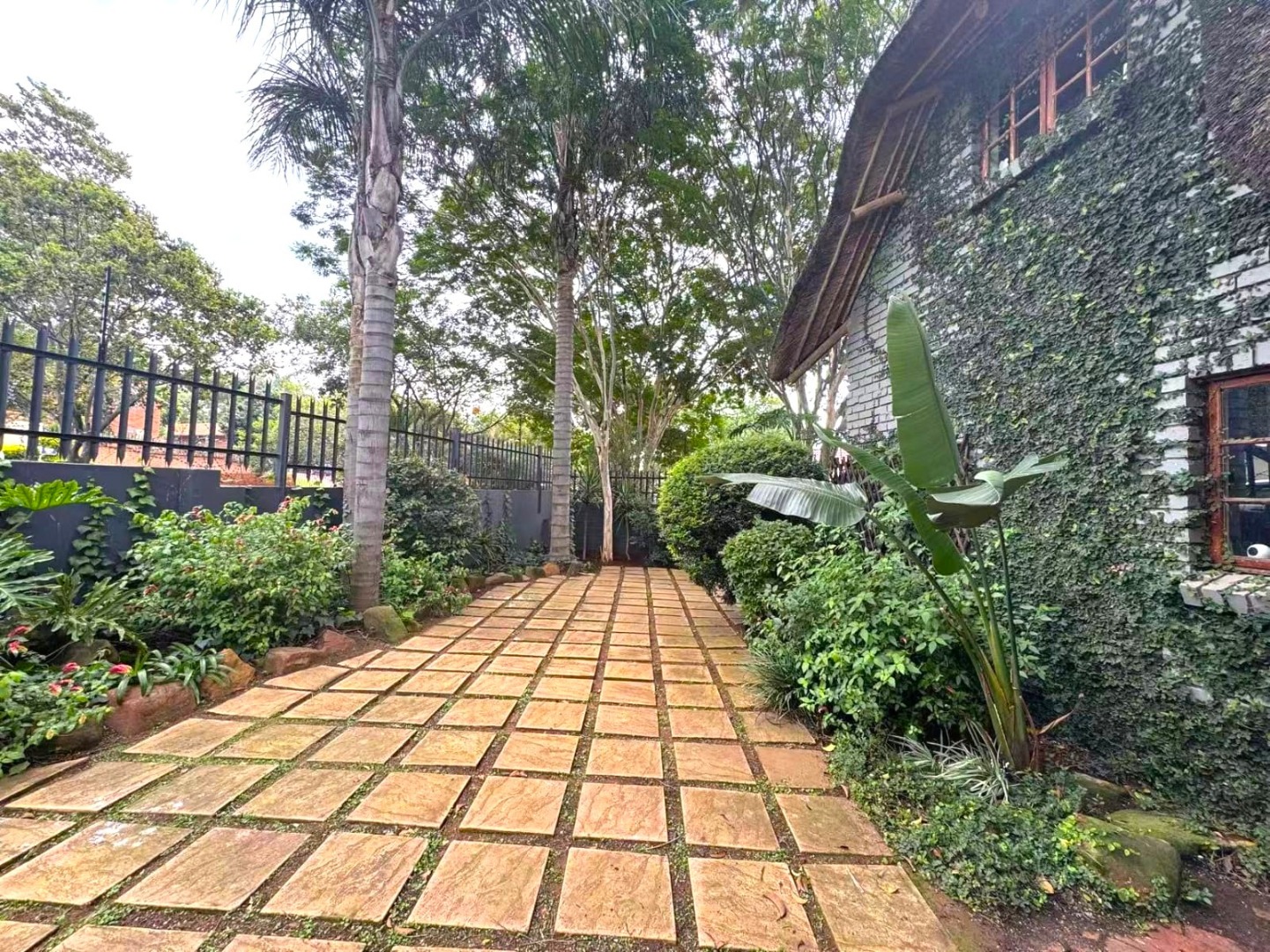 The lounge extends to an enclosed glass patio, sun room, providing a serene space to unwind while overlooking the lush garden, sparkling swimming pool, and expansive Lapa. The Lapa is an entertainer's delight, boasting a built-in bar that's perfect for hosting gatherings with family and friends.