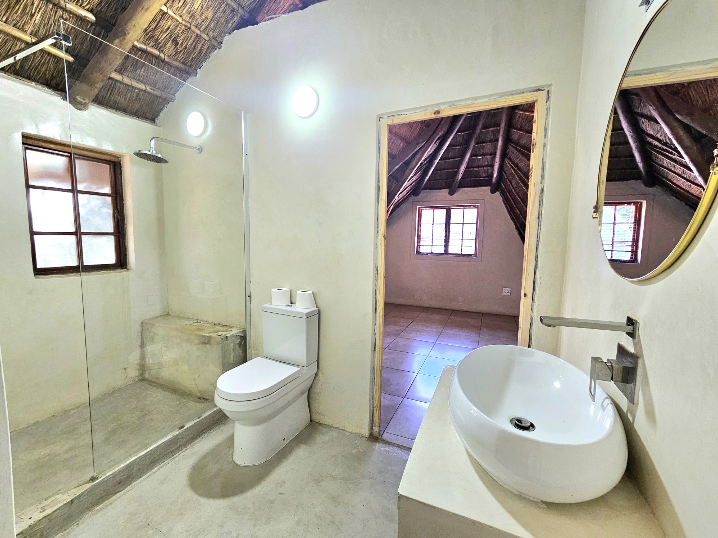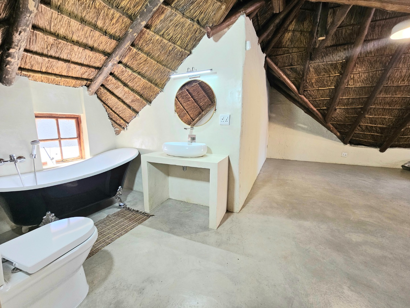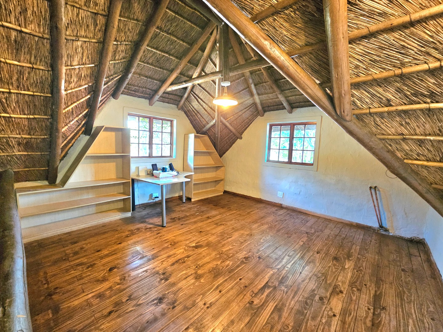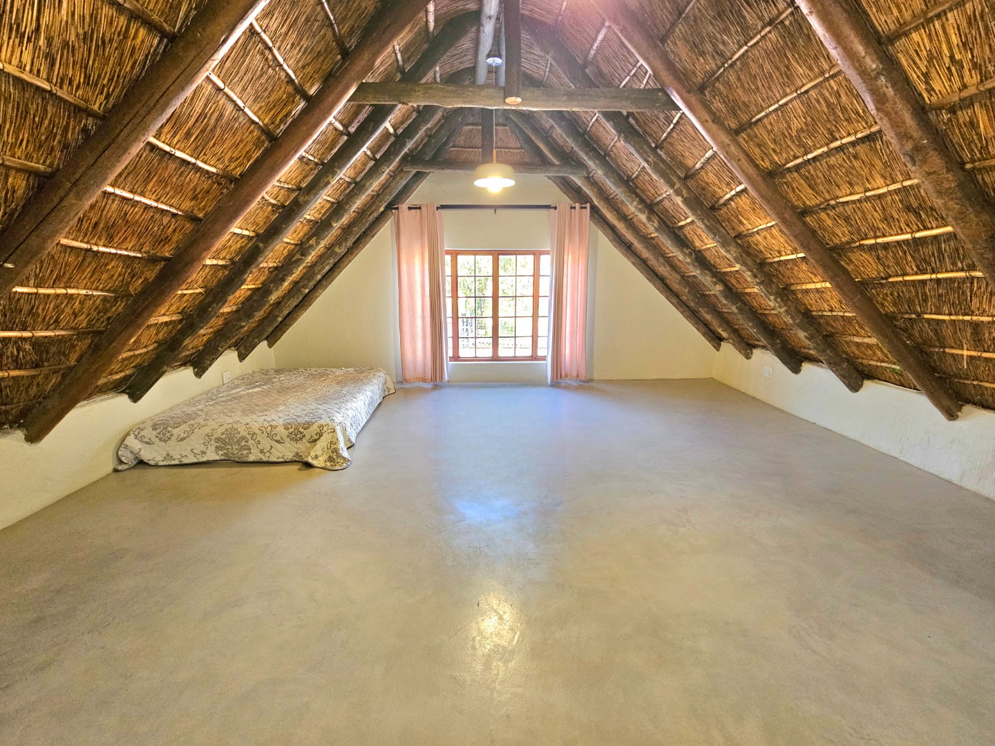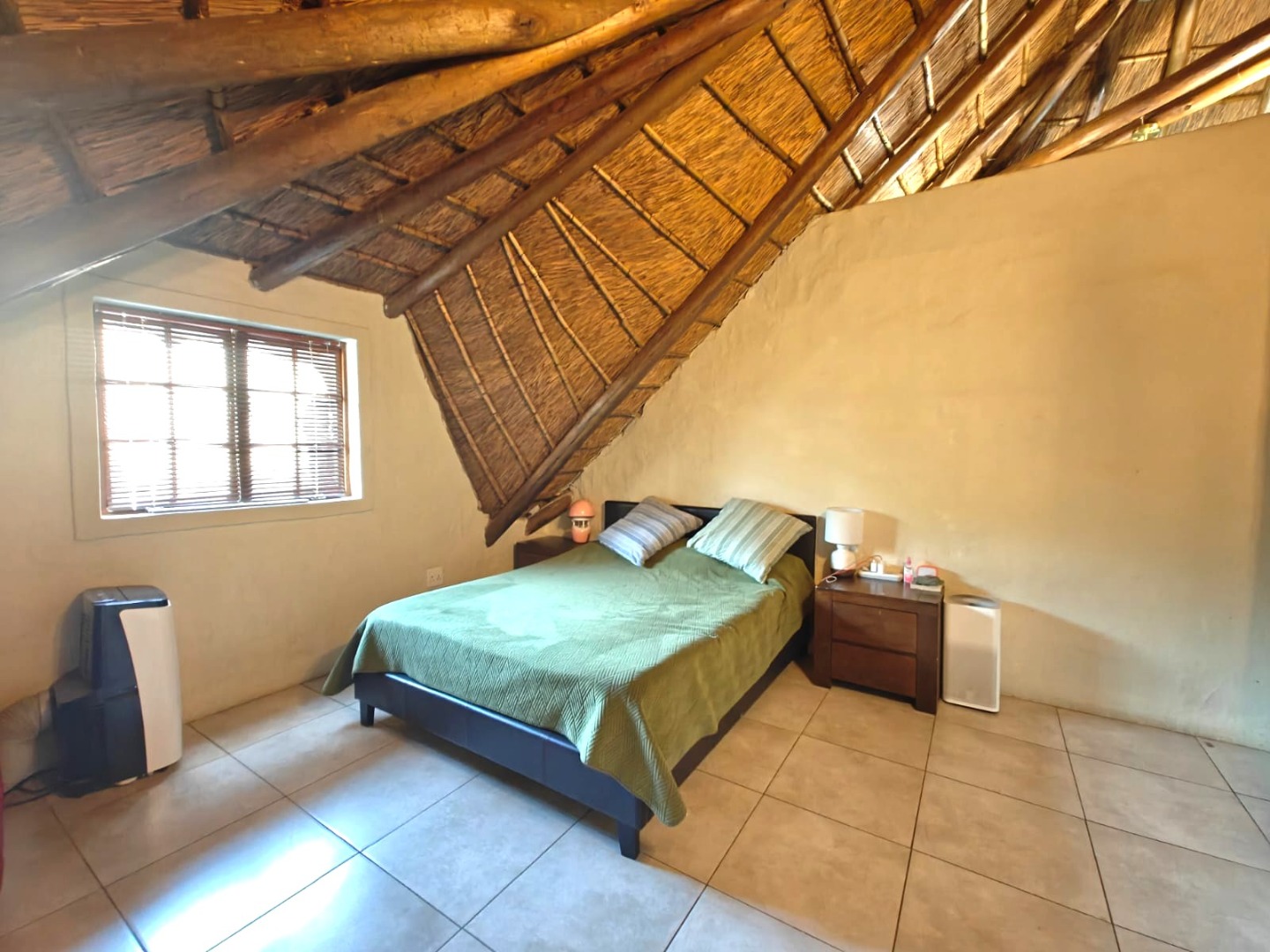 This enchanting thatched-roof home blends rustic charm with contemporary comforts, offering natural insulation, ensuring warmth in winter and coolness in summer.