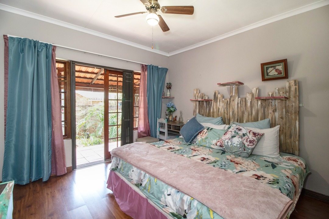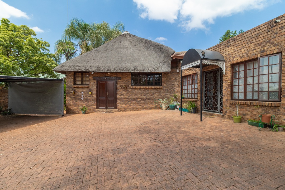 Discover a home full of character and comfort in the heart of Faerie Glen, Pretoria. This spacious 4-bedroom, 4-bathroom residence blends timeless style with modern convenience, featuring a unique combination of brick and thatch architecture surrounded by a lush, established garden.