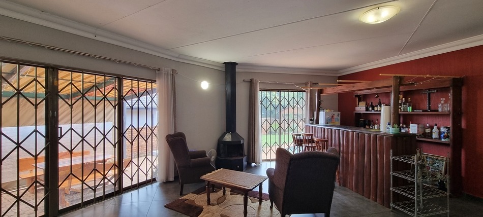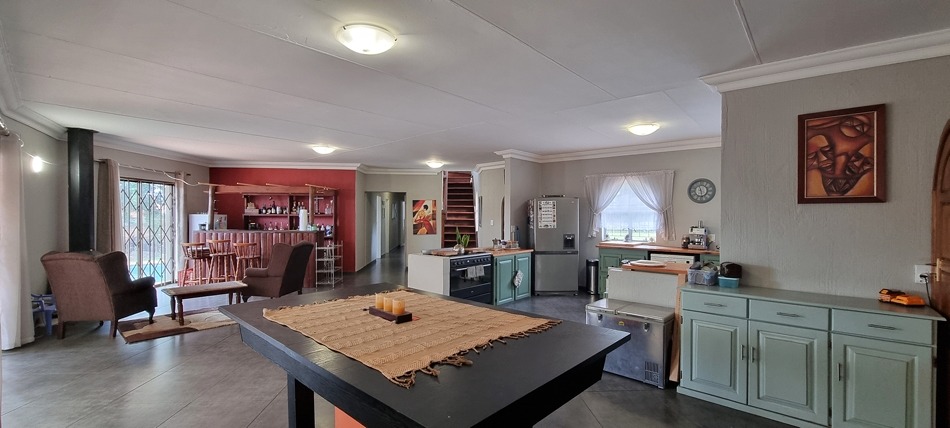 Open-plan Dining Room and Lounge with Fireplace and Bar Area