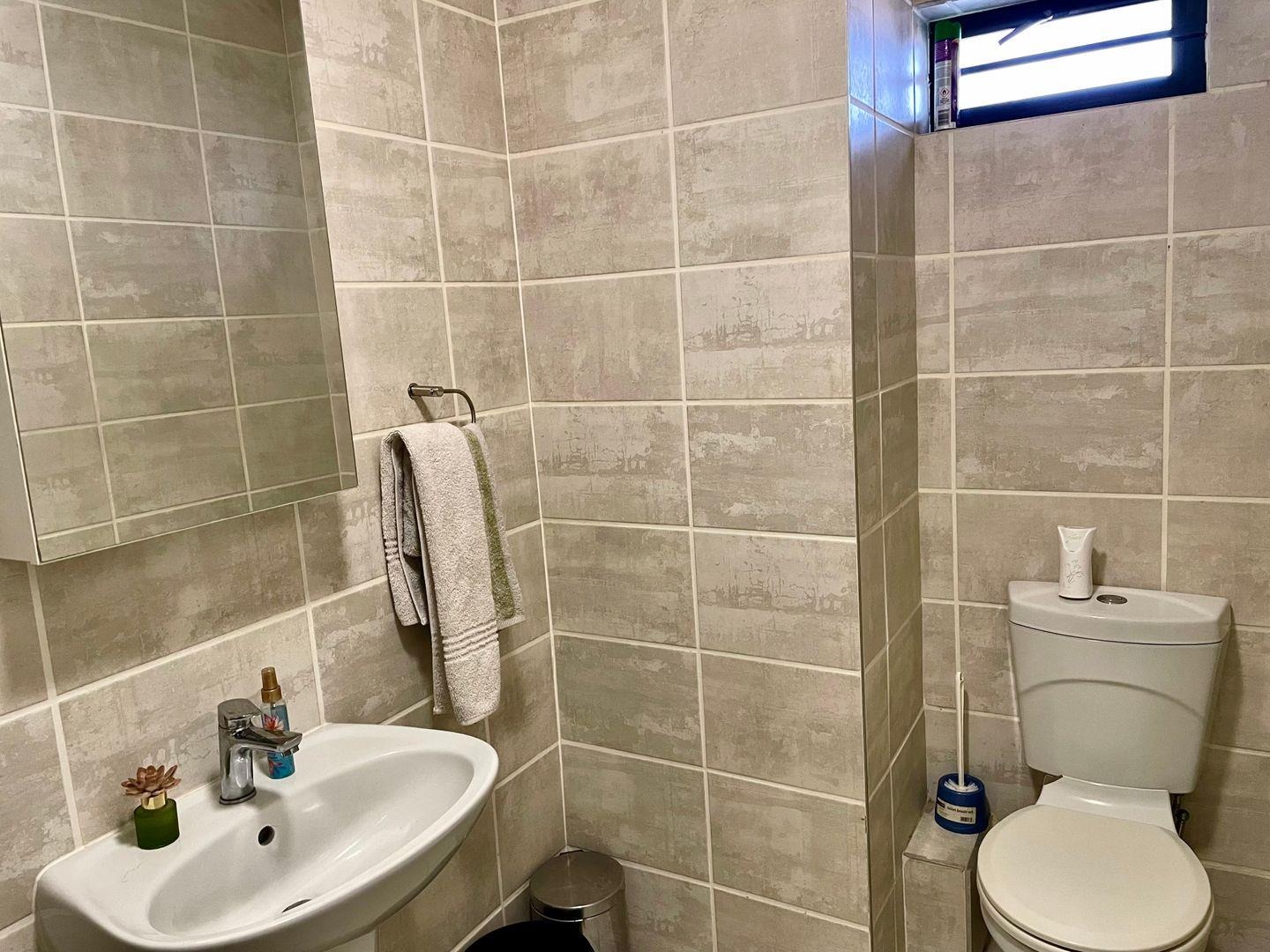 The unit features a comfortable bedroom with ample storage provided by built-in cupboards, ensuring plenty of space for personal belongings. The stylish bathroom includes a shower, while a separate toilet adds convenience and functionality. Tiled flooring throughout the unit enhances its modern aesthetic and ease of maintenance, contributing to its overall appeal.