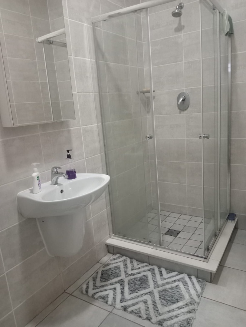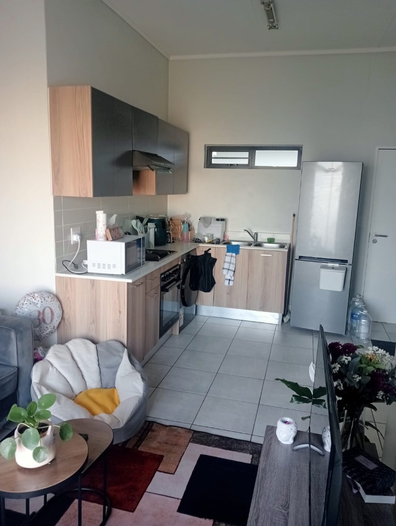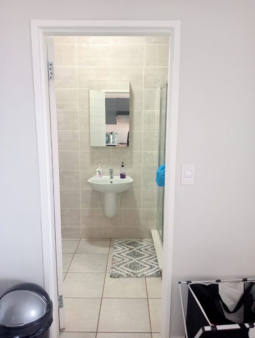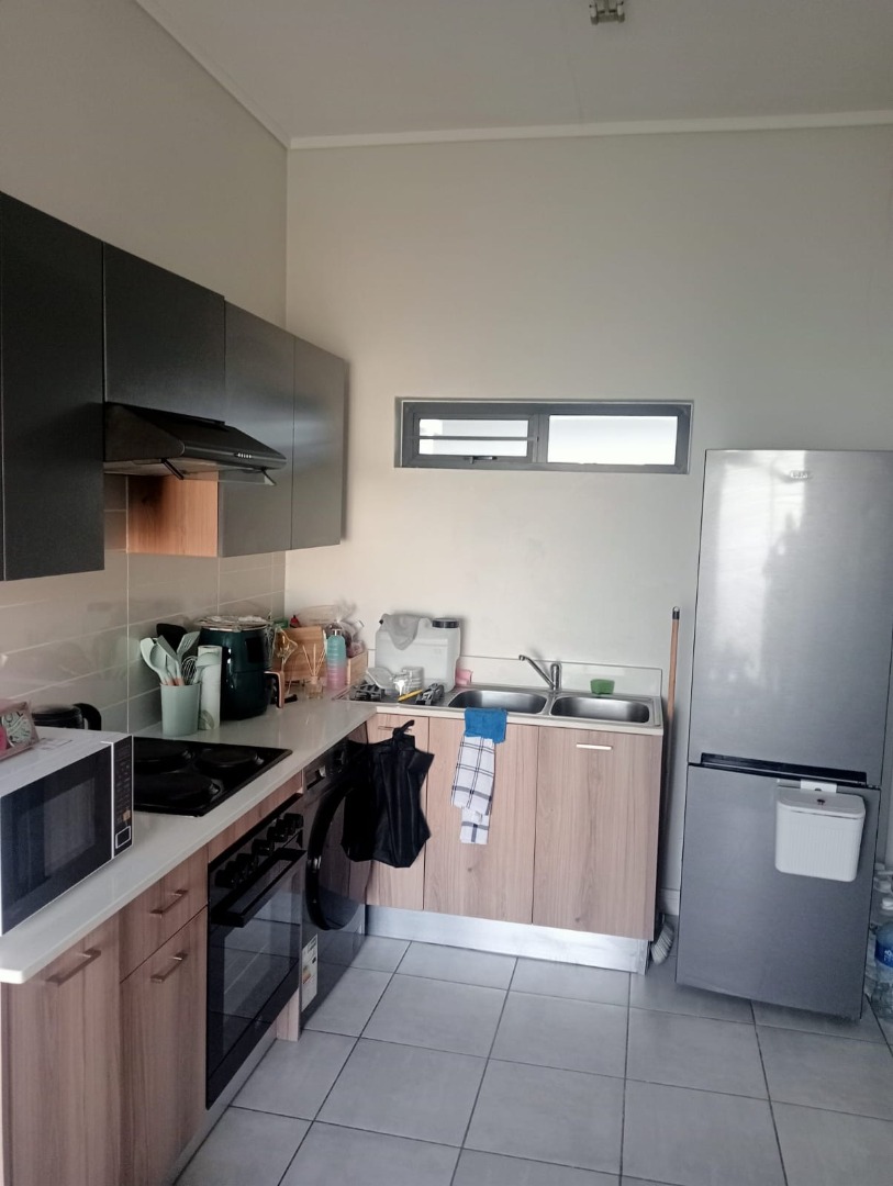 Welcome to a lifestyle of modern elegance and convenience at this stunning 1-bedroom apartment in Greencreek Lifestyle Estate! This beautifully designed unit features sleek tiled floors and light, neutral walls that create a bright and inviting atmosphere throughout. The open-plan living area seamlessly integrates with the modern kitchenette, which boasts stylish cupboards and is equipped with essential appliances including a washing machine, fridge/freezer, and an oven with a stovetop, catering to both practical living and investor appeal. The single bathroom offers a compact yet functional space with a shower and a wall-mounted sink, its tiled walls adding a touch of sophistication and ease of maintenance.