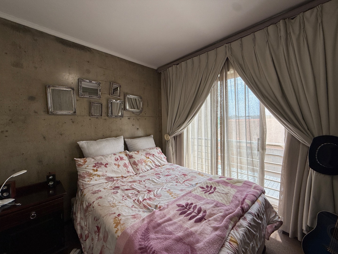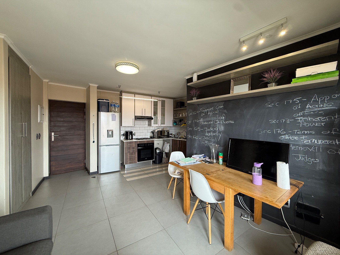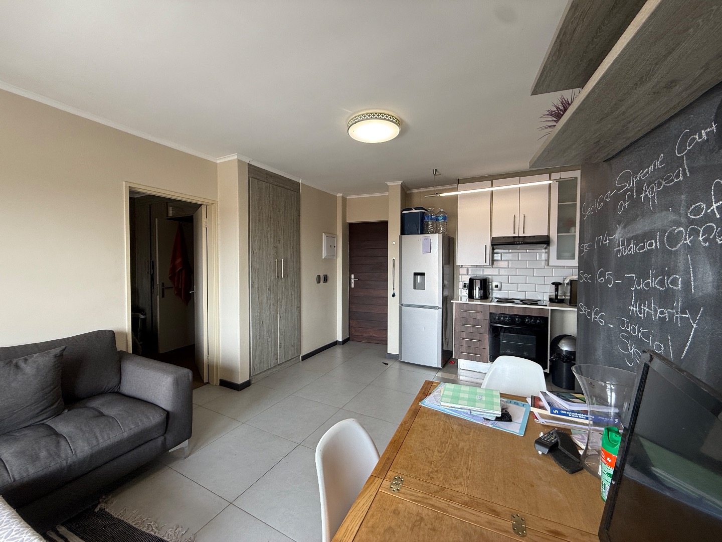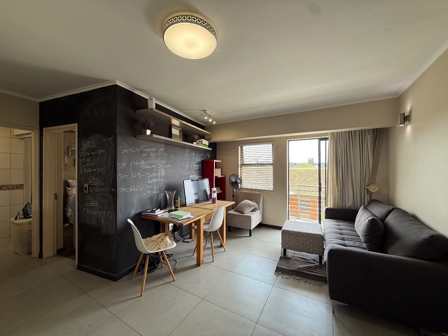Discover modern living in this inviting 57 sqm apartment, ideally situated within a secure complex in the vibrant Hatfield suburb of Pretoria. This metropolitan and suburban setting offers convenience and accessibility, perfect for contemporary lifestyles. The apartment boasts an open-plan layout, seamlessly integrating the living, dining, and kitchen areas. The modern kitchen features sleek white and wood cabinetry, a built-in oven, and a stylish tiled backsplash, complemented by consistent light-colored tiled flooring throughout. A distinctive chalkboard accent wall adds a unique touch to the combined dining and study zone, providing a versatile space for work or creative expression. Natural light floods the main living area, enhancing the sense of space and comfort. Accommodation includes two well-appointed bedrooms, each benefiting from an en-suite bathroom, ensuring privacy and convenience. One bedroom features a unique concrete accent wall, adding an industrial-chic element, and an en-suite with a modern frosted glass sliding door. The bathrooms are designed with neutral-toned tiling, offering a contemporary aesthetic, and include a bathtub with an overhead rain shower, a wall-mounted toilet, and a countertop basin. Built-in storage is available, catering to practical needs. Enjoy the benefit of a private balcony, accessible from the living area, providing an outdoor retreat. The property includes one dedicated parking space. Residents benefit from robust security features, including 24-hour security, a security post, and an intercom system, ensuring peace of mind. High-speed fibre connectivity is also available, meeting modern digital demands. Key Features: * 57 sqm modern apartment * 2 Bedrooms, 2 En-suite Bathrooms * Open-plan living with modern kitchen * Unique chalkboard and concrete accent walls * Private balcony access * 1 Dedicated parking space * 24-hour security and intercom * Fibre connectivity available * Located in Hatfield, Pretoria