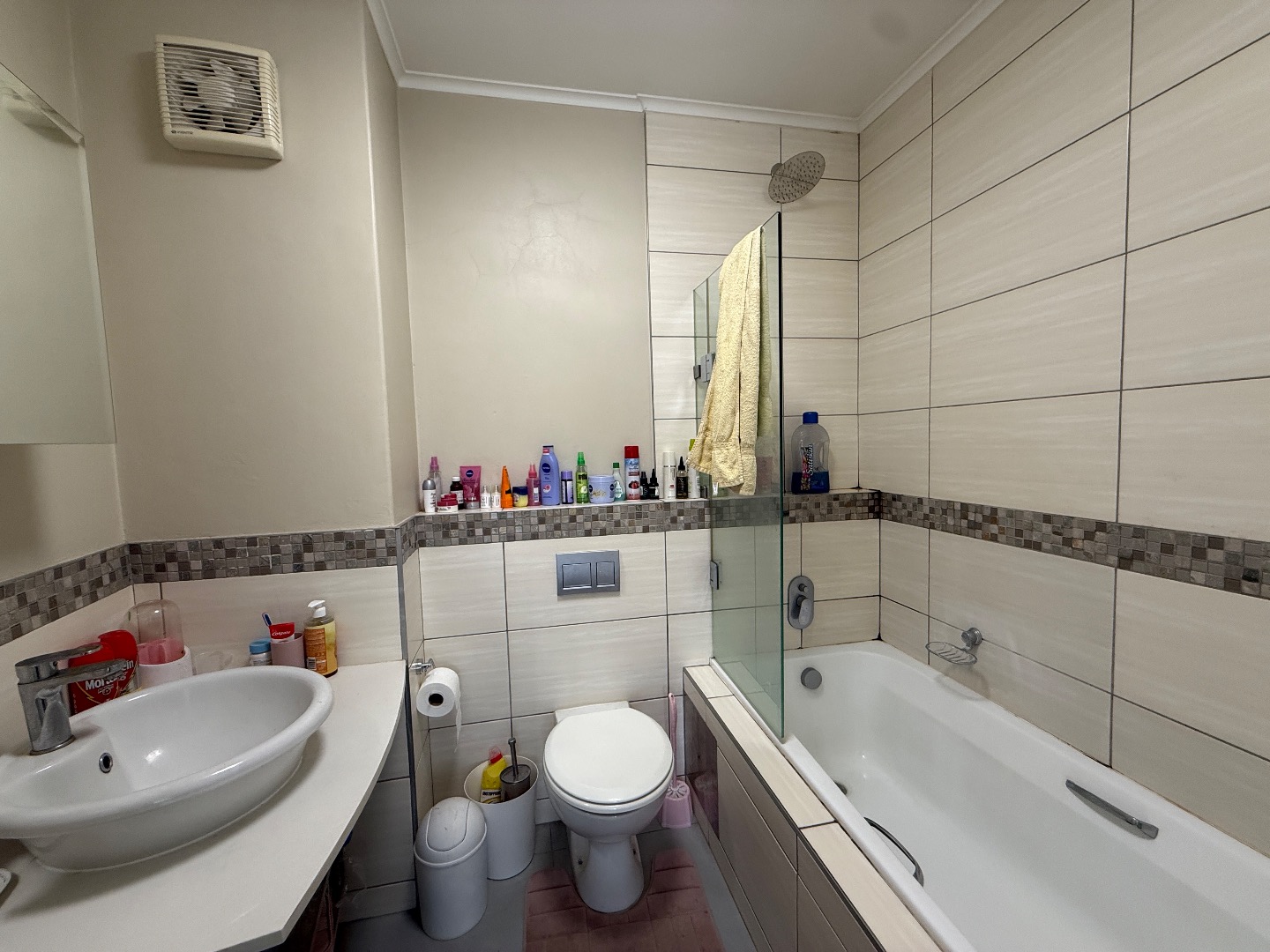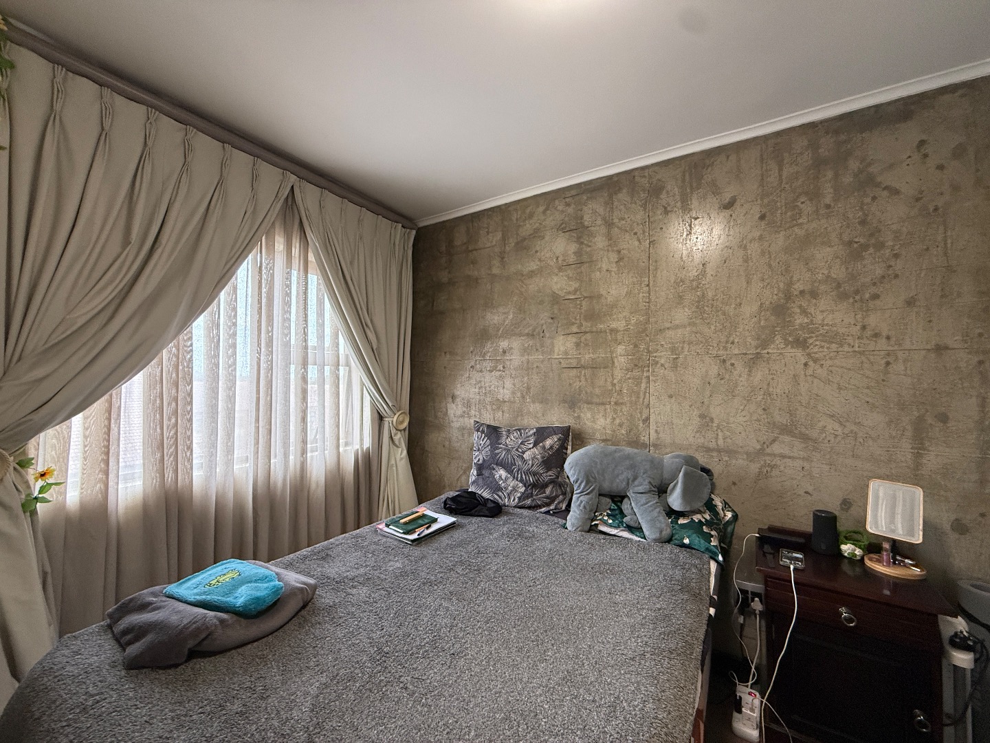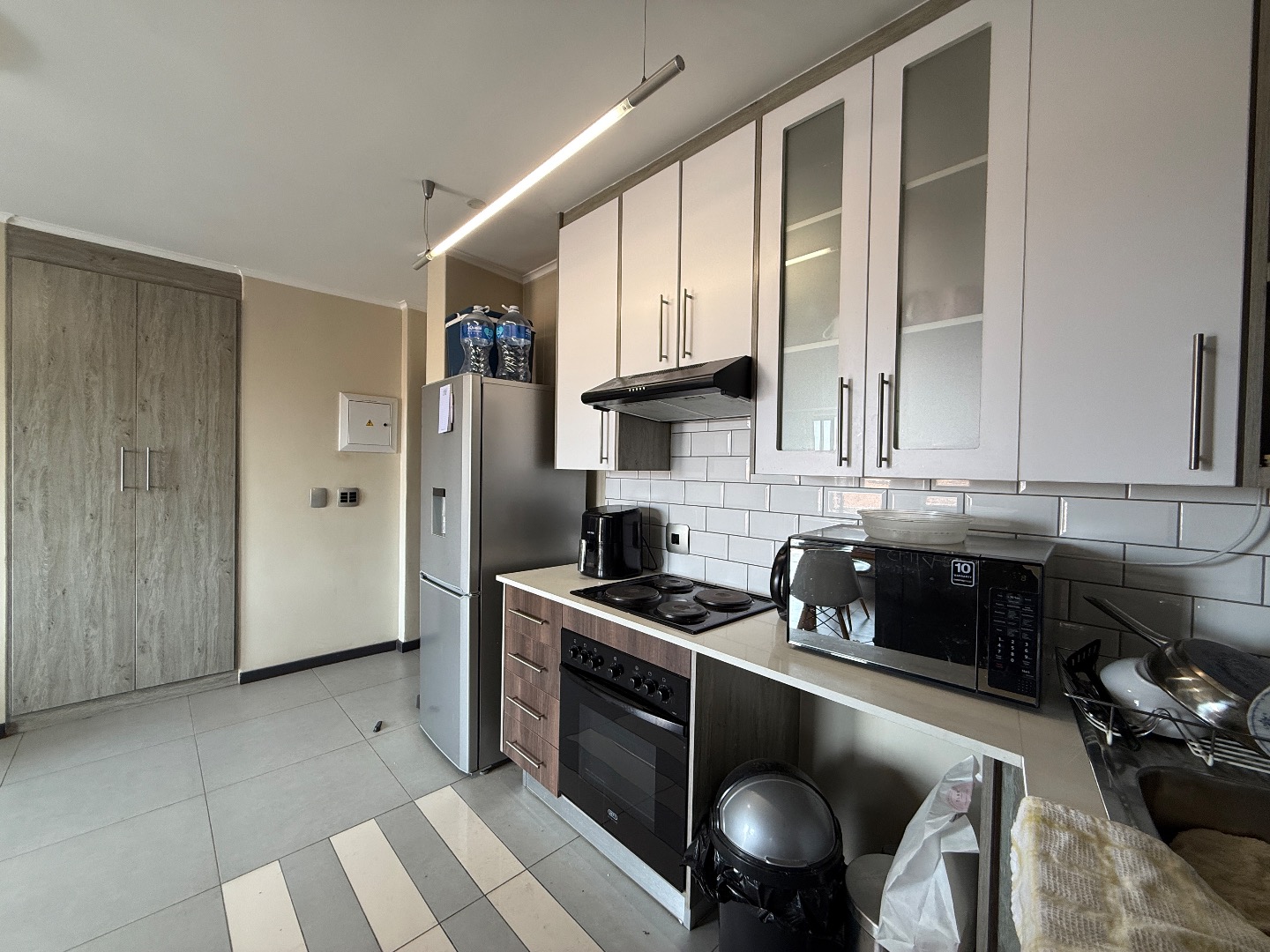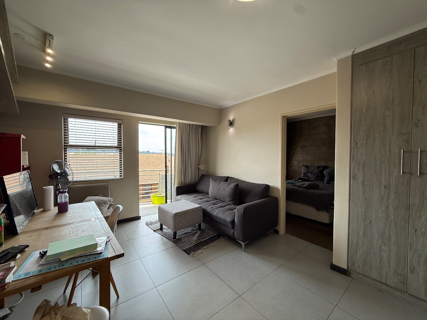 Discover modern living in this inviting 57 sqm apartment, ideally situated within a secure complex in the vibrant Hatfield suburb of Pretoria. This metropolitan and suburban setting offers convenience and accessibility, perfect for contemporary lifestyles. The apartment boasts an open-plan layout, seamlessly integrating the living, dining, and kitchen areas. The modern kitchen features sleek white and wood cabinetry, a built-in oven, and a stylish tiled backsplash, complemented by consistent light-colored tiled flooring throughout. A distinctive chalkboard accent wall adds a unique touch to the combined dining and study zone, providing a versatile space for work or creative expression. Natural light floods the main living area, enhancing the sense of space and comfort. Accommodation includes two well-appointed bedrooms, each benefiting from an en-suite bathroom, ensuring privacy and convenience. One bedroom features a unique concrete accent wall, adding an industrial-chic element, and an en-suite with a modern frosted glass sliding door. The bathrooms are designed with neutral-toned tiling, offering a contemporary aesthetic, and include a bathtub with an overhead rain shower, a wall-mounted toilet, and a countertop basin. Built-in storage is available, catering to practical needs. Enjoy the benefit of a private balcony, accessible from the living area, providing an outdoor retreat. The property includes one dedicated parking space. Residents benefit from robust security features, including 24-hour security, a security post, and an intercom system, ensuring peace of mind. High-speed fibre connectivity is also available, meeting modern digital demands. Key Features: * 57 sqm modern apartment * 2 Bedrooms, 2 En-suite Bathrooms * Open-plan living with modern kitchen * Unique chalkboard and concrete accent walls * Private balcony access * 1 Dedicated parking space * 24-hour security and intercom * Fibre connectivity available * Located in Hatfield, Pretoria