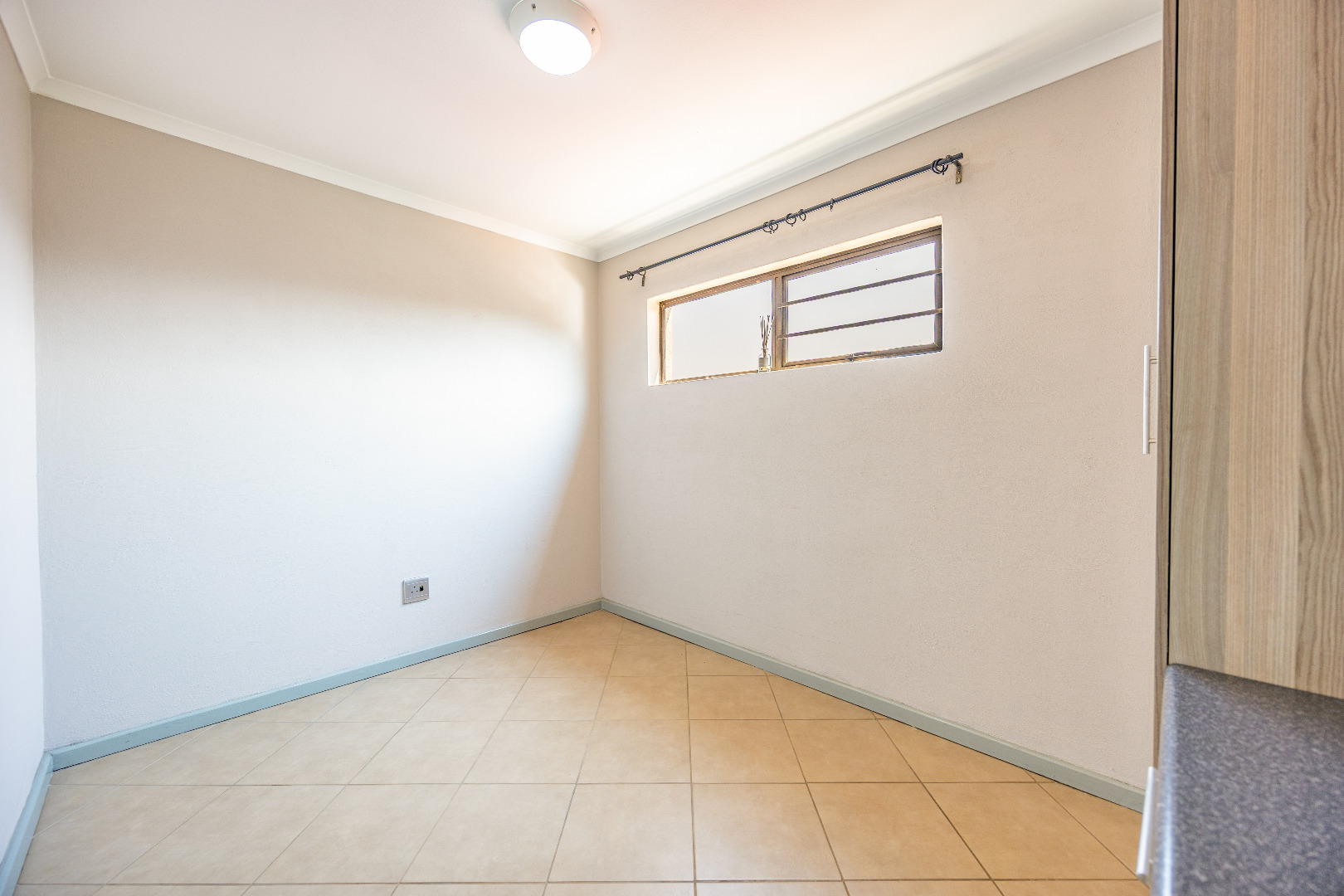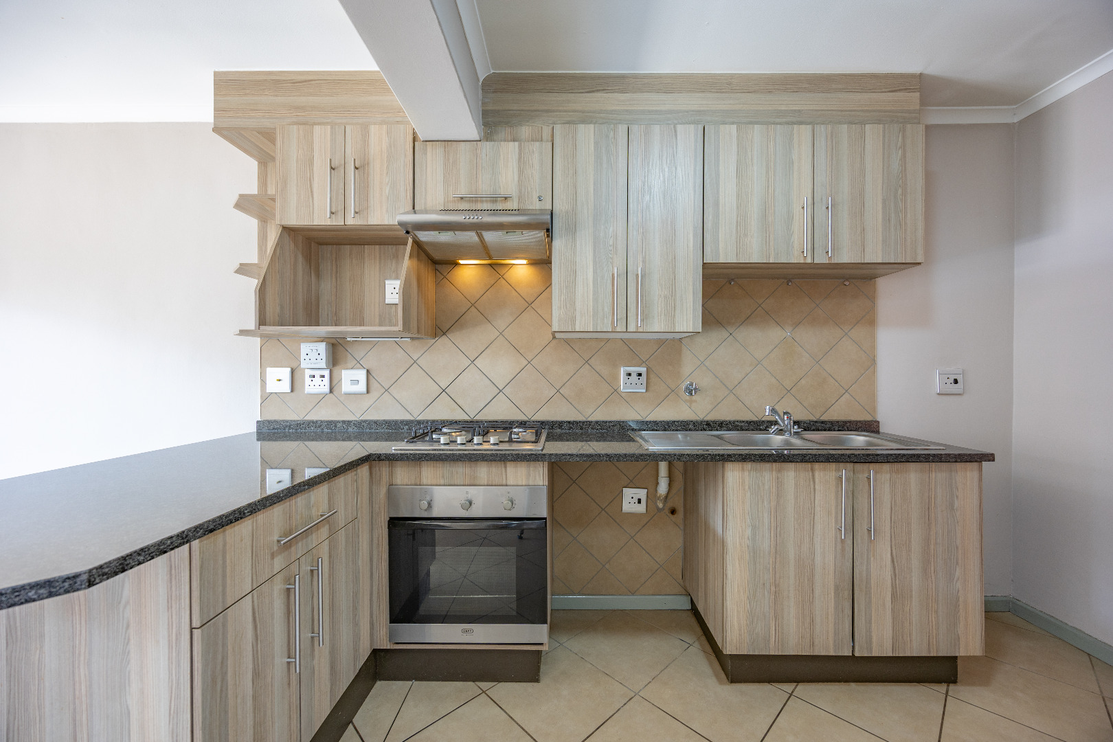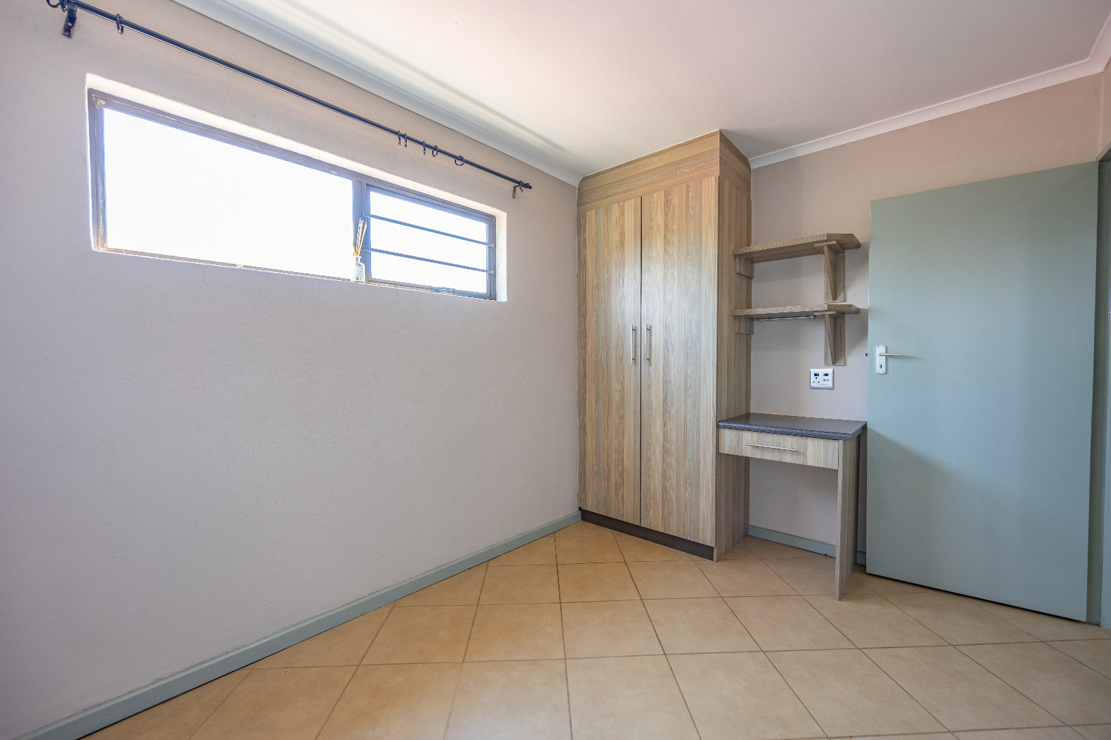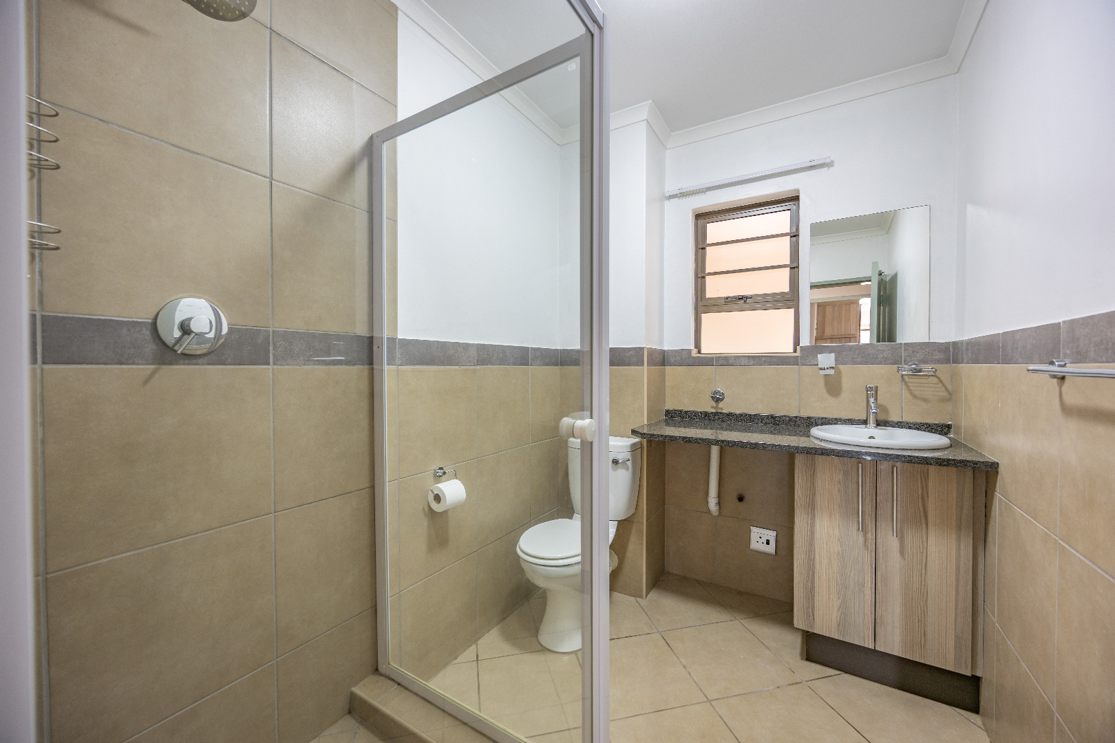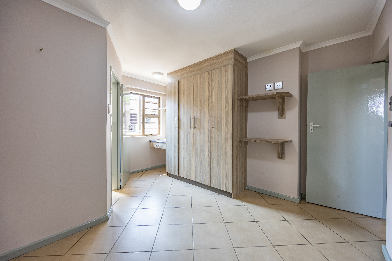 This modern apartment combines style with functionality, offering a practical layout and quality finishes throughout. The open-plan kitchen comes equipped with a gas stove, space for one appliance, and a single-door fridge, seamlessly connecting to the living area. From here, doors lead out to a private balcony with a built-in braai – the perfect spot for entertaining guests or enjoying a quiet evening outdoors.