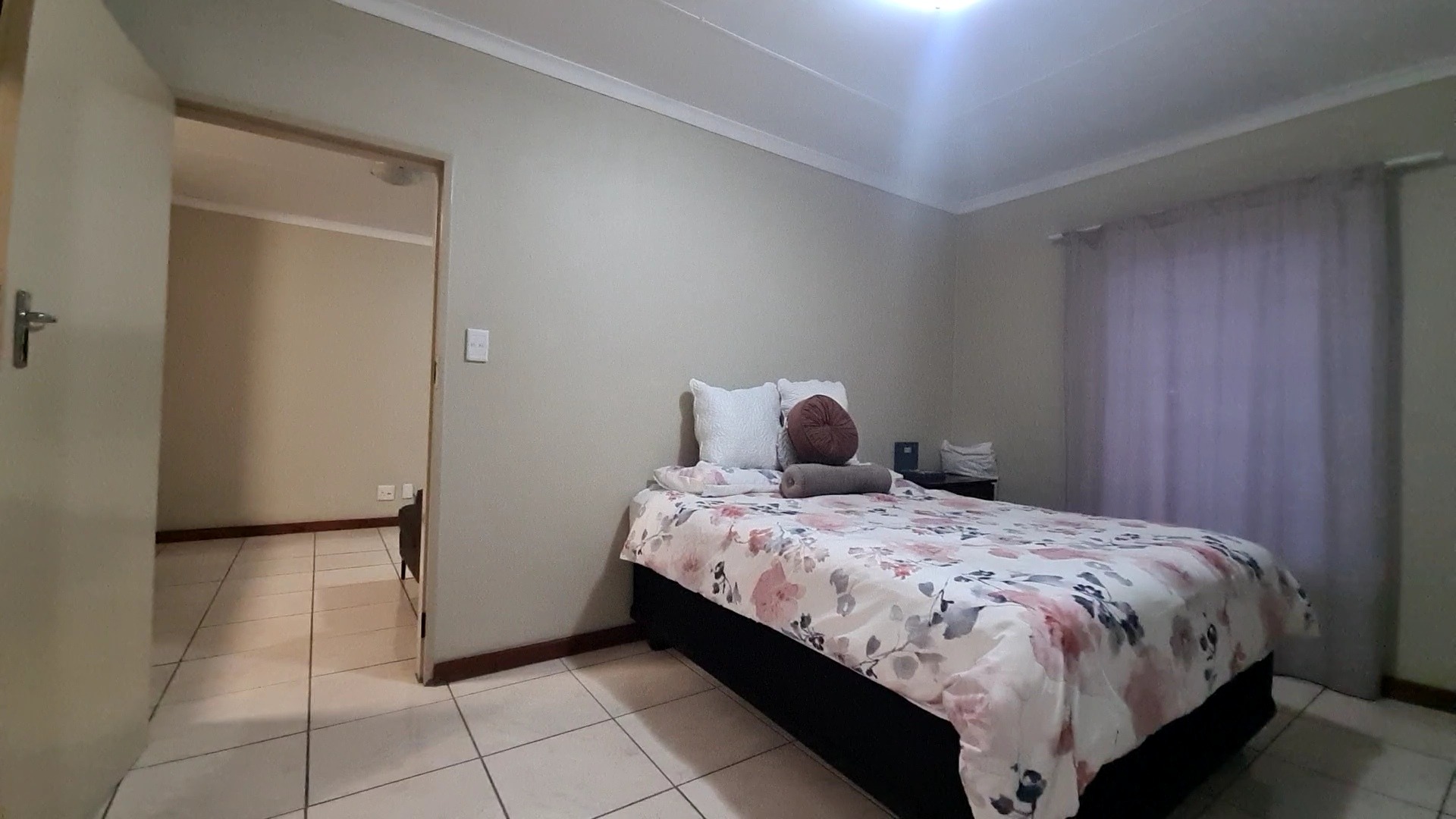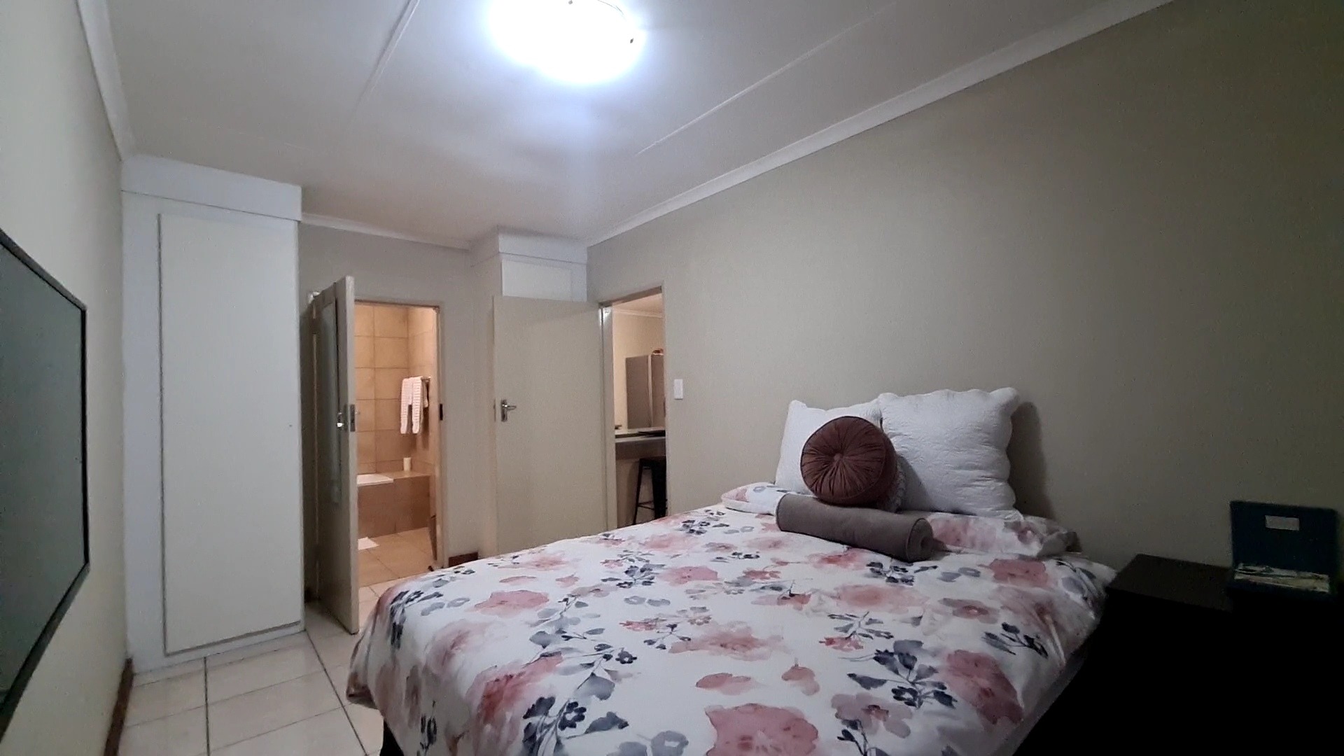 • One Bedroom: The spacious main bedroom accommodates a double bed and features built-in cupboards for storage.