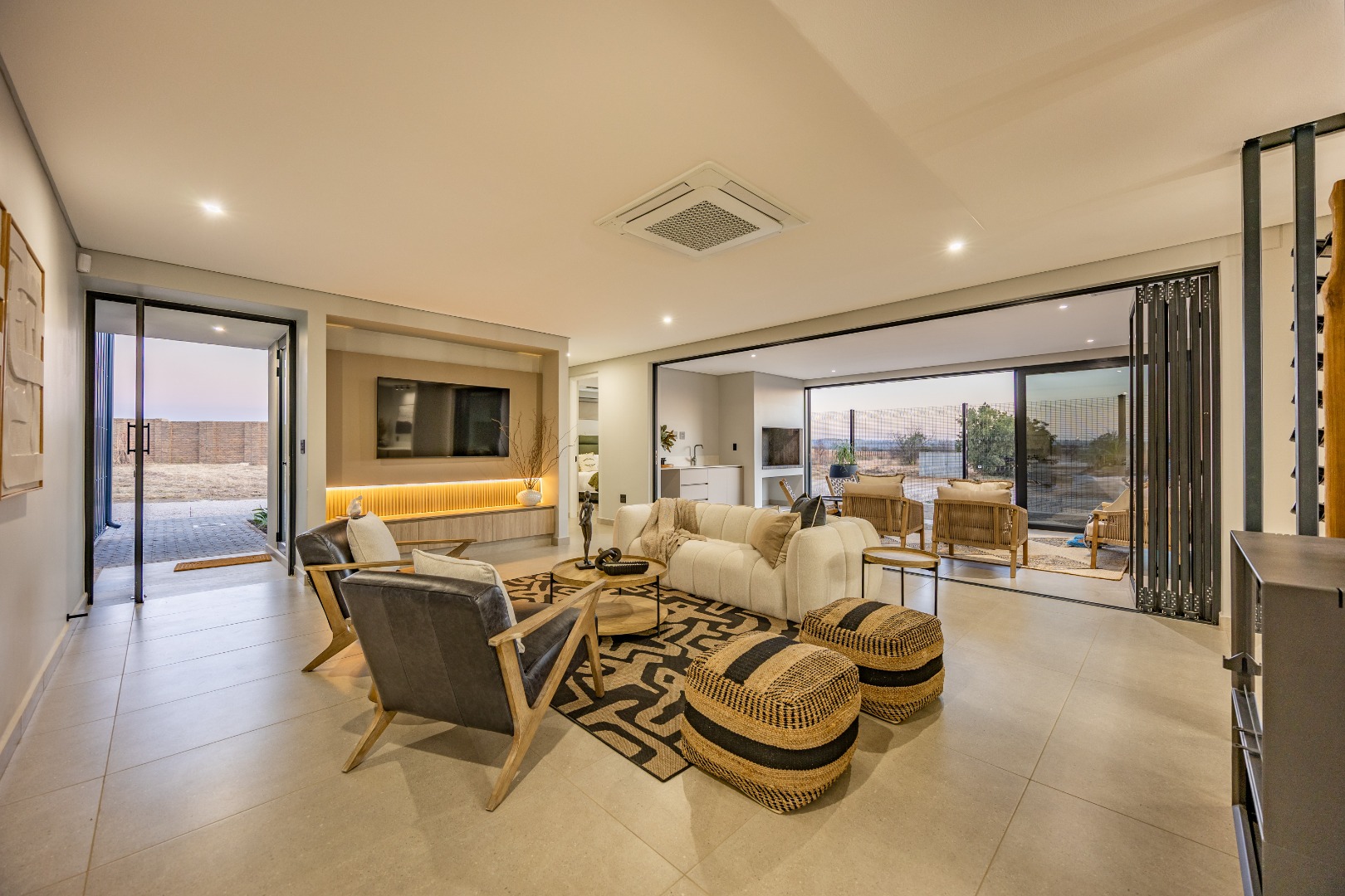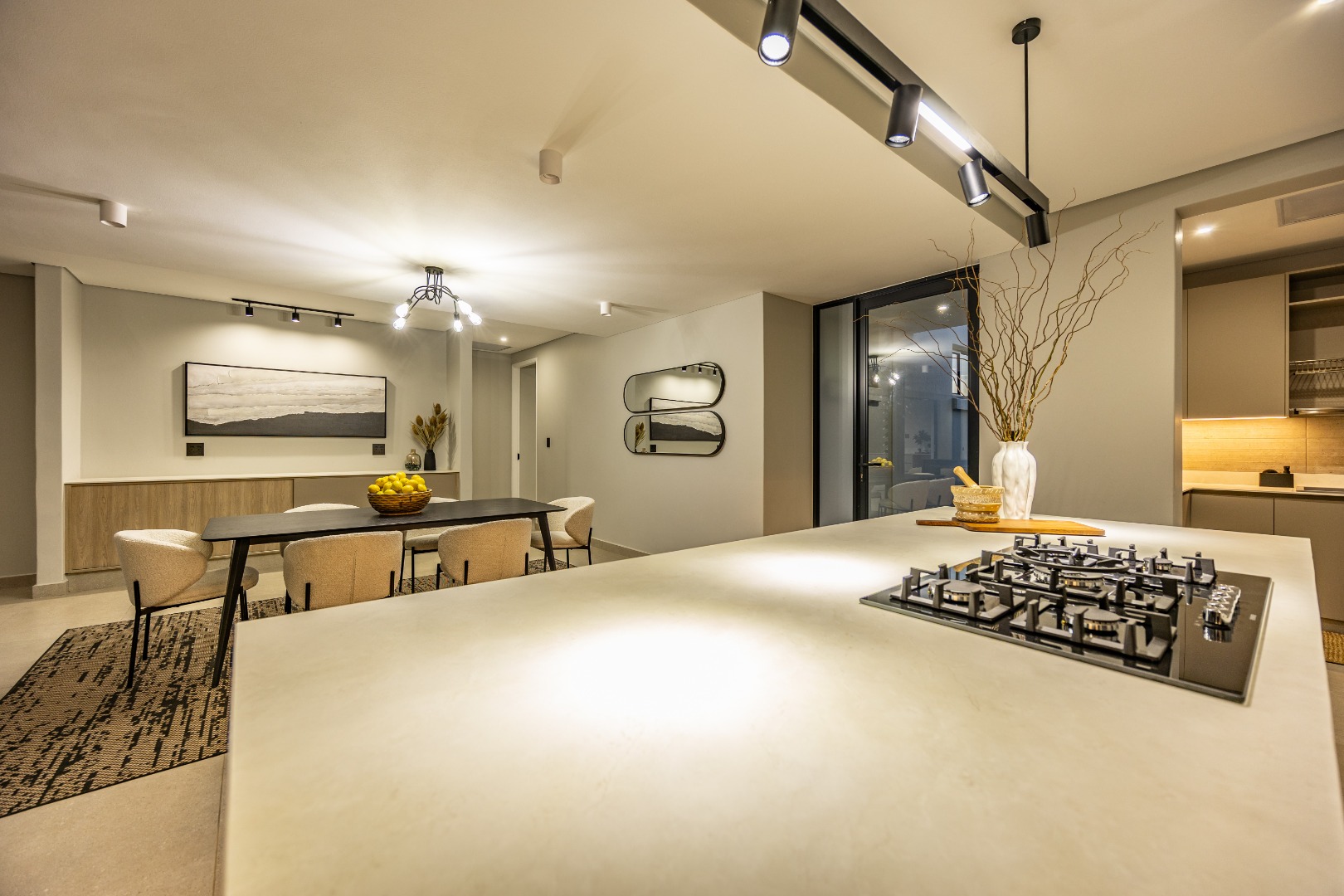 This stunning 2-bedroom home is offered as a full-title, plot-and-plan package, where all transfer duties are included in the price. It presents a sophisticated layout with two well-appointed en-suite bedrooms for ultimate comfort, a convenient guest bathroom, and a spacious open-plan lounge and dining area. A key feature is the wonderful enclosed patio with a built-in braai, creating a perfect space for year-round entertaining. The modern kitchen is complemented by a separate scullery, adding to the home's practical elegance. Finished to a high standard with Snova quartz countertops, Siemens appliances, and quality chrome sanitary ware, this home is a turnkey solution for sophisticated living. A single garage and premium finishes make this an outstanding choice for an effortless lifestyle. As a Phase 1 resident, you are investing in a growing vision, with future phases set to introduce on-site retail and additional sporting facilities, further enhancing your lifestyle and the value of your property for years to come. You’re invited to visit the on-site show village every Saturday from 09:00 to 13:00, or welcome to contact the agent to arrange a private viewing.