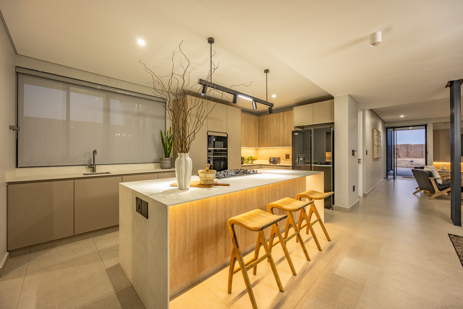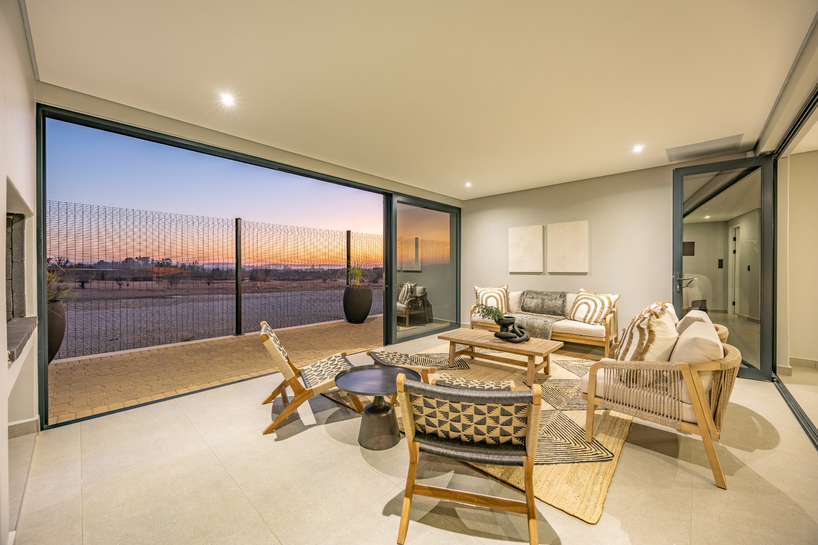 This fantastic 3-bedroom home is offered as a full-title, plot-and-plan package where all transfer duties are included in the price. It is ideal for those who need extra space for visiting family or hobbies, featuring three well-sized bedrooms and two modern bathrooms, including a generous main en-suite with a full bath and shower. The intuitive layout includes an open-plan kitchen, lounge, and a 16m² dining/patio area that creates a welcoming and social atmosphere. The home is finished with high-quality standard features like Snova quartz countertops and Siemens appliances. A double garage provides secure parking and storage, ensuring a sophisticated and practical living environment from day one. As a Phase 1 resident, you are investing in a growing vision, with future phases set to introduce on-site retail and additional sporting facilities, further enhancing your lifestyle and the value of your property for years to come. You’re invited to visit the on-site show village every Saturday from 09:00 to 13:00, or welcome to contact the agent to arrange a private viewing.