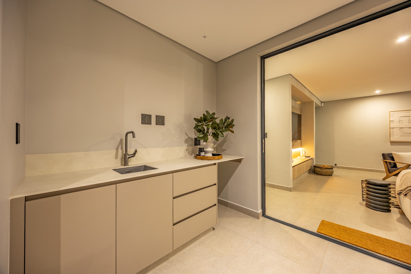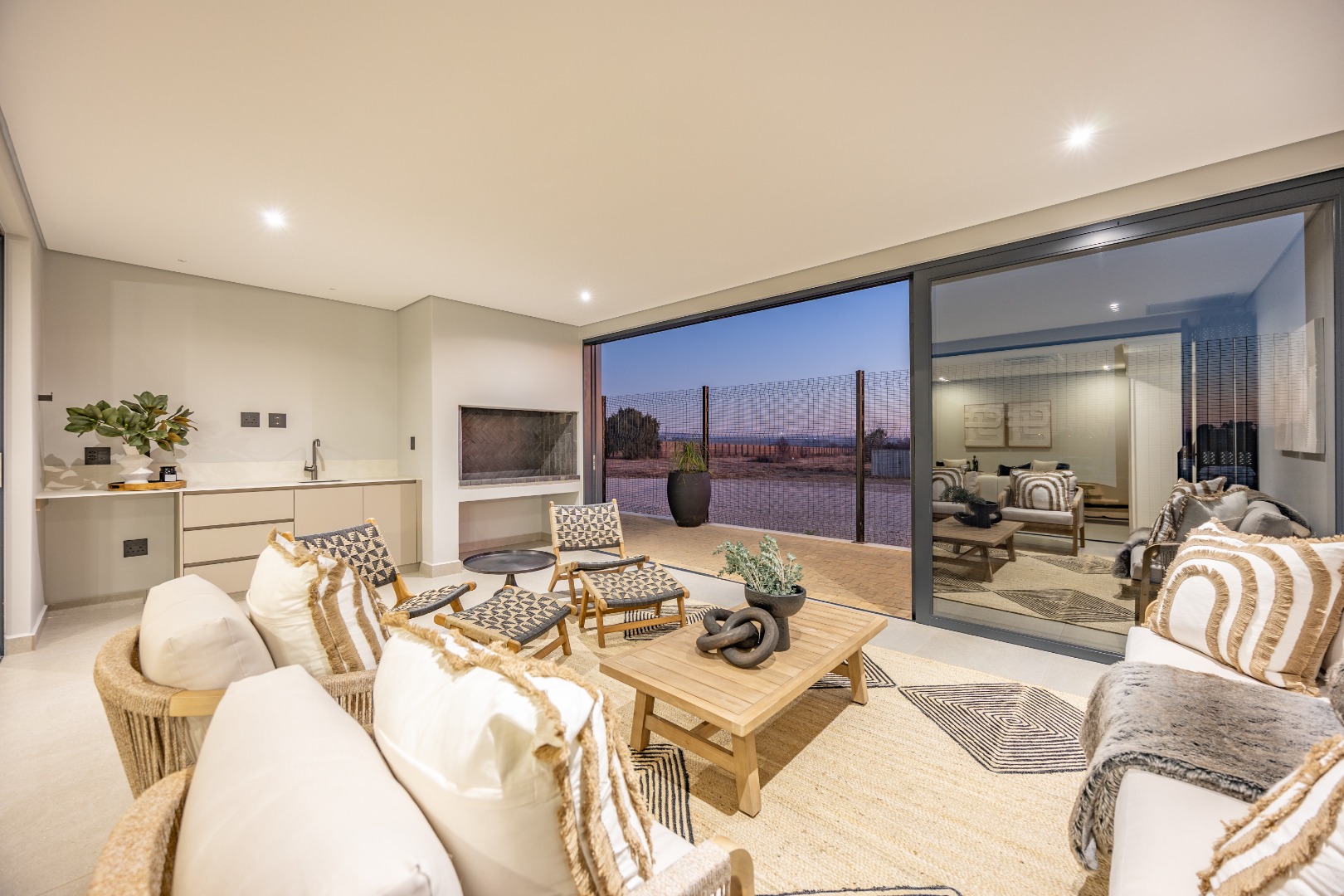 This impressive 3-bedroom home is offered as a full-title, plot-and-plan package where all transfer duties are included in the price. This home is a masterclass in design, offering three luxurious en-suite bedrooms, ensuring ultimate privacy and comfort for all occupants, plus a separate guest WC. The expansive open-plan living and dining area flows beautifully to a large covered patio, ideal for entertaining. The home is further enhanced by a modern kitchen with a separate scullery, a dedicated laundry room, a staff WC, and a double garage. High-quality finishes, including Snova quartz countertops and Siemens appliances, complete this truly comprehensive and elegant home for a discerning buyer. As a Phase 1 resident, you are investing in a growing vision, with future phases set to introduce on-site retail and additional sporting facilities, further enhancing your lifestyle and the value of your property for years to come. You’re invited to visit the on-site show village every Saturday from 09:00 to 13:00, or welcome to contact the agent to arrange a private viewing.