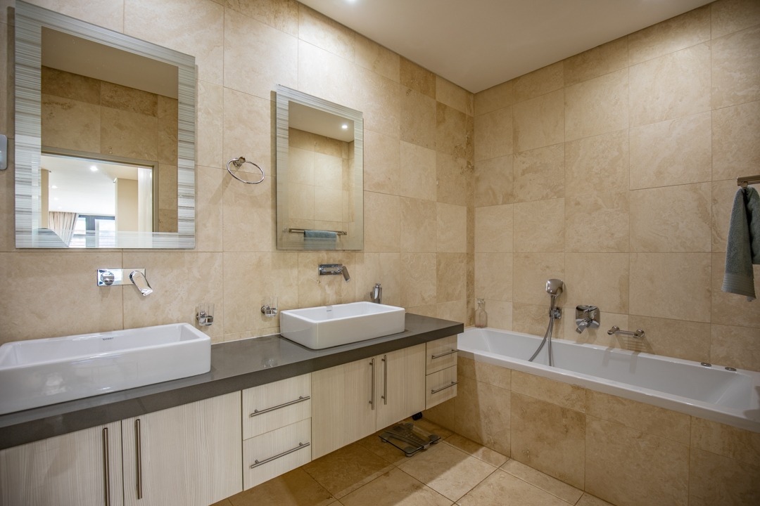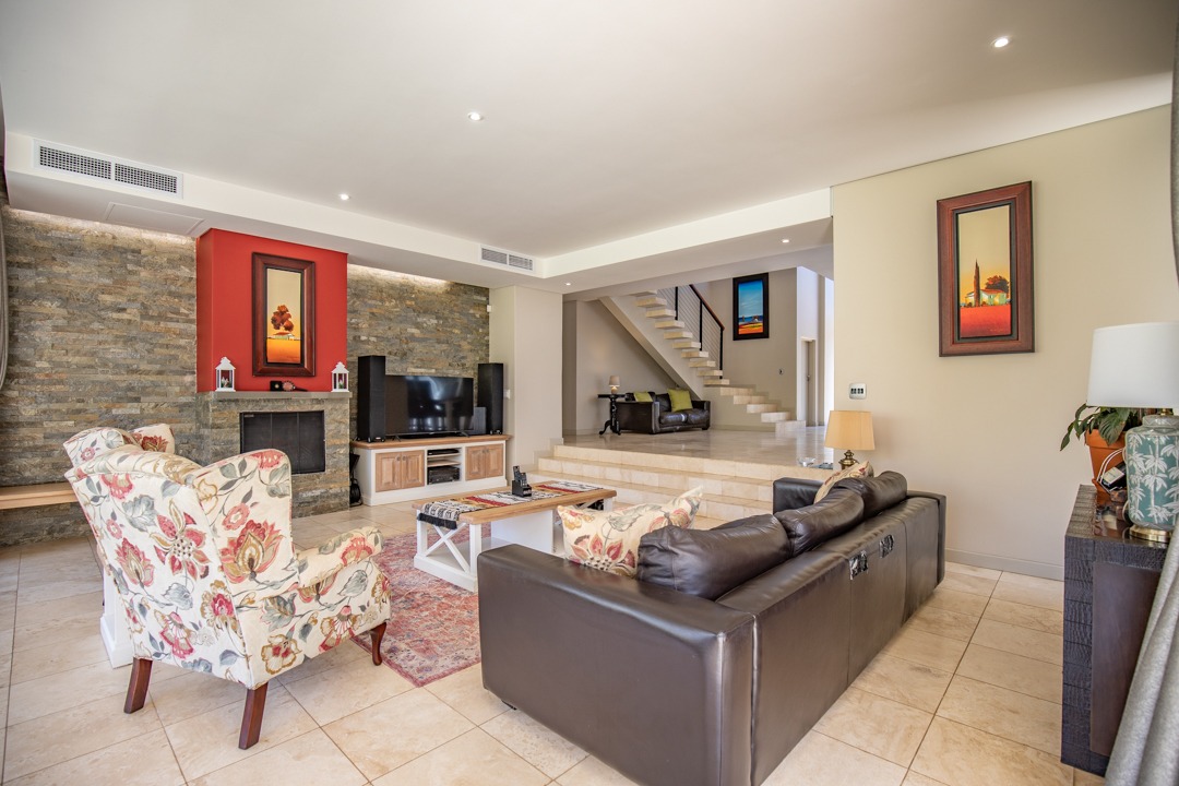 The master suite is privately positioned downstairs, featuring a walk-in closet and a luxurious full en suite bathroom — your own tranquil retreat after a long day. Upstairs, two generously sized bedrooms each offer their own en suite bathrooms and open out onto a shared balcony with estate views, perfect for enjoying peaceful mornings or sunset evenings. The home is immaculately furnished, and all furniture is available for sale at an additional price to be negotiated — allowing you to simply move in and start enjoying the space.