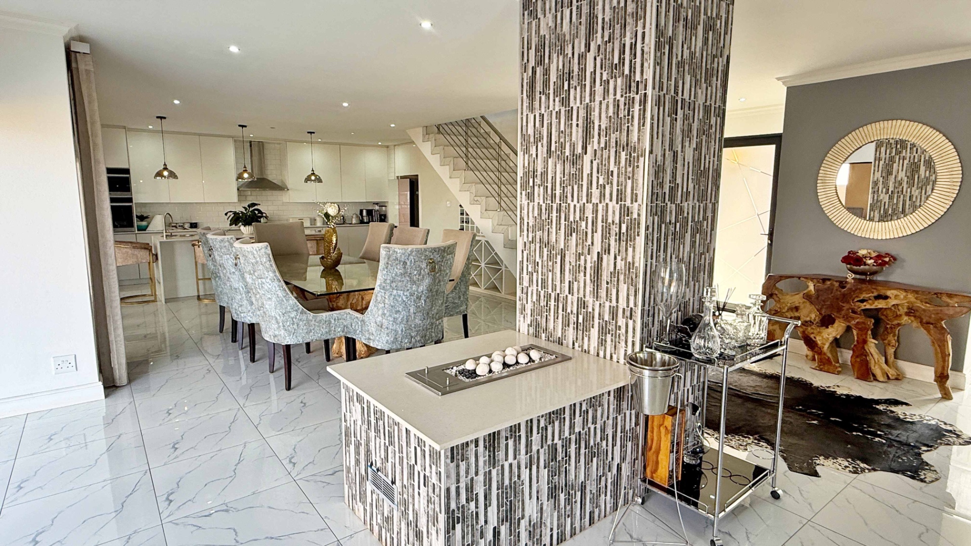 • Grand Living Spaces: Open-plan interiors flow seamlessly from the statement fireplace lounge to the dining and entertainment areas.