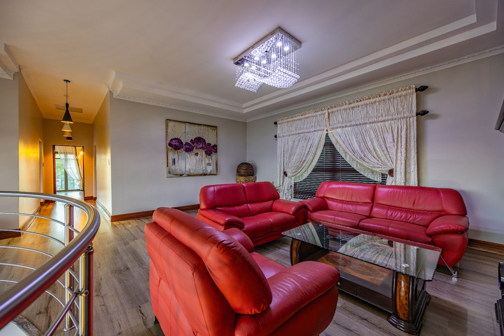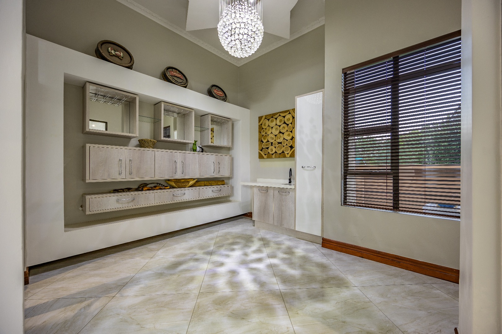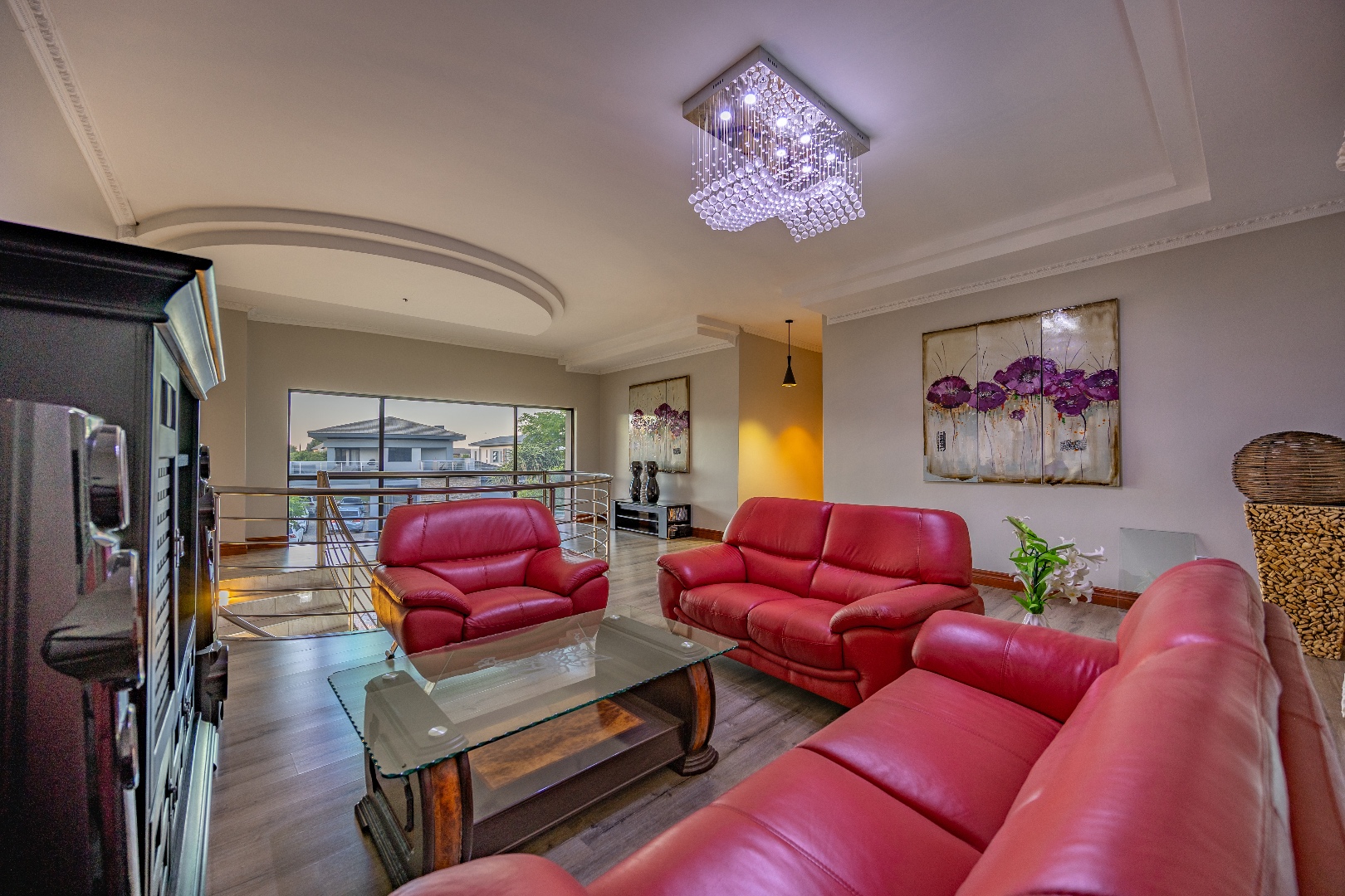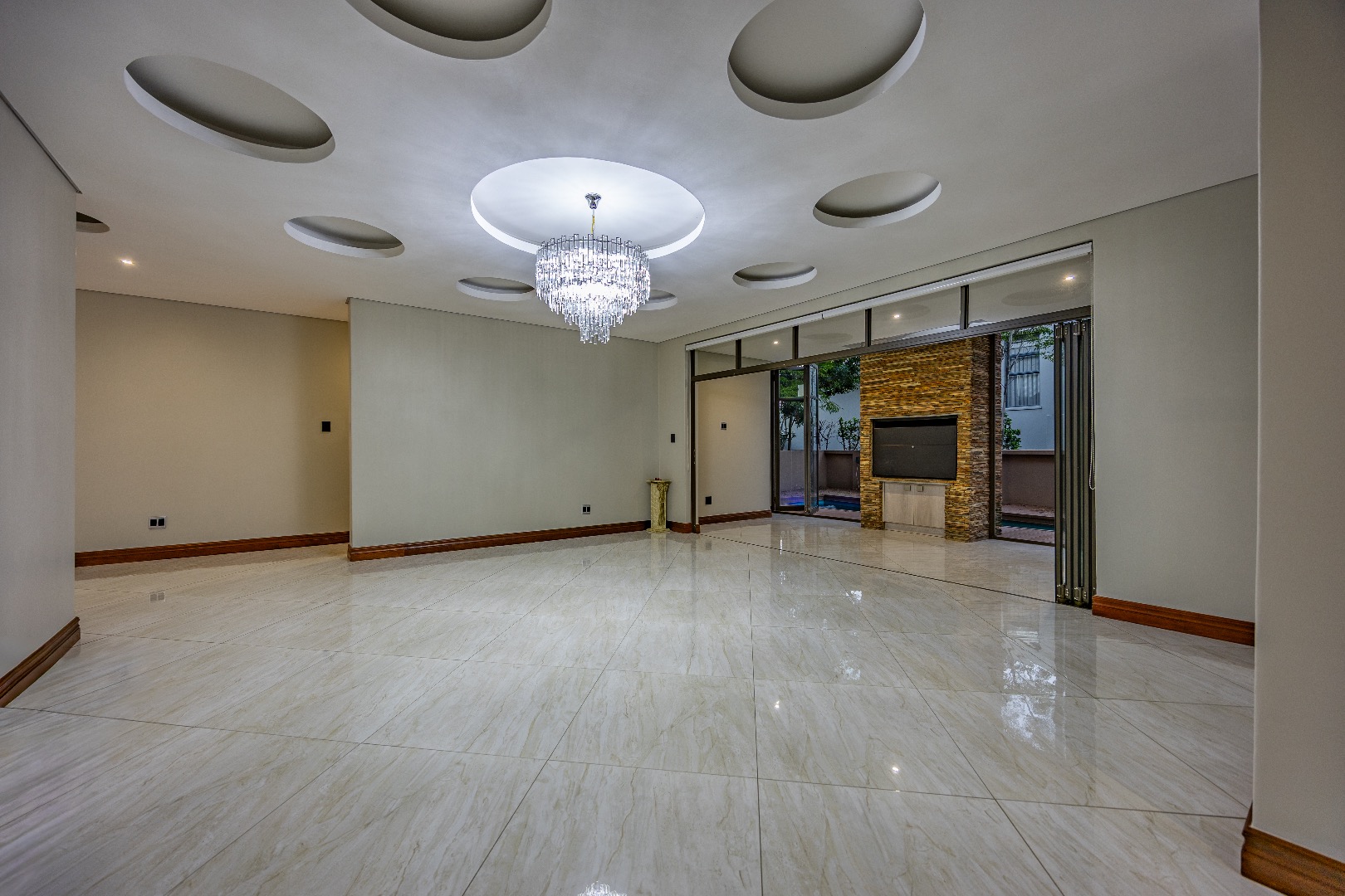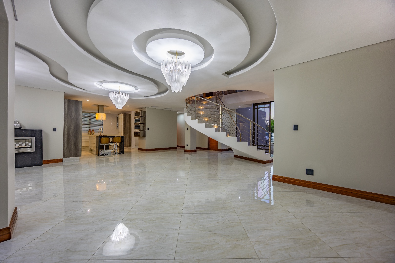 Discover a newly renovated, ultra-modern masterpiece for sale in the prestigious Lombardy Estate, offering exceptional luxury, space, and cutting-edge design. This home welcomes you with a grand entrance featuring a striking spiral staircase that sets the tone for the contemporary elegance found throughout. The expansive open-plan layout connects the designer kitchen, dining area, and double lounge to a sophisticated bar and entertainment area, all flowing seamlessly onto a covered patio overlooking the pool. The home showcases remarkable light installations, including bespoke 3D ceiling remodelling, enhancing its architectural brilliance. It offers five spacious en-suite bedrooms, with the guest suite conveniently located downstairs, while the enormous master bedroom features abundant cupboard space and a dedicated dressing area. The kitchen is a true showpiece, equipped with Miele appliances, special lighting, and a combination of induction and gas cooking.
