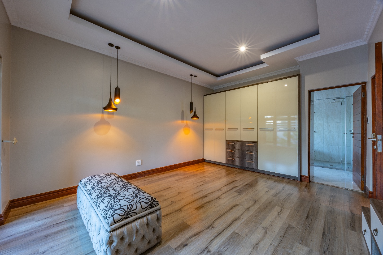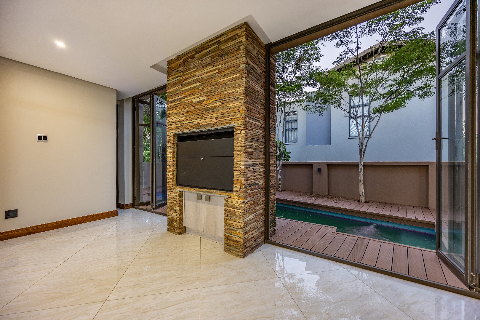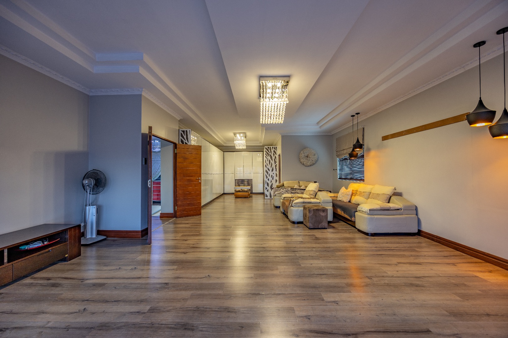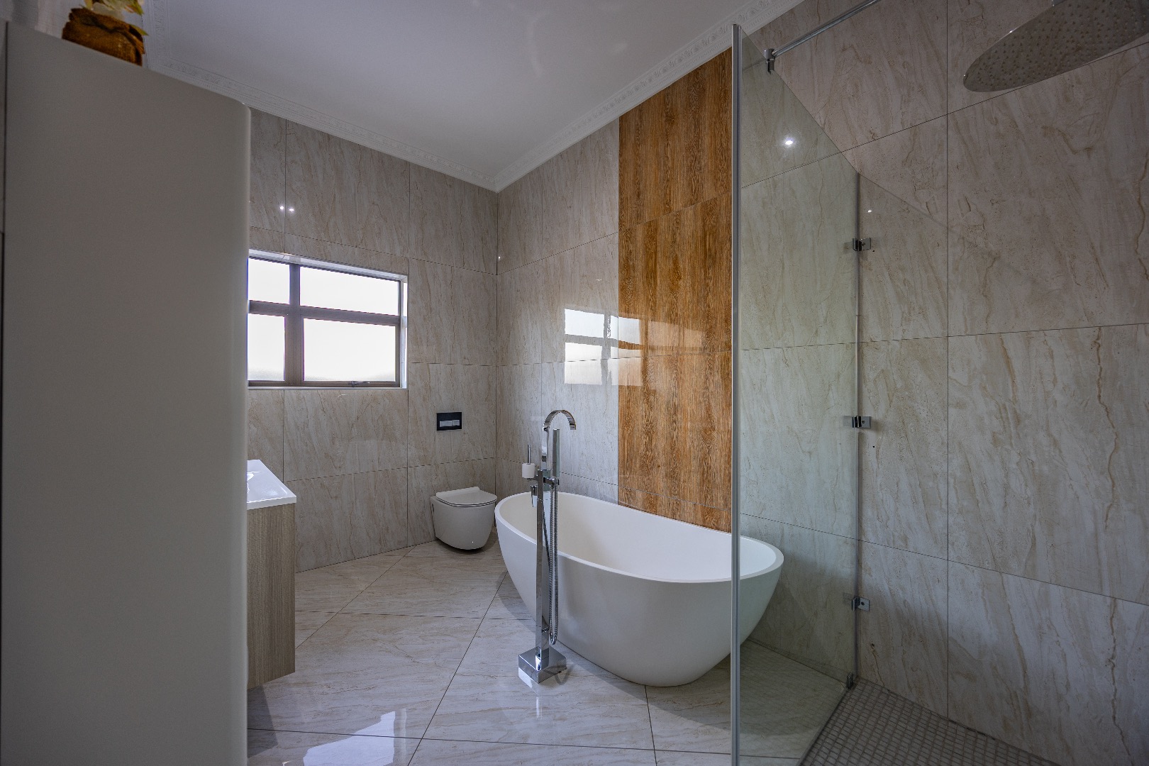 Discover a newly renovated, ultra-modern masterpiece for sale in the prestigious Lombardy Estate, offering exceptional luxury, space, and cutting-edge design. This home welcomes you with a grand entrance featuring a striking spiral staircase that sets the tone for the contemporary elegance found throughout. The expansive open-plan layout connects the designer kitchen, dining area, and double lounge to a sophisticated bar and entertainment area, all flowing seamlessly onto a covered patio overlooking the pool. The home showcases remarkable light installations, including bespoke 3D ceiling remodelling, enhancing its architectural brilliance. It offers five spacious en-suite bedrooms, with the guest suite conveniently located downstairs, while the enormous master bedroom features abundant cupboard space and a dedicated dressing area. The kitchen is a true showpiece, equipped with Miele appliances, special lighting, and a combination of induction and gas cooking.