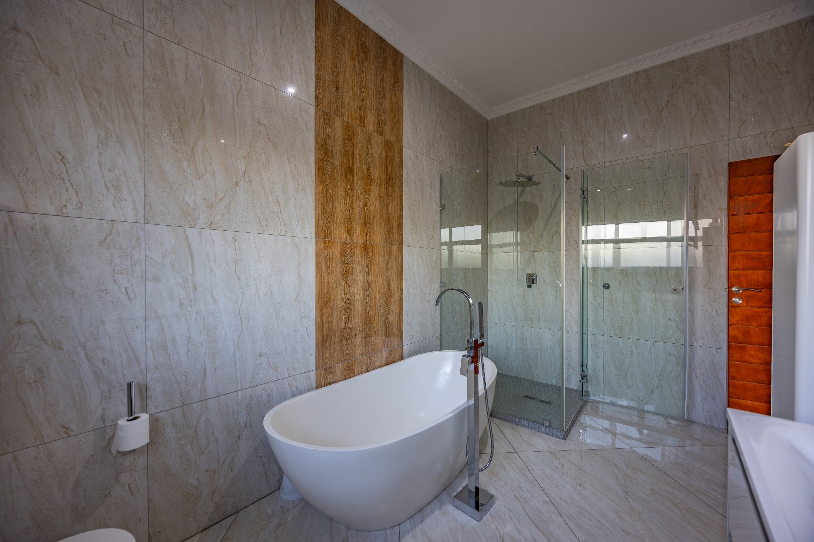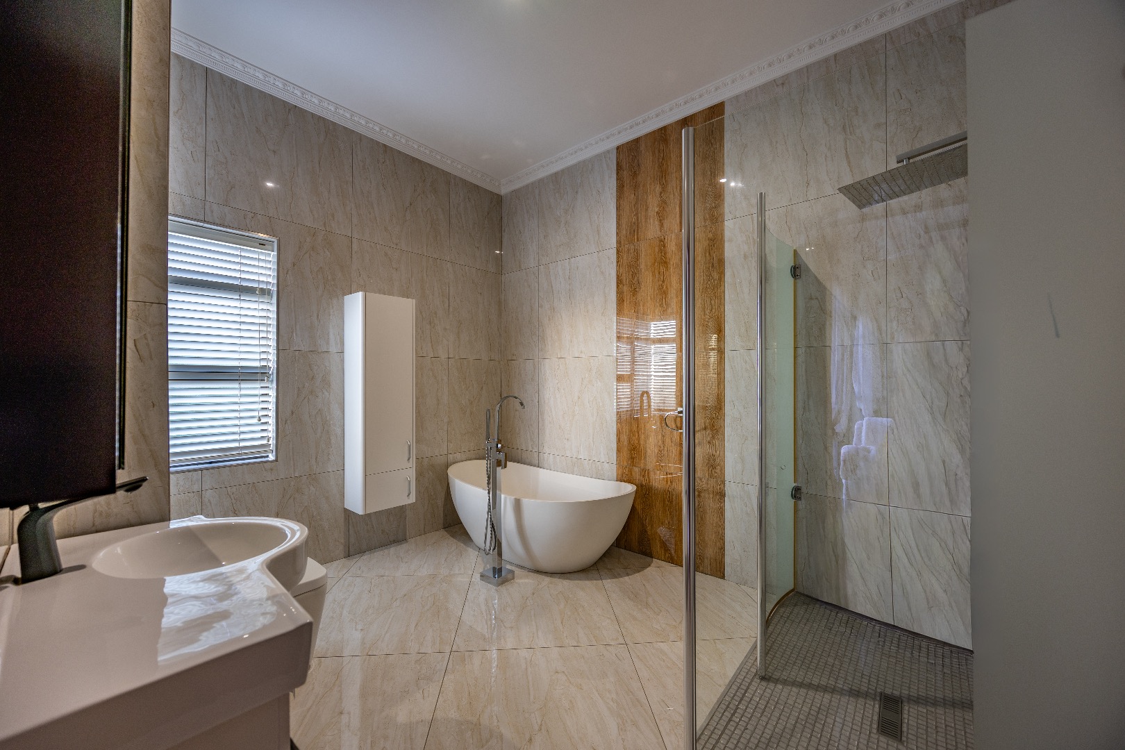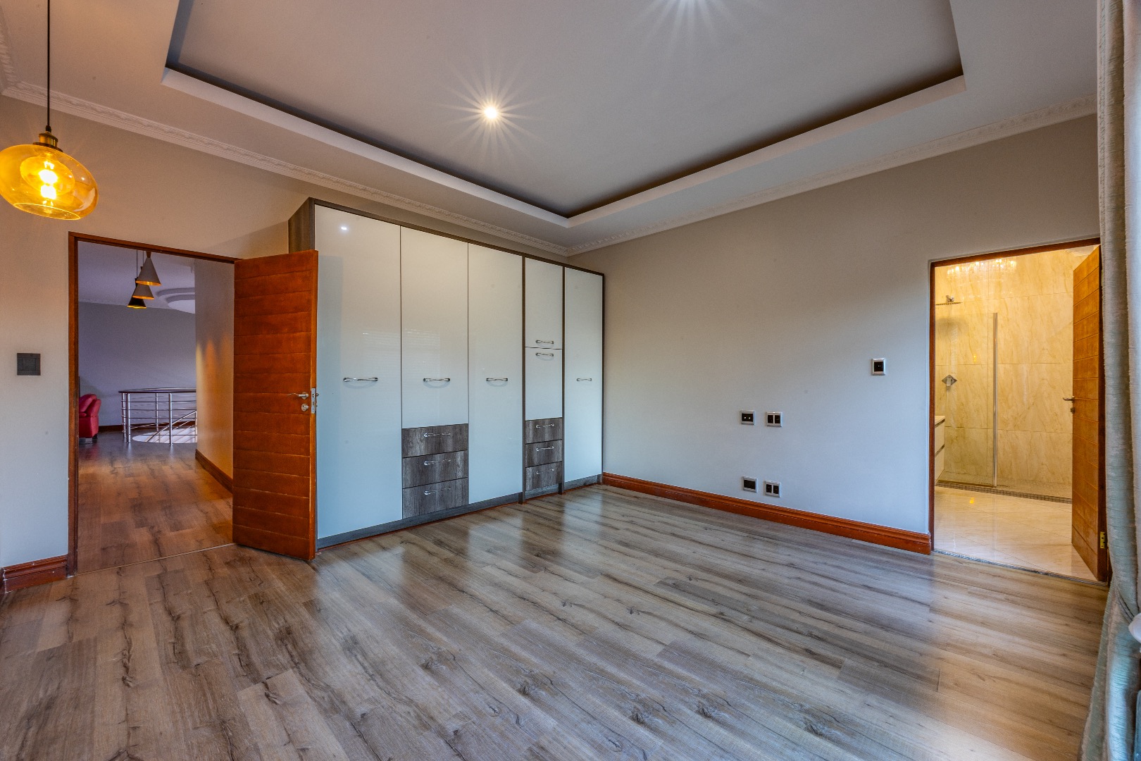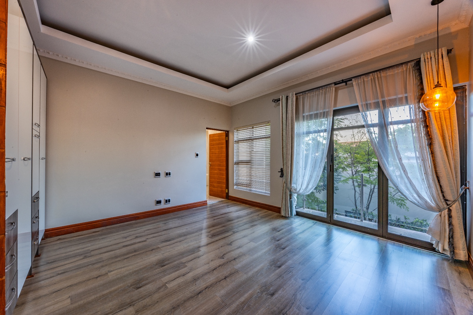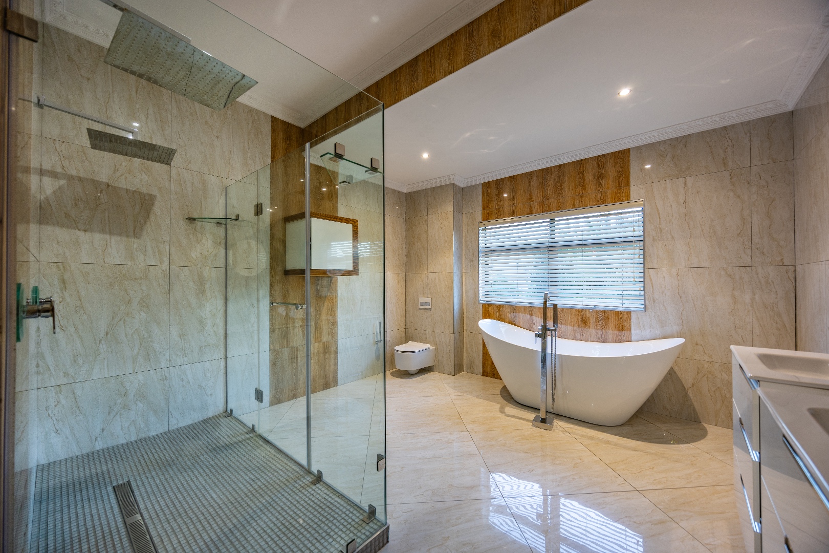 Discover a newly renovated, ultra-modern masterpiece for sale in the prestigious Lombardy Estate, offering exceptional luxury, space, and cutting-edge design. This home welcomes you with a grand entrance featuring a striking spiral staircase that sets the tone for the contemporary elegance found throughout. The expansive open-plan layout connects the designer kitchen, dining area, and double lounge to a sophisticated bar and entertainment area, all flowing seamlessly onto a covered patio overlooking the pool. The home showcases remarkable light installations, including bespoke 3D ceiling remodelling, enhancing its architectural brilliance. It offers five spacious en-suite bedrooms, with the guest suite conveniently located downstairs, while the enormous master bedroom features abundant cupboard space and a dedicated dressing area. The kitchen is a true showpiece, equipped with Miele appliances, special lighting, and a combination of induction and gas cooking.