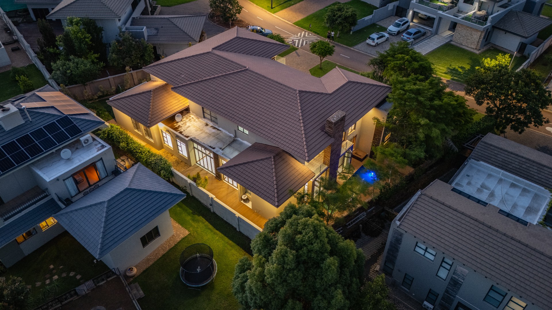 Entertainment options are exceptional, including an exquisite cinema room with a projector and furniture included at full asking price. Additional features include a fully equipped staff suite with a bedroom, kitchen, and bathroom, fibre connectivity throughout the estate, and two 1,000-litre reserve tanks linked to the borehole and filtration system. The landscaped, fully irrigated garden boasts mature trees and shrubs and complements the chlorine pool with durable composite decking. A pyjama lounge, a designer home office, a cozy gas fireplace, and three spacious garages offering secure parking for up to seven additional vehicles further enhance the property. The home is fitted with a Tshwane prepaid meter, DSTV installation, and designer curtains—also included at full asking price. A highly productive borehole delivering approximately 6,000 litres per hour supplies the entire home and garden.