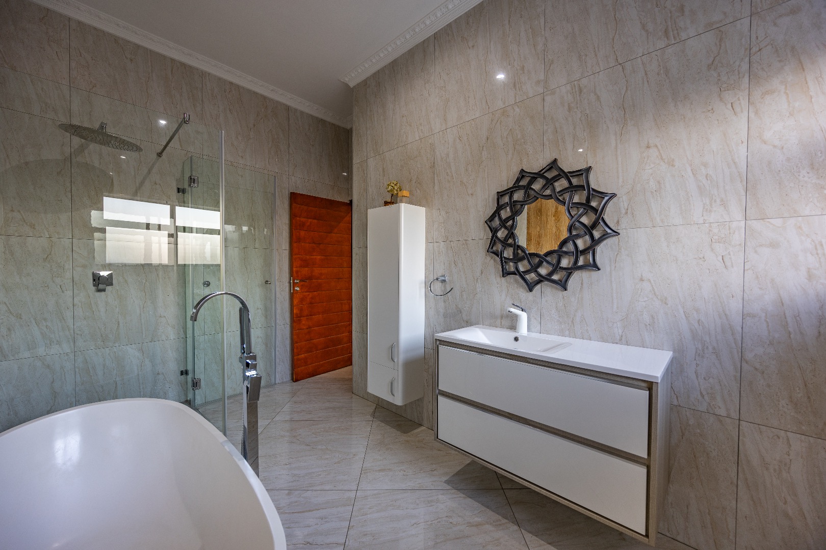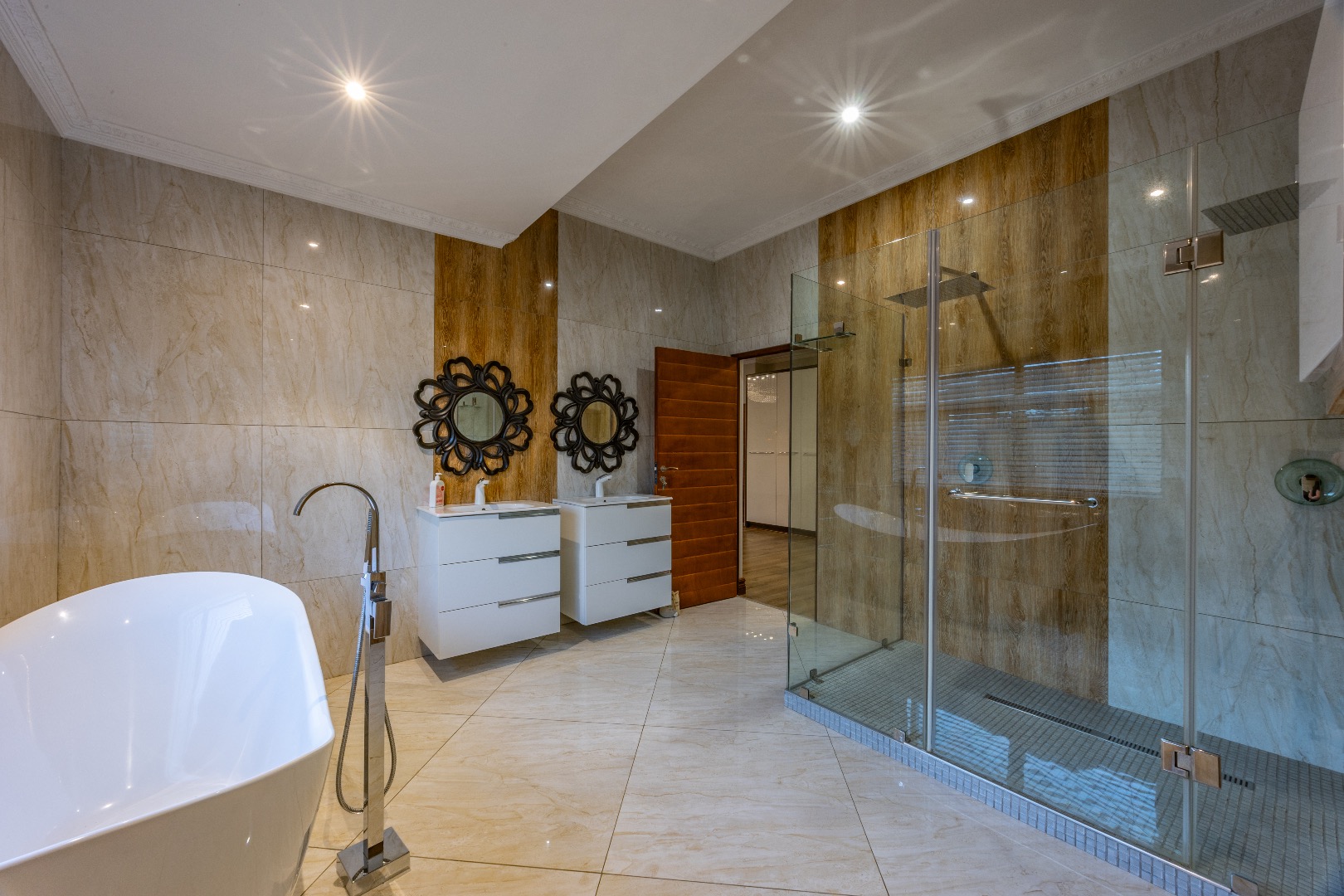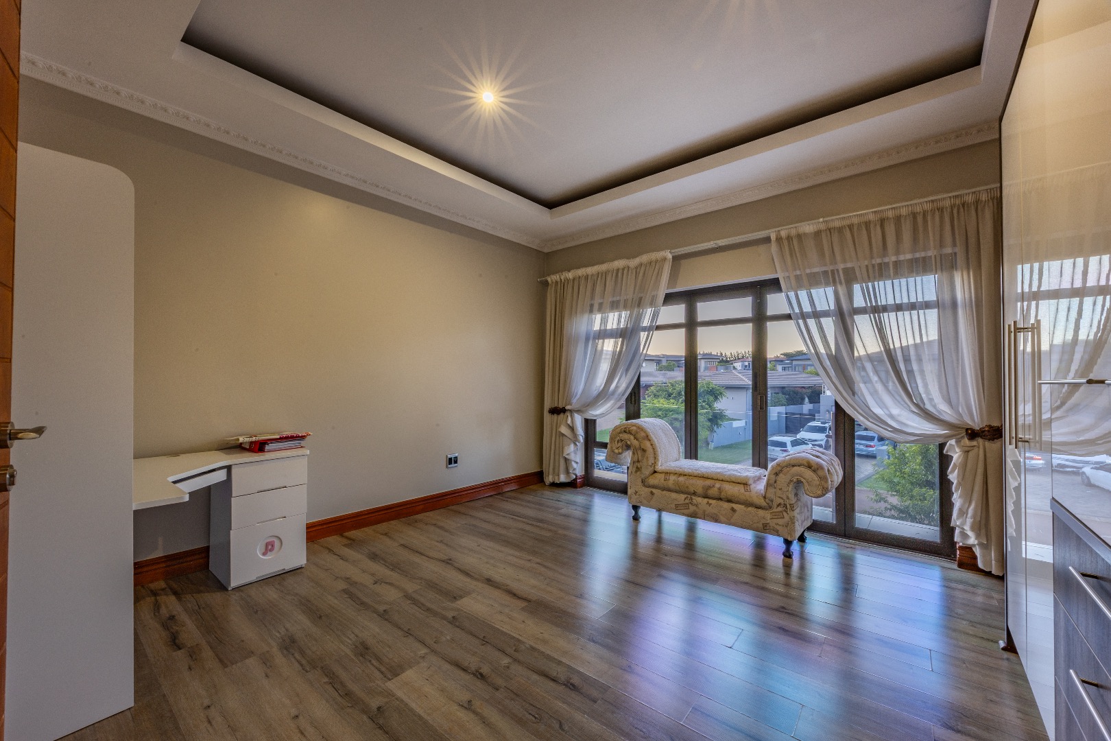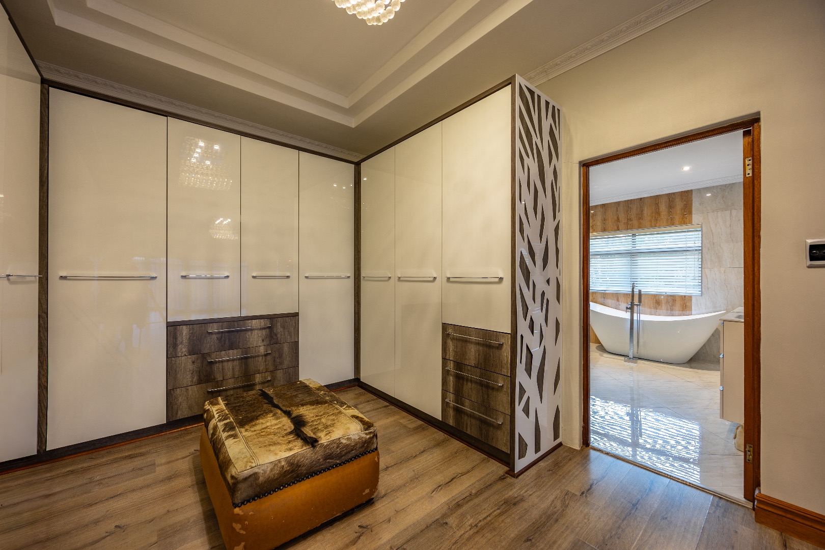 Discover a newly renovated, ultra-modern masterpiece for sale in the prestigious Lombardy Estate, offering exceptional luxury, space, and cutting-edge design. This home welcomes you with a grand entrance featuring a striking spiral staircase that sets the tone for the contemporary elegance found throughout. The expansive open-plan layout connects the designer kitchen, dining area, and double lounge to a sophisticated bar and entertainment area, all flowing seamlessly onto a covered patio overlooking the pool. The home showcases remarkable light installations, including bespoke 3D ceiling remodelling, enhancing its architectural brilliance. It offers five spacious en-suite bedrooms, with the guest suite conveniently located downstairs, while the enormous master bedroom features abundant cupboard space and a dedicated dressing area. The kitchen is a true showpiece, equipped with Miele appliances, special lighting, and a combination of induction and gas cooking.