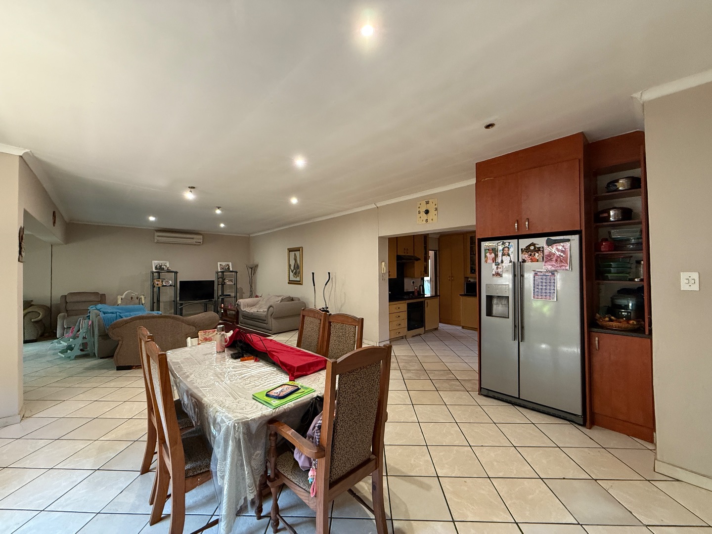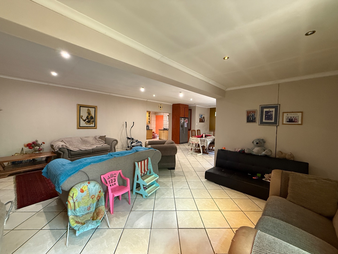 Discover this spacious four-bedroom, three-and-a-half-bathroom home located in the desirable suburban area of Menlo Park, Pretoria. This property offers a fantastic opportunity for renovation and personalization, ideal for families seeking a metropolitan lifestyle with ample space. The interior features an inviting open-plan layout, seamlessly connecting the lounge, dining area, and kitchen. Tiled flooring throughout the main living spaces ensures durability and ease of maintenance, complemented by recessed lighting and large windows that invite abundant natural light. The kitchen is equipped with a pantry, providing practical storage solutions. A dedicated family TV room offers an additional versatile living space for relaxation or entertainment. Sliding doors enhance the flow to outdoor areas. Accommodation comprises four well-proportioned bedrooms, many featuring built-in wardrobes for convenient storage and natural light from windows, some with security bars. The property includes three full bathrooms, two of which are en-suite, alongside a guest toilet, offering comfort and privacy for residents and visitors alike. While functional, these spaces present an excellent canvas for modern updates to truly make this house your home. Outside, the property boasts a private garden, a patio perfect for outdoor entertaining, and a built-in braai for social gatherings. Paving provides practical access and additional parking. Security is enhanced with electric fencing and a security gate, offering peace of mind. The home is also fibre-ready, ensuring high-speed internet connectivity. Pets are allowed, making this a welcoming environment for all family members. Parking includes a double garage and four additional open parking spaces. Menlo Park is a sought-after neighbourhood known for its tree-lined streets, excellent schools, and convenient access to amenities, making it a prime location for family living in Pretoria. Key Features: * 4 Bedrooms, 3.5 Bathrooms (2 En-suite) * Open-Plan Living & Dining Area * Dedicated Family TV Room * Kitchen with Pantry * Double Garage & 4 Parking Spaces * Private Garden with Patio & Built-in Braai * Electric Fencing & Security Gate * Fibre-Ready Connectivity * Pet-Friendly Environment * Laundry Facilities