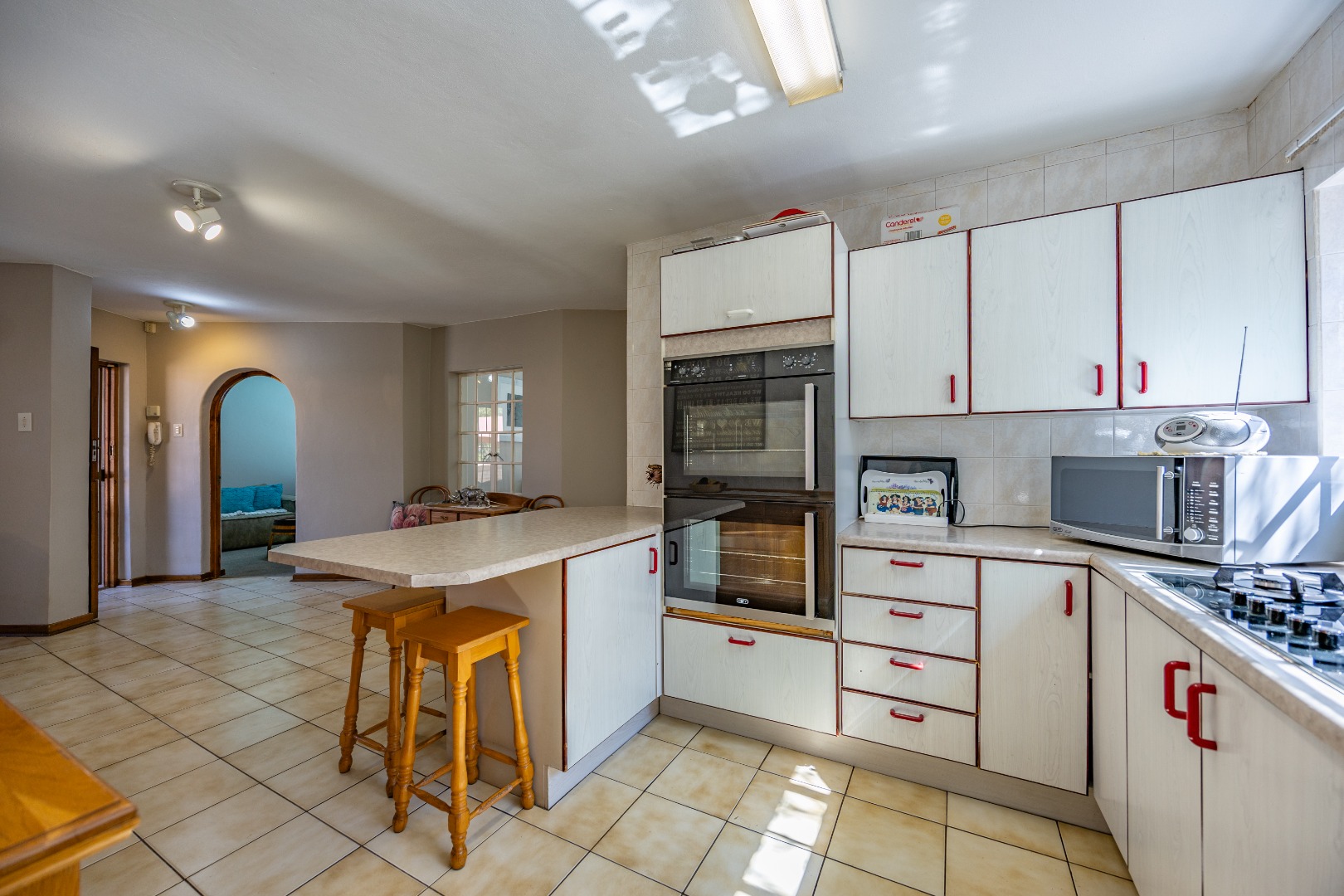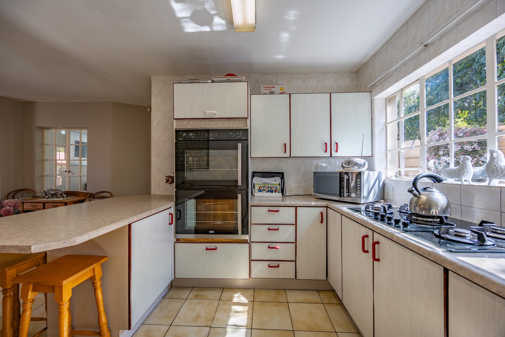 The home welcomes you with multiple living areas, including a dining room, a lounge, and an additional study or extra living space. The open-plan kitchen is a true entertainer’s delight, featuring a double oven, pantry, and separate scullery.