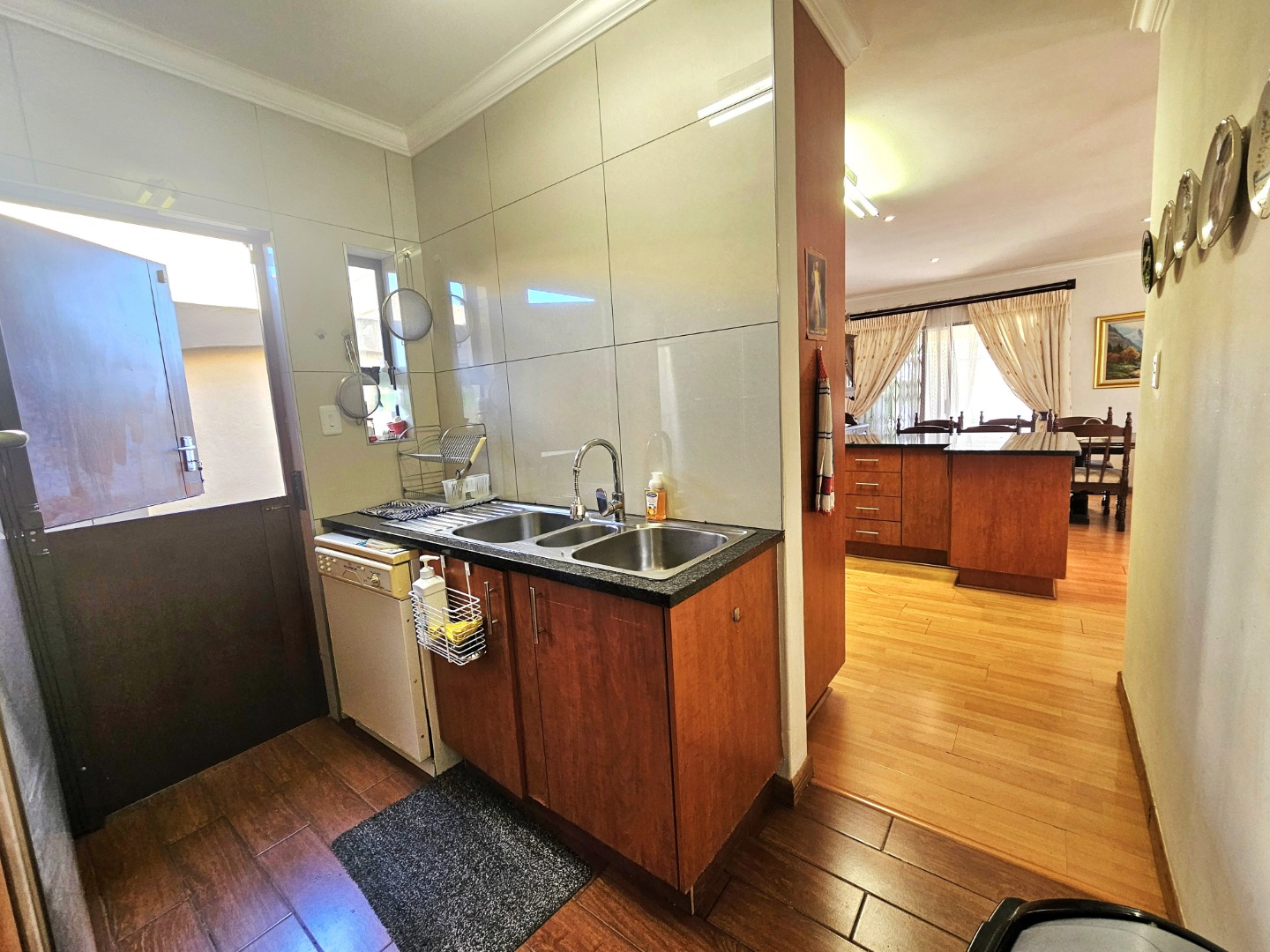 Sole Mandate! This beautiful home is perfectly located in a sought-after security estate close to schools, hospitals, and shopping centres. Step inside and experience spacious, modern living with a welcoming lounge, dining area, and a well-designed kitchen. The kitchen features granite countertops, a generous breakfast nook, ample cabinetry, a gas hob, and a double eye-level oven. It flows seamlessly into the scullery, which offers ample space for a dishwasher and a double fridge/freezer, complete with a water and ice dispenser connection. From here, the scullery connects directly to the double automated garage, which is fitted with water a point for the washing machine and pace for a tumble dryer.