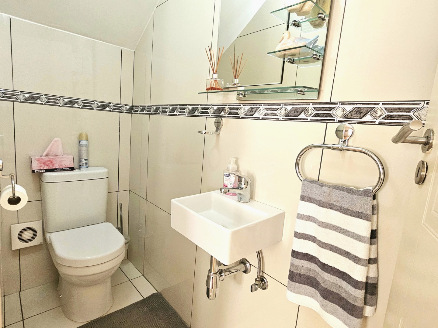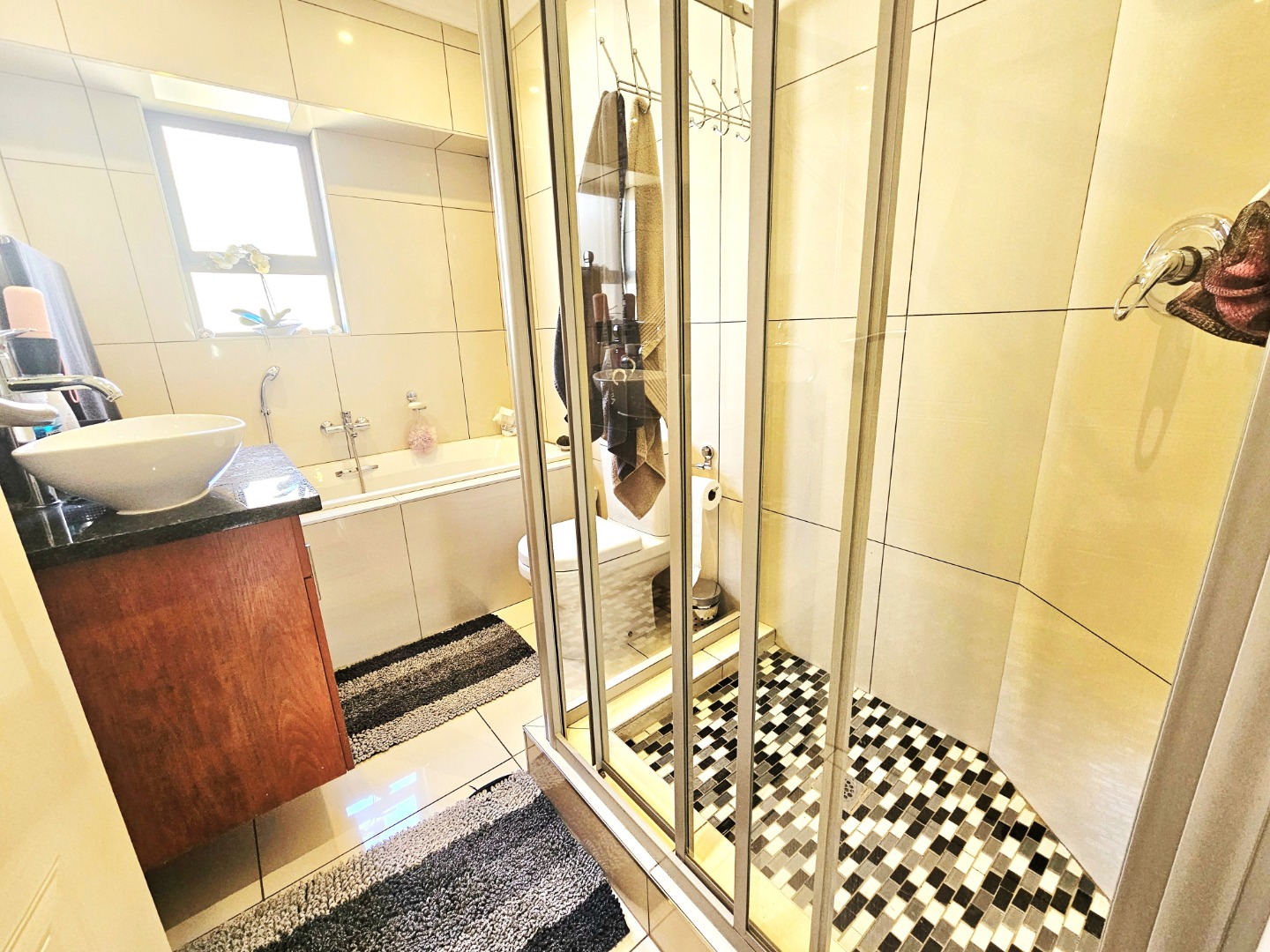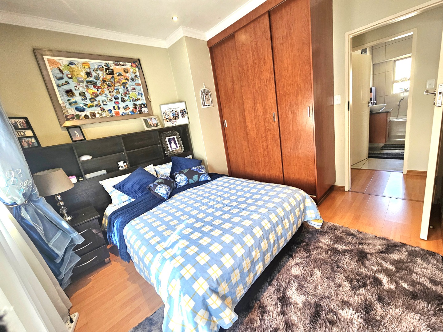 The dining room opens out onto a covered patio with a built-in braai, creating the perfect space to entertain family and friends. The garden is just the right size—whether you’d like to enjoy gardening or simply relax in the sun. For added convenience, the entrance gate is wide enough to allow an additional car to park inside the garden if required. The house includes an alarm system and fibre.