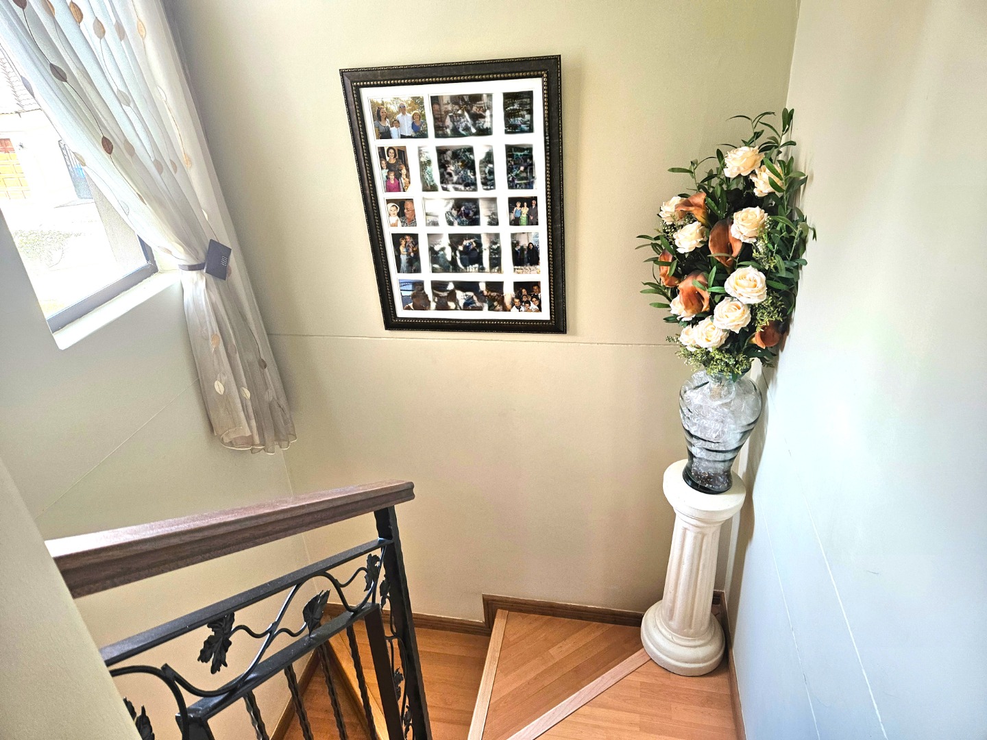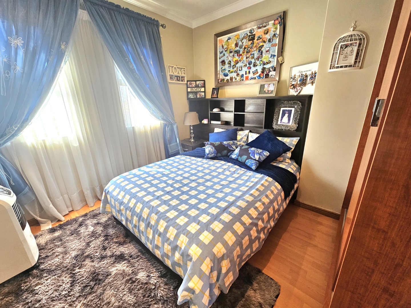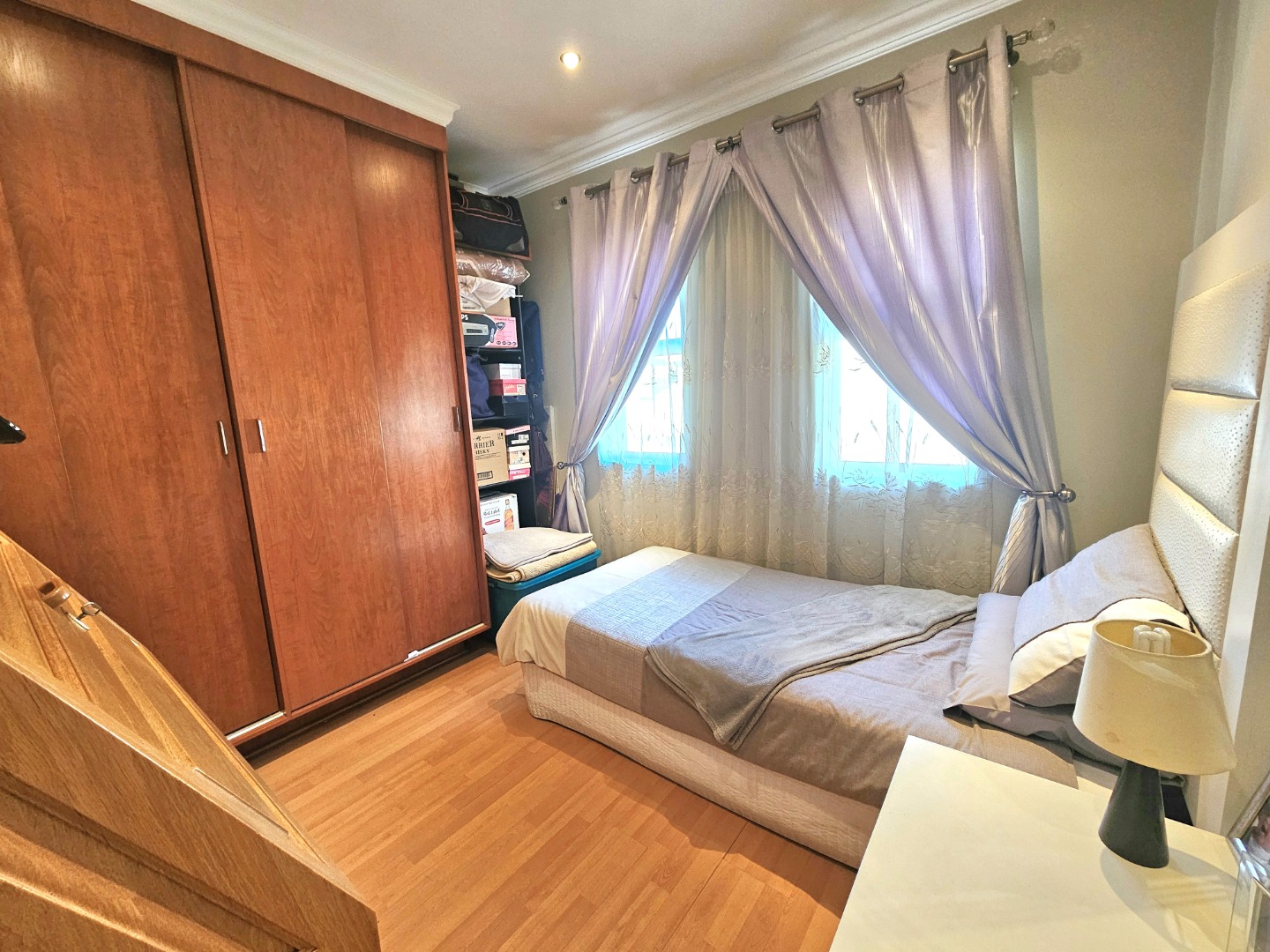 The dining room opens out onto a covered patio with a built-in braai, creating the perfect space to entertain family and friends. The garden is just the right size—whether you’d like to enjoy gardening or simply relax in the sun. For added convenience, the entrance gate is wide enough to allow an additional car to park inside the garden if required. The house includes an alarm system and fibre.