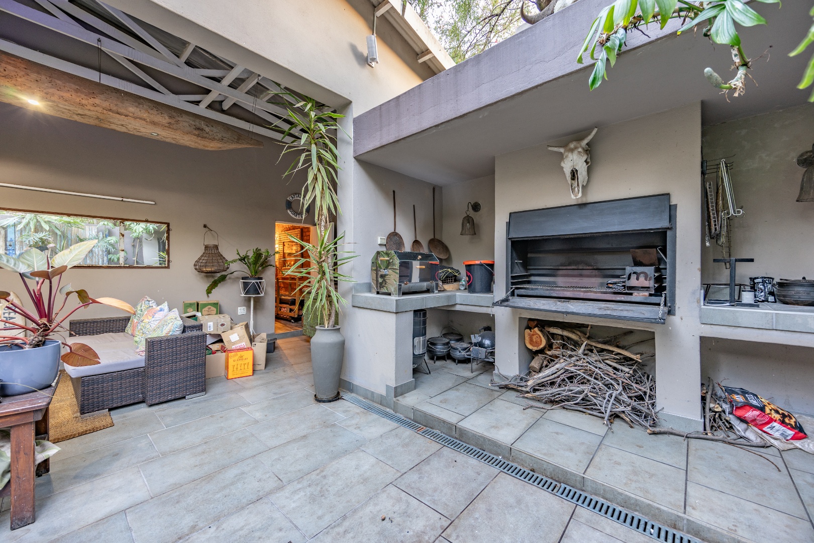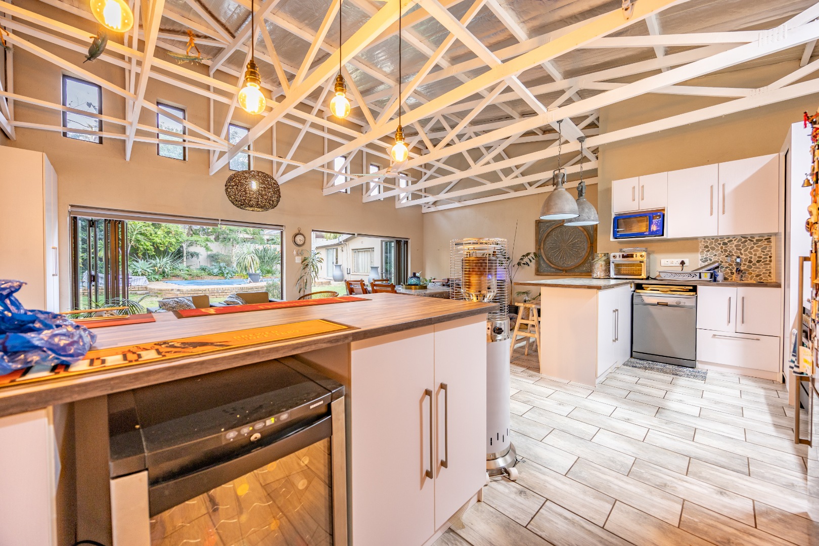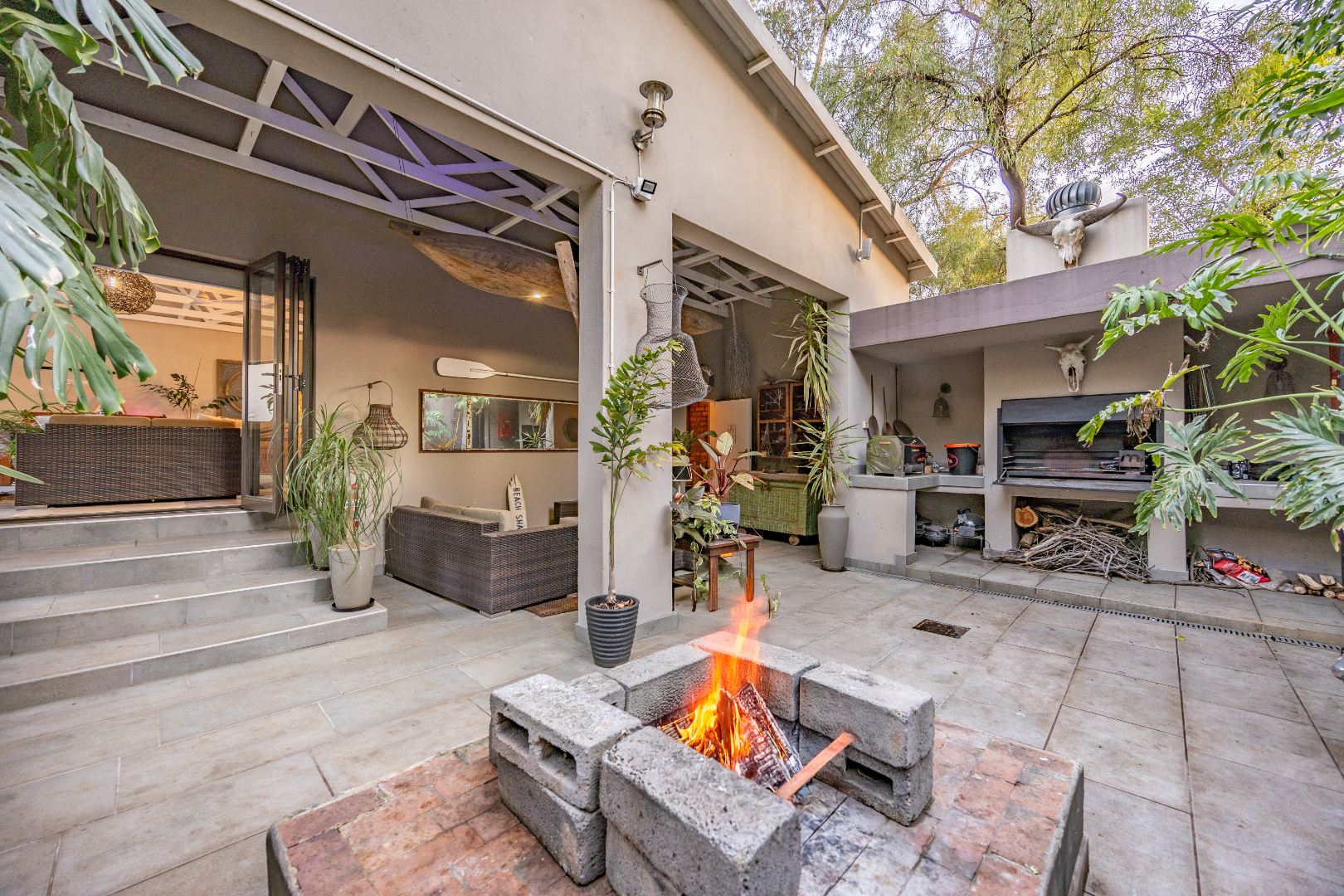 Outdoors, enjoy a solar-heated swimming pool, a fish pond, a Jacuzzi (unused in recent years), a boma area, and an entertainment outbuilding equipped with its own kitchenette and gas stove — perfect for large gatherings. A pecan nut tree adds a special seasonal touch.
