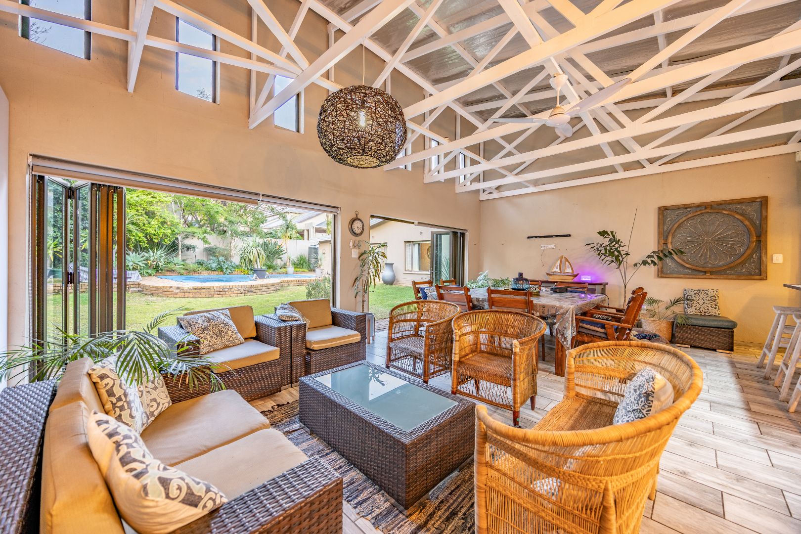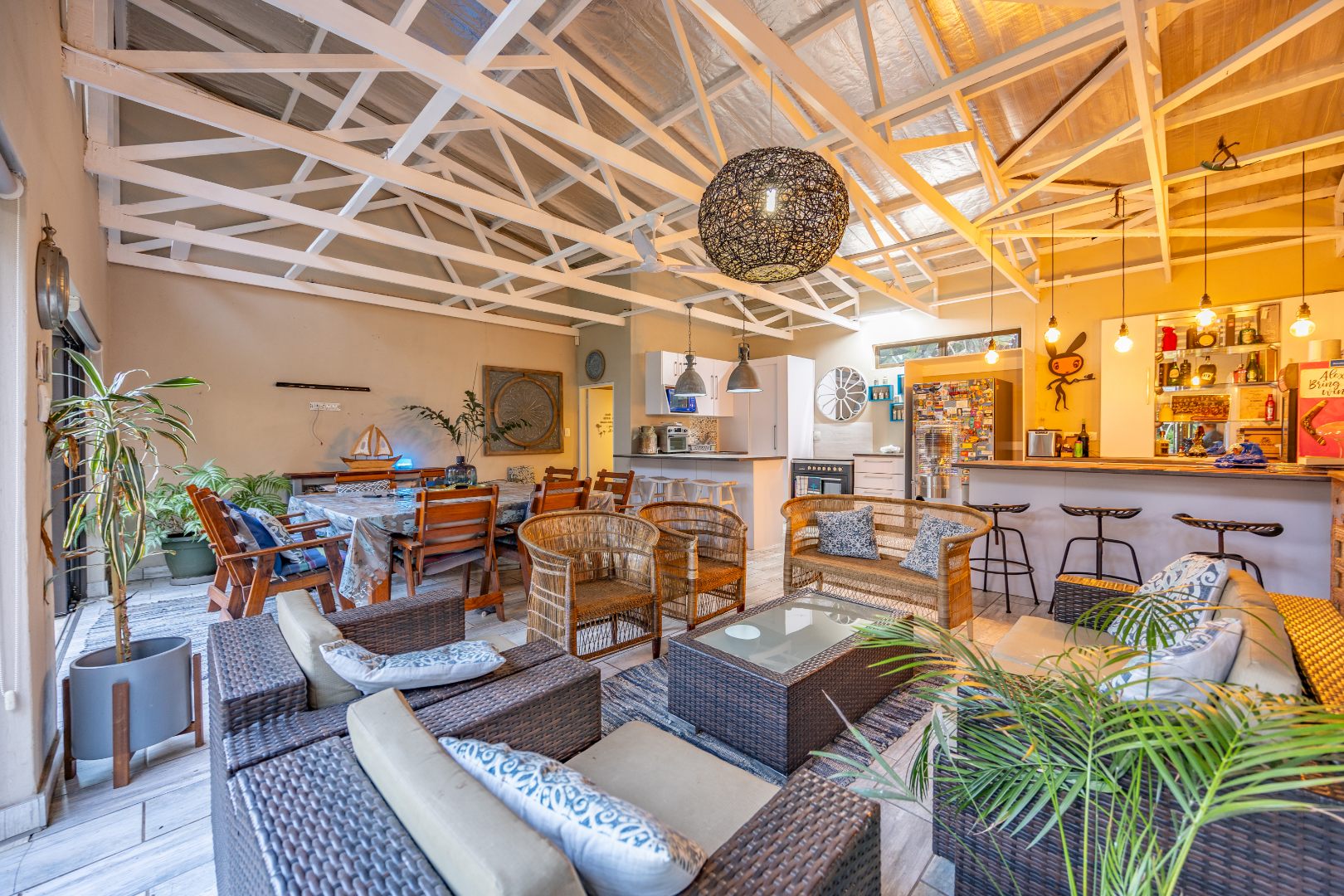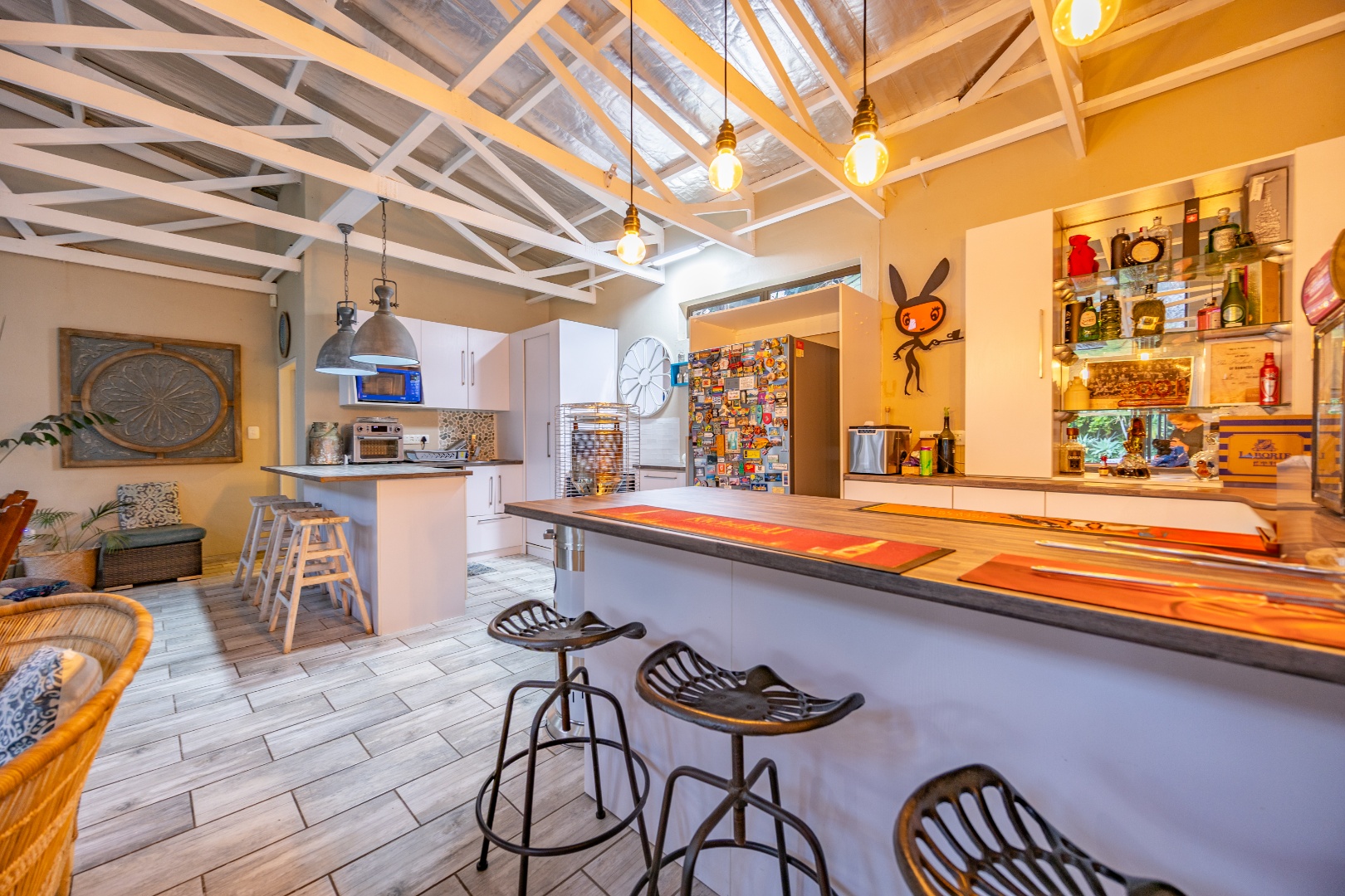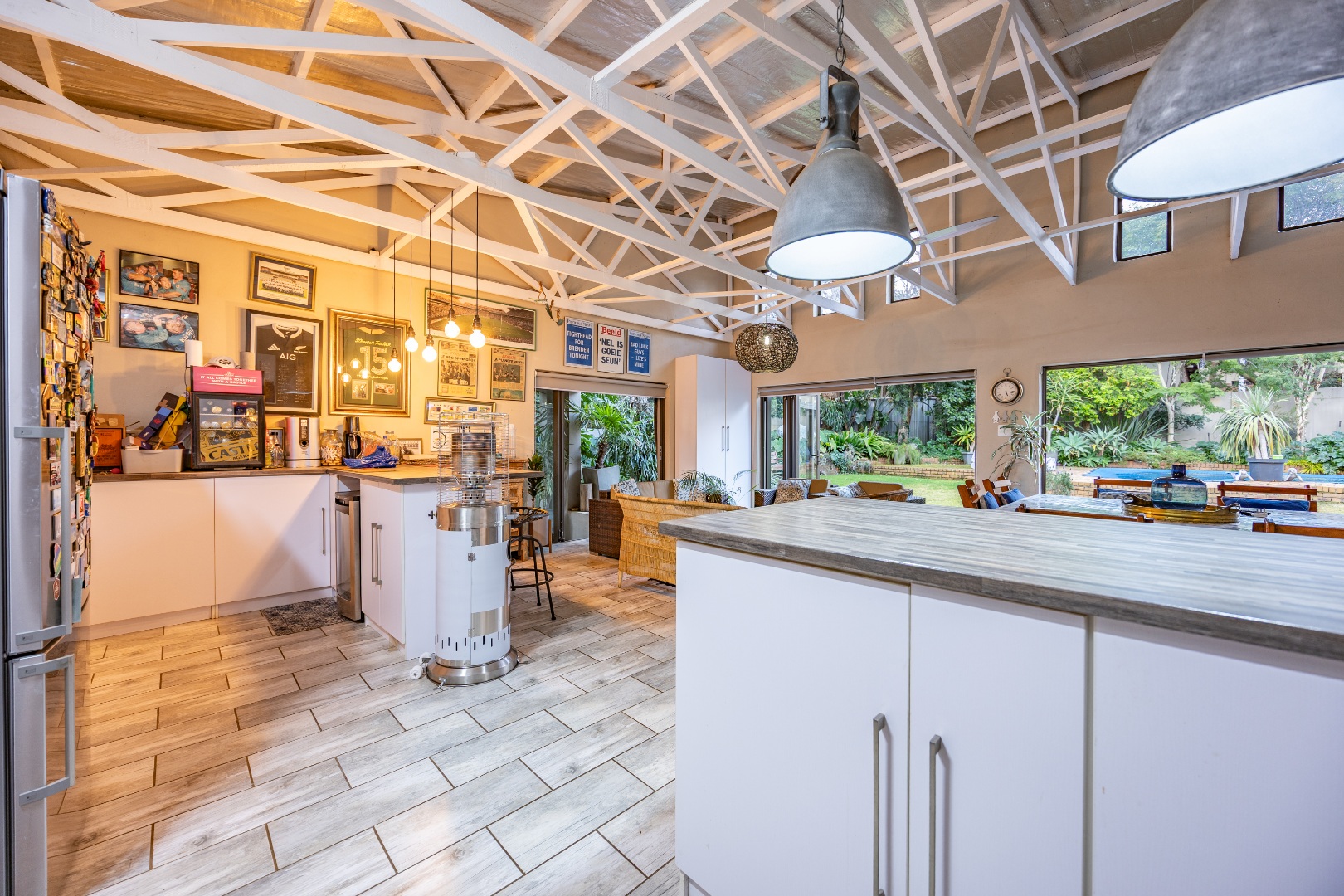 Outdoors, enjoy a solar-heated swimming pool, a fish pond, a Jacuzzi (unused in recent years), a boma area, and an entertainment outbuilding equipped with its own kitchenette and gas stove — perfect for large gatherings. A pecan nut tree adds a special seasonal touch.