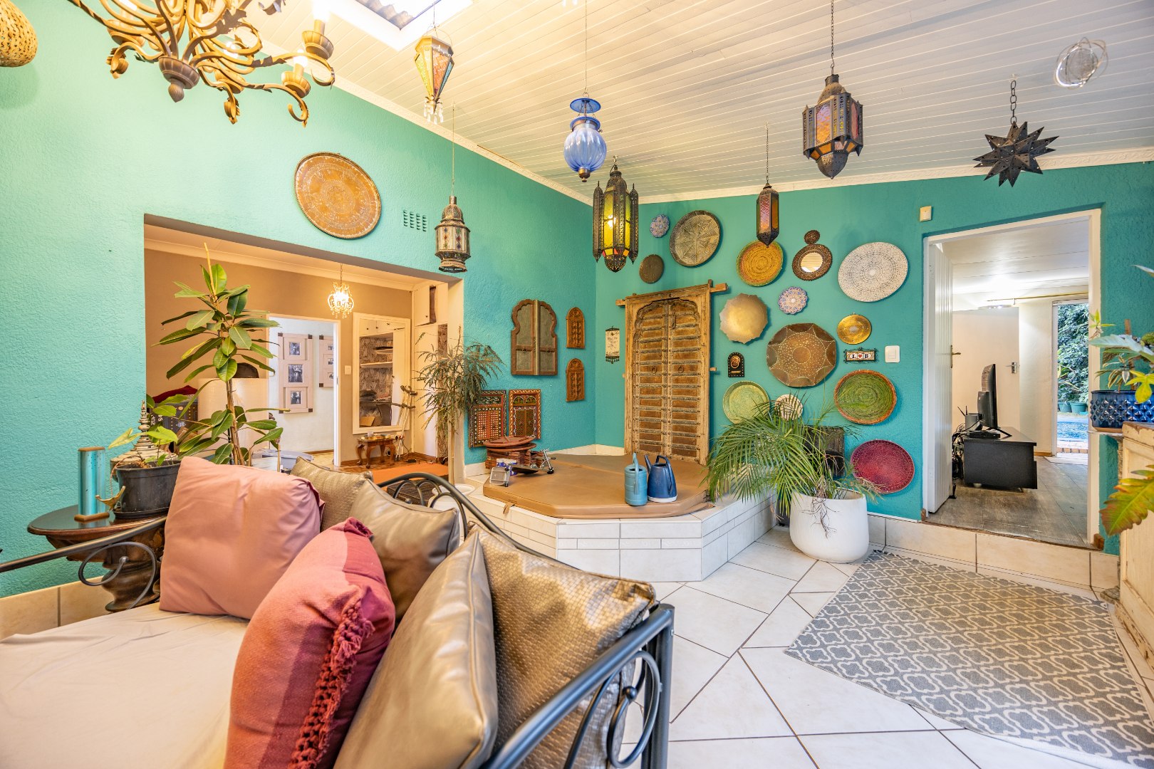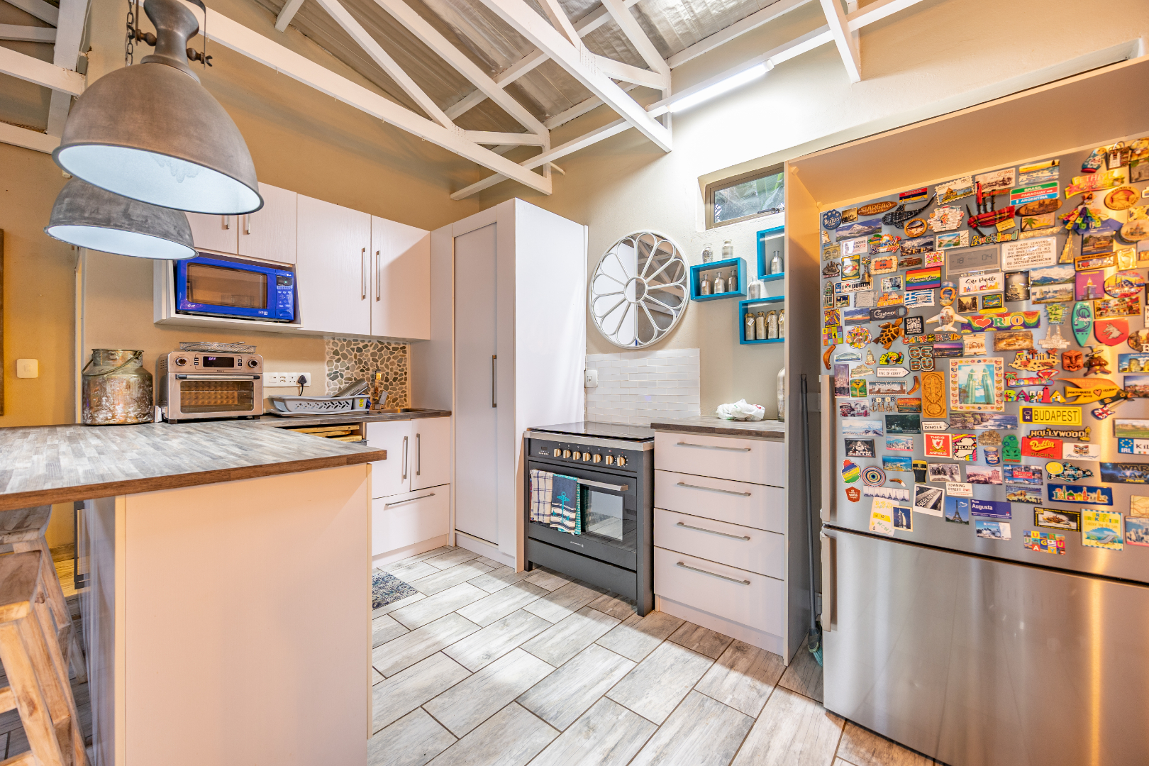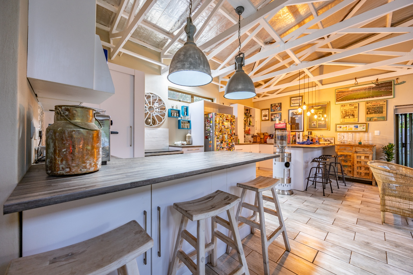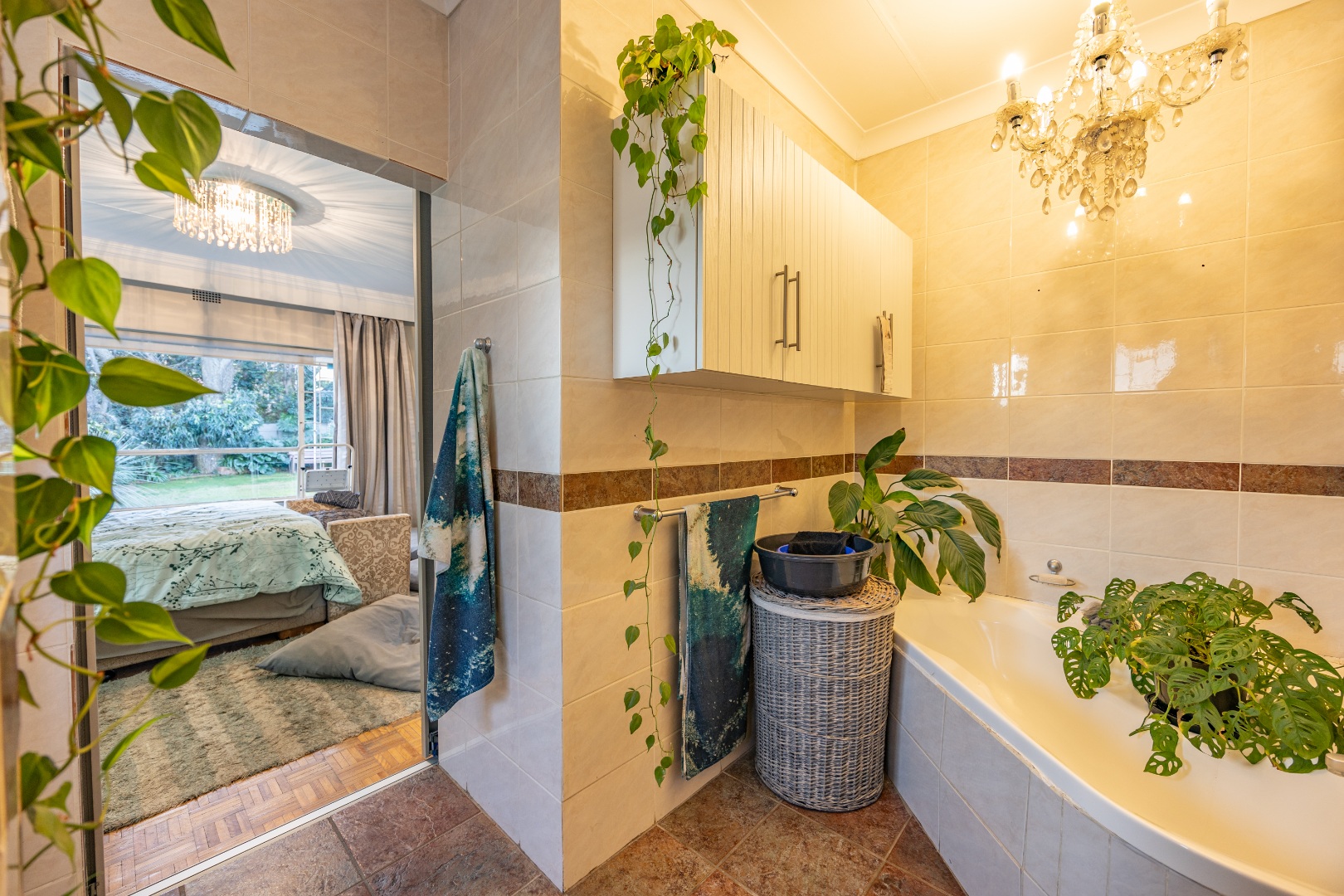 The well-appointed kitchen is complemented by a separate laundry room and a walk-in wine cellar. There are three main bedrooms, including a spacious master with en-suite (in original condition) and two additional bedrooms — one of which connects to a secondary TV lounge with access to the garden. A recently redone guest bathroom with a shower adds modern convenience. There's also a private study, a second office (or fourth bedroom), and multiple outside rooms ideal for work-from-home, studio space, or guest suites — complete with their own geyser and bathroom facilities.