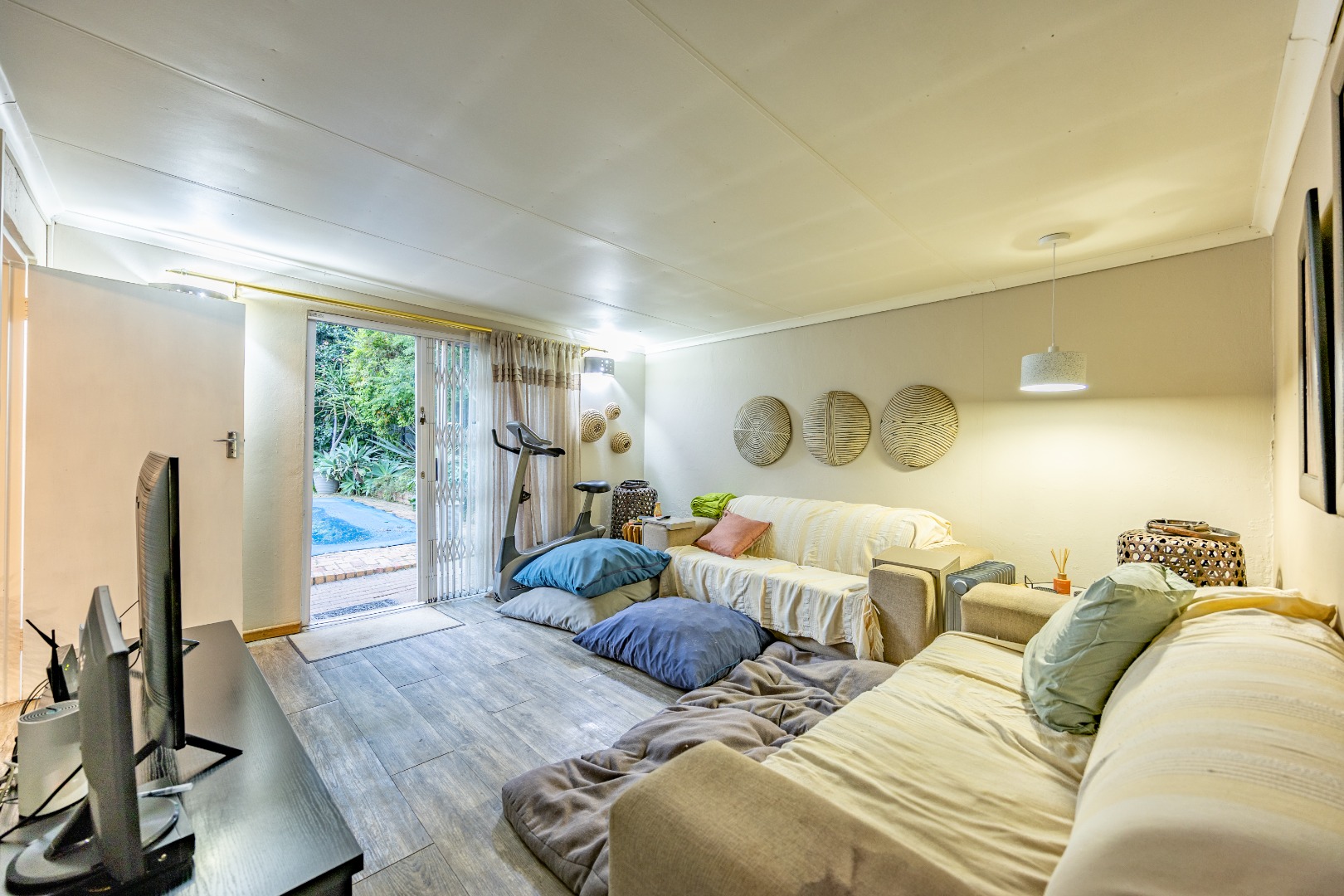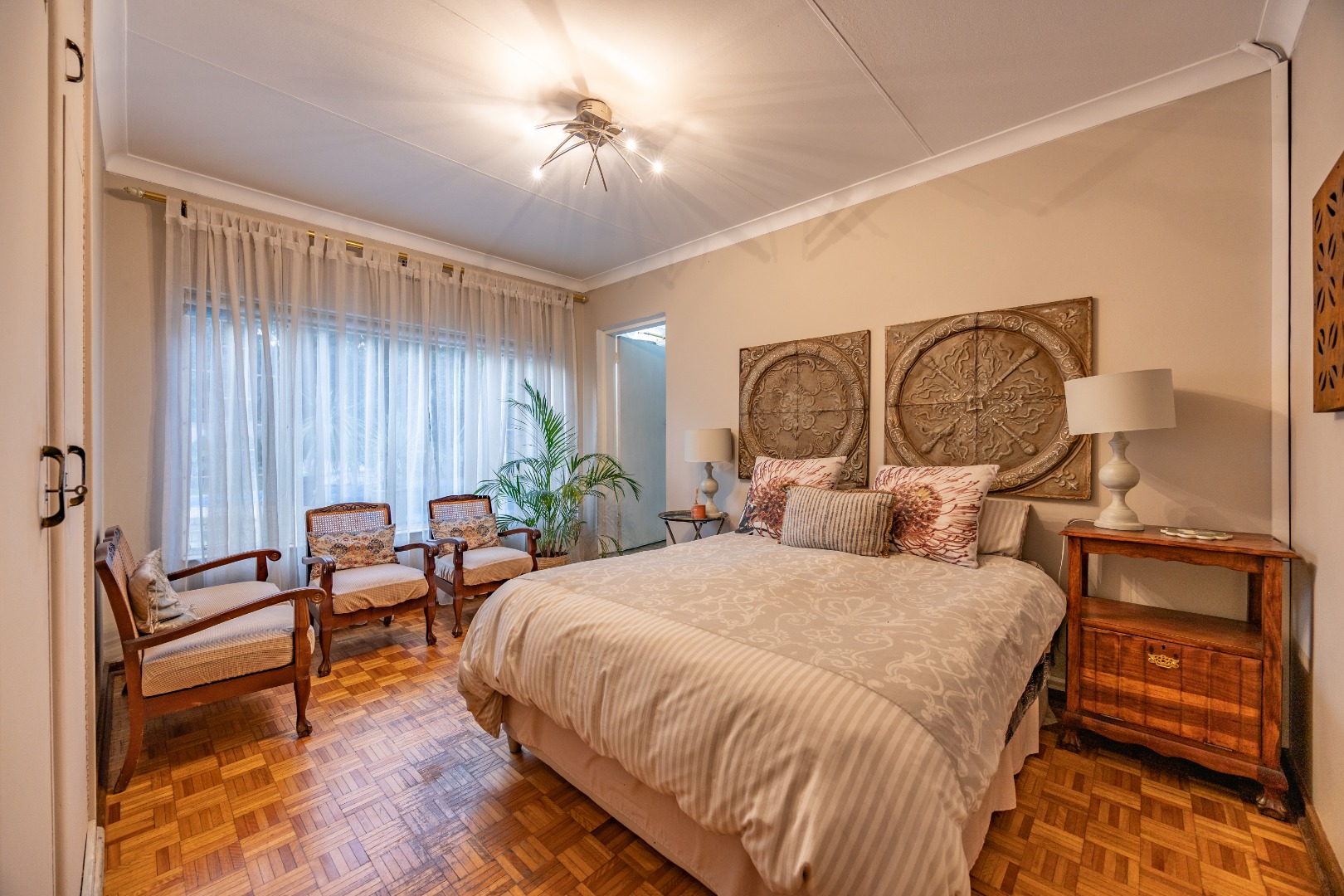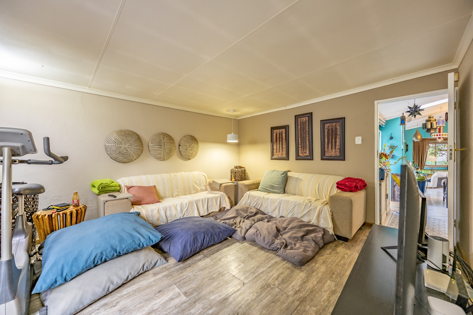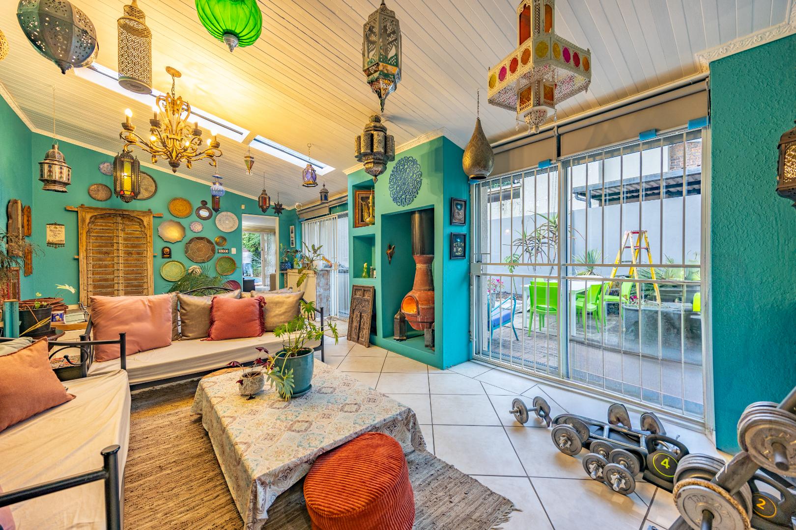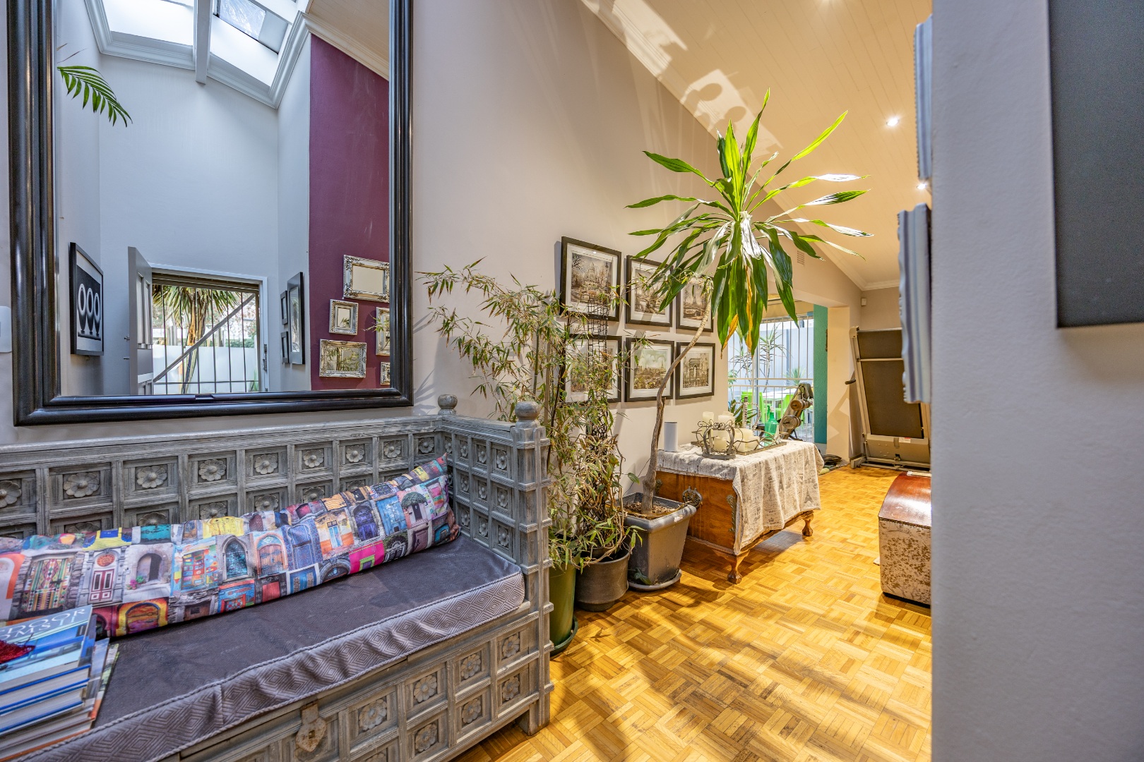 The well-appointed kitchen is complemented by a separate laundry room and a walk-in wine cellar. There are three main bedrooms, including a spacious master with en-suite (in original condition) and two additional bedrooms — one of which connects to a secondary TV lounge with access to the garden. A recently redone guest bathroom with a shower adds modern convenience. There's also a private study, a second office (or fourth bedroom), and multiple outside rooms ideal for work-from-home, studio space, or guest suites — complete with their own geyser and bathroom facilities.