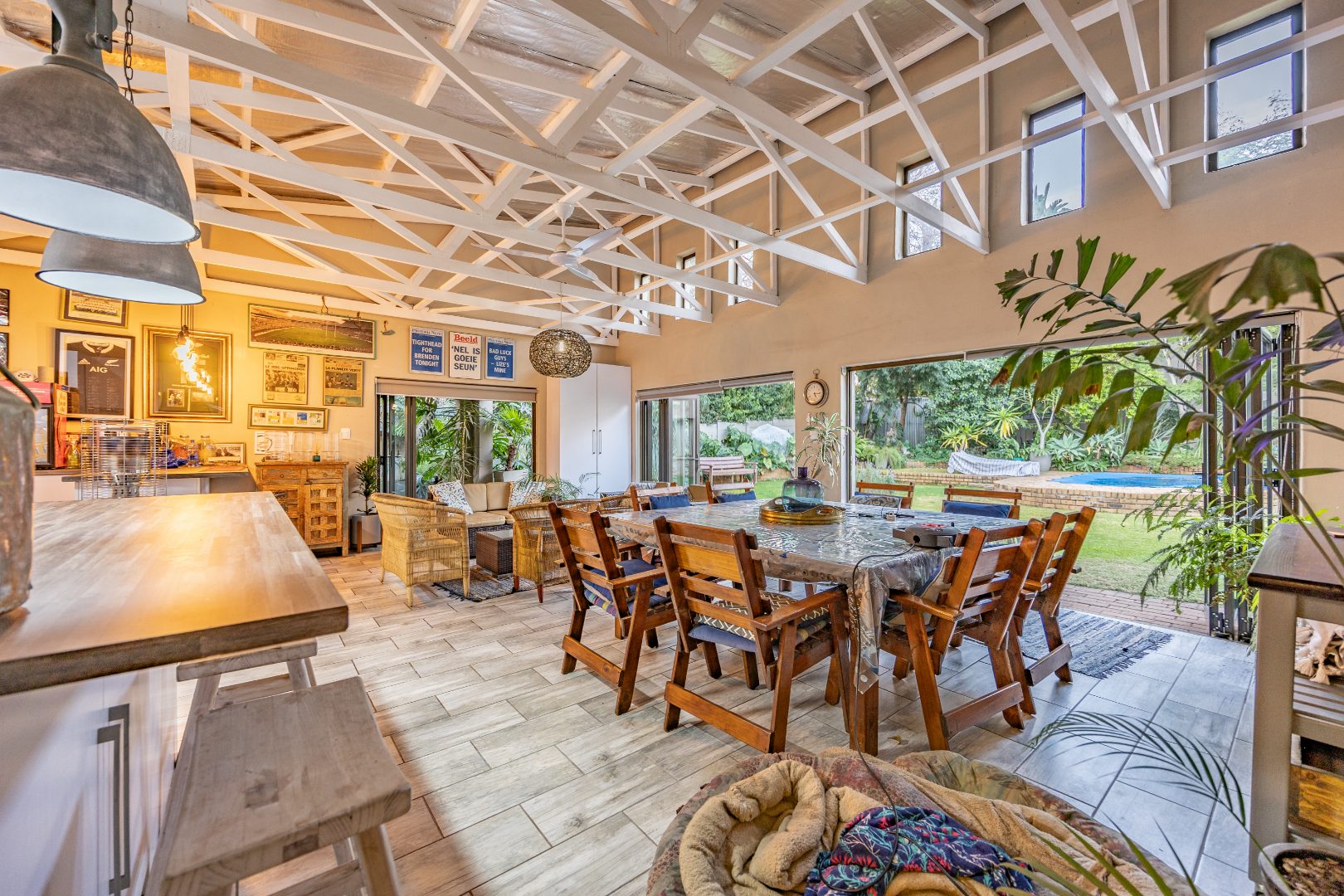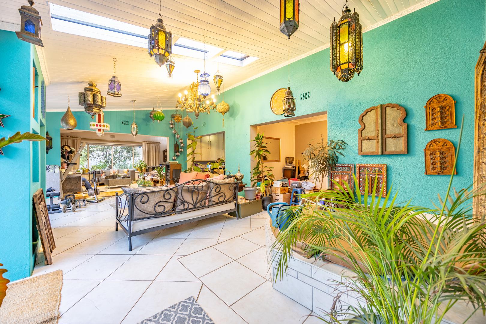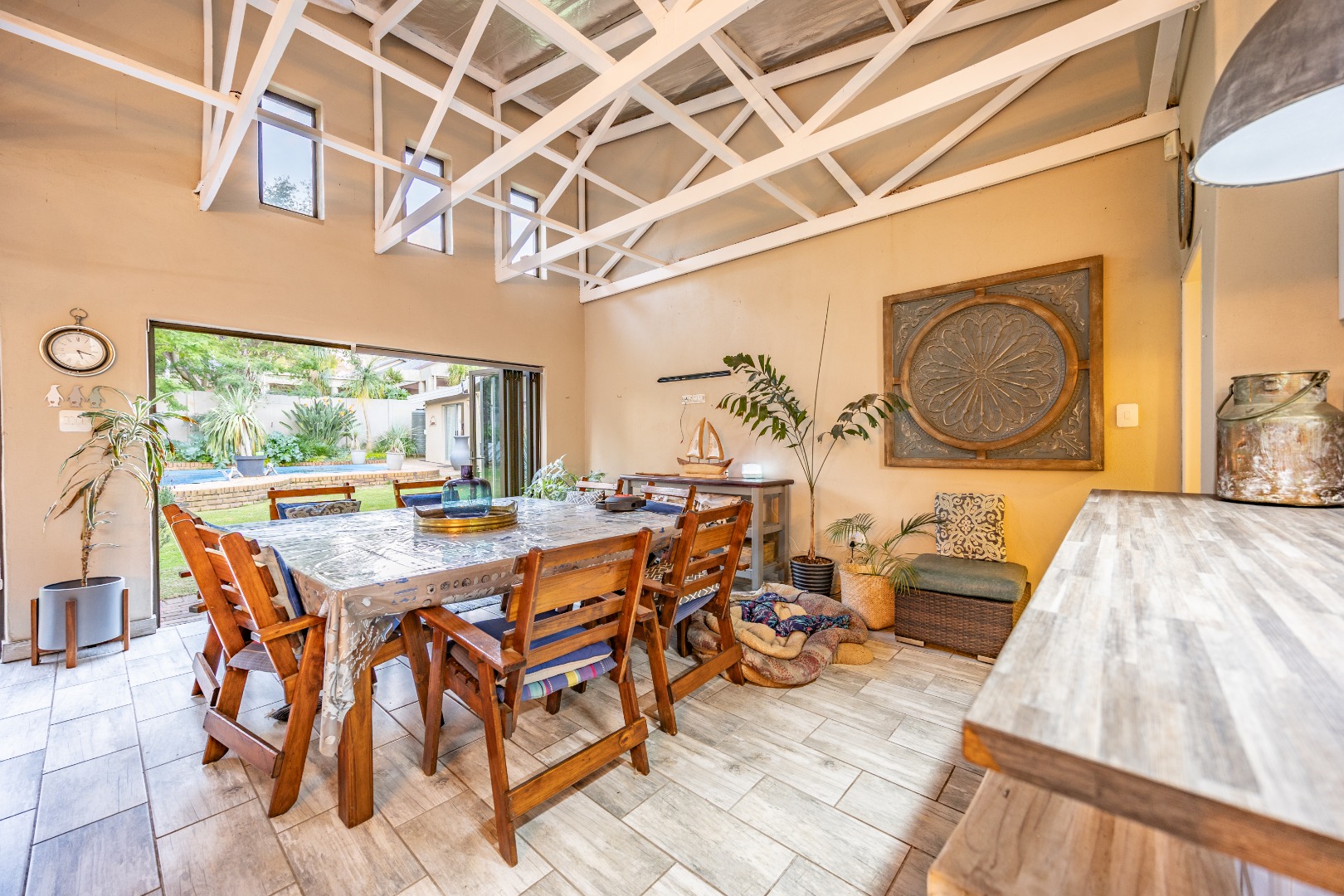 The home welcomes you with three automated garages and a lush, established garden with irrigation, fed by a powerful 100m-deep borehole and a rainwater tank. Inside, you’ll find multiple living zones, including a dining room, a formal lounge with fireplace, and an entertainment area featuring a charming Mexican fireplace.