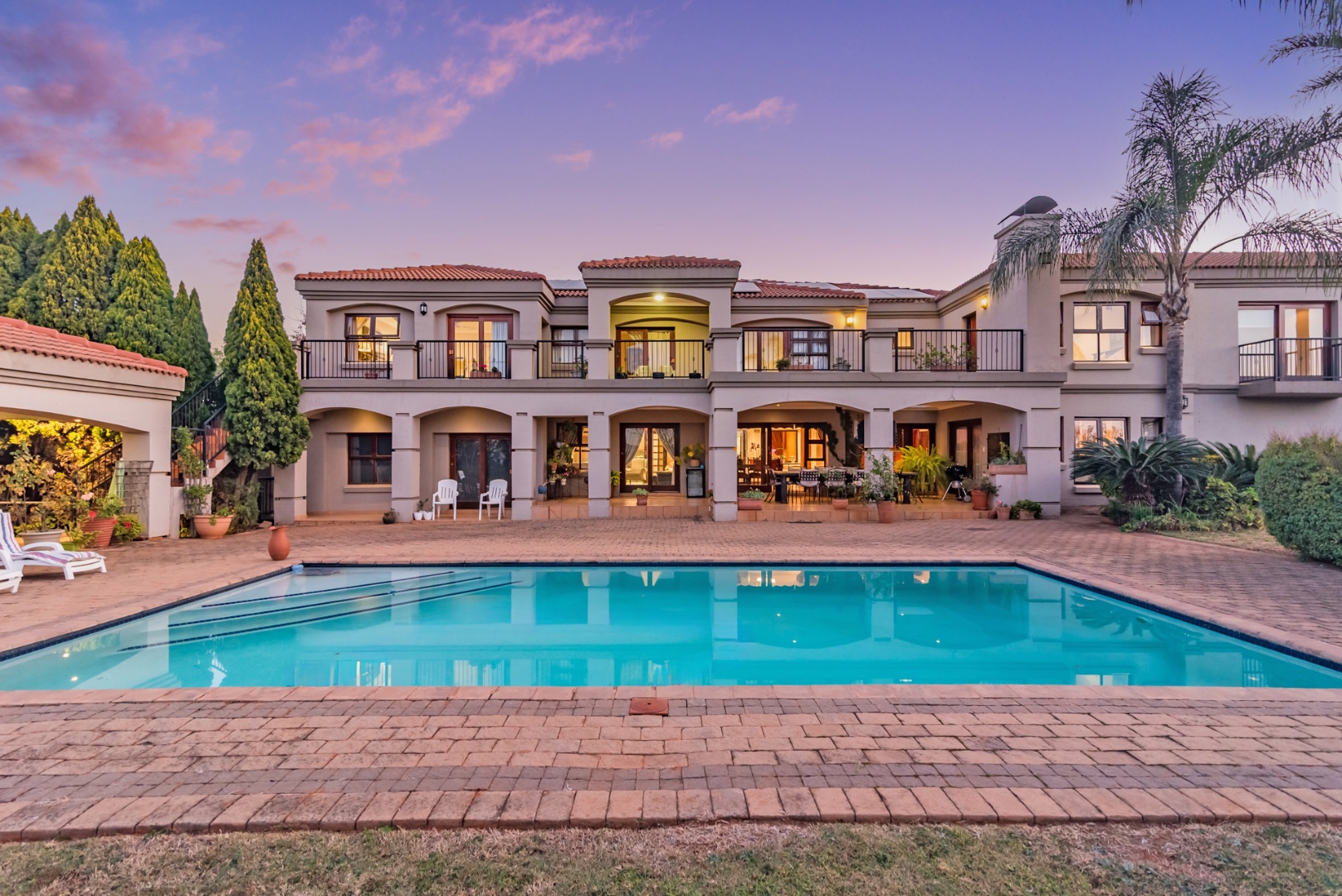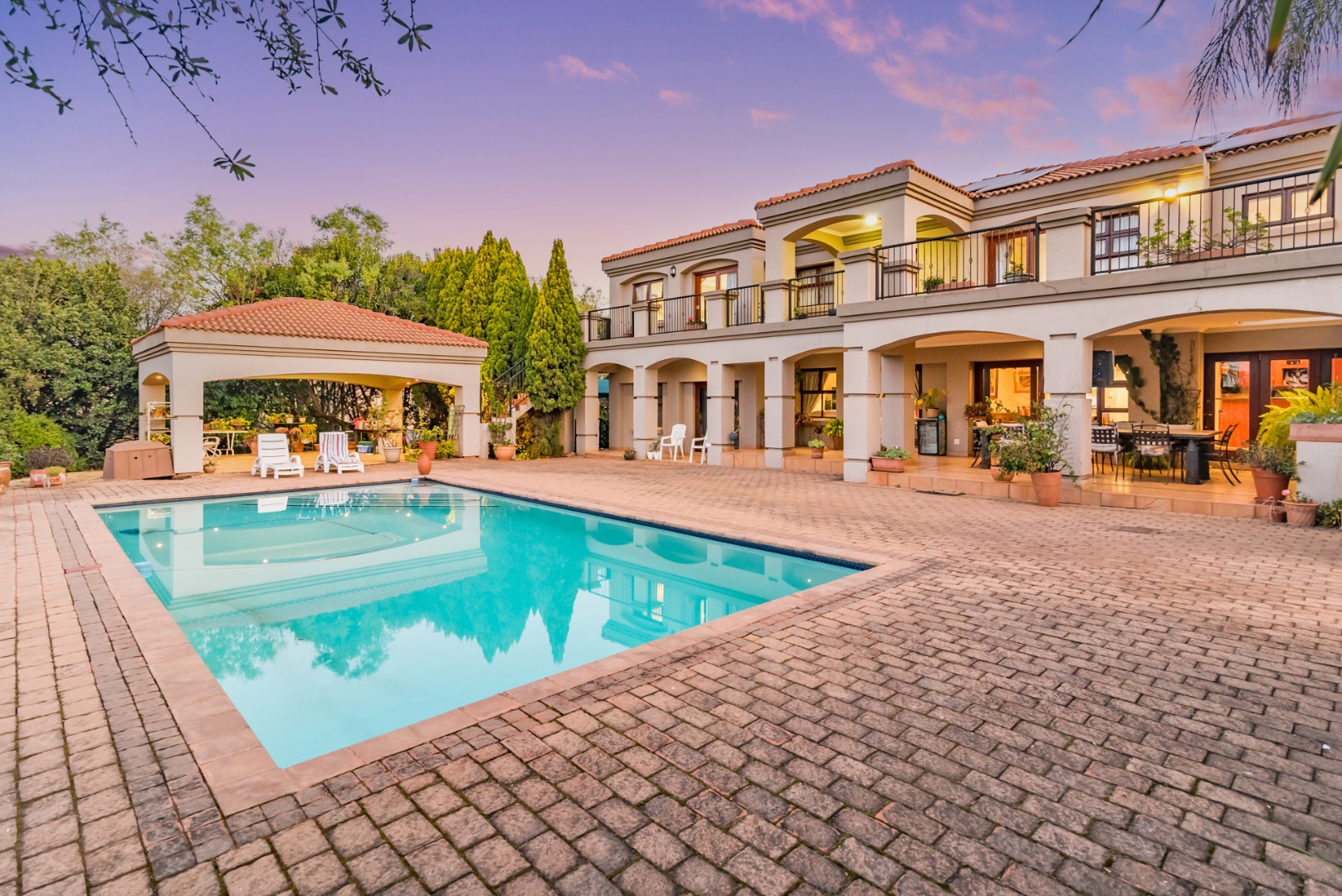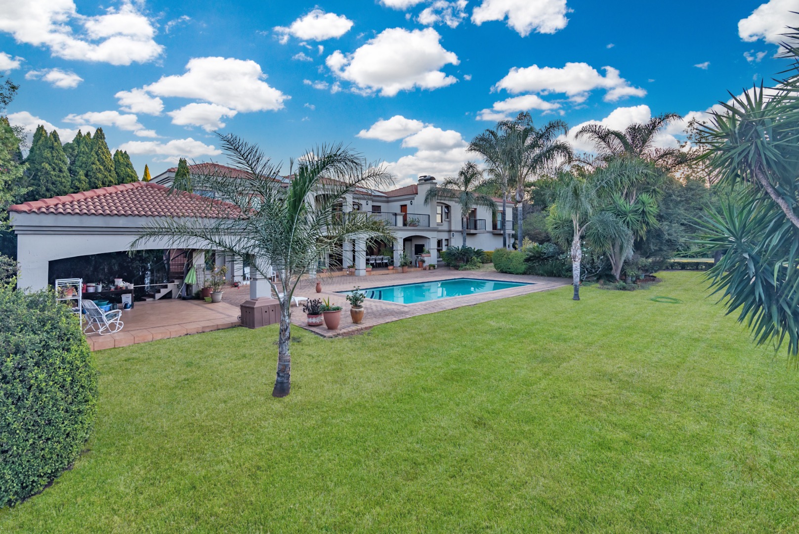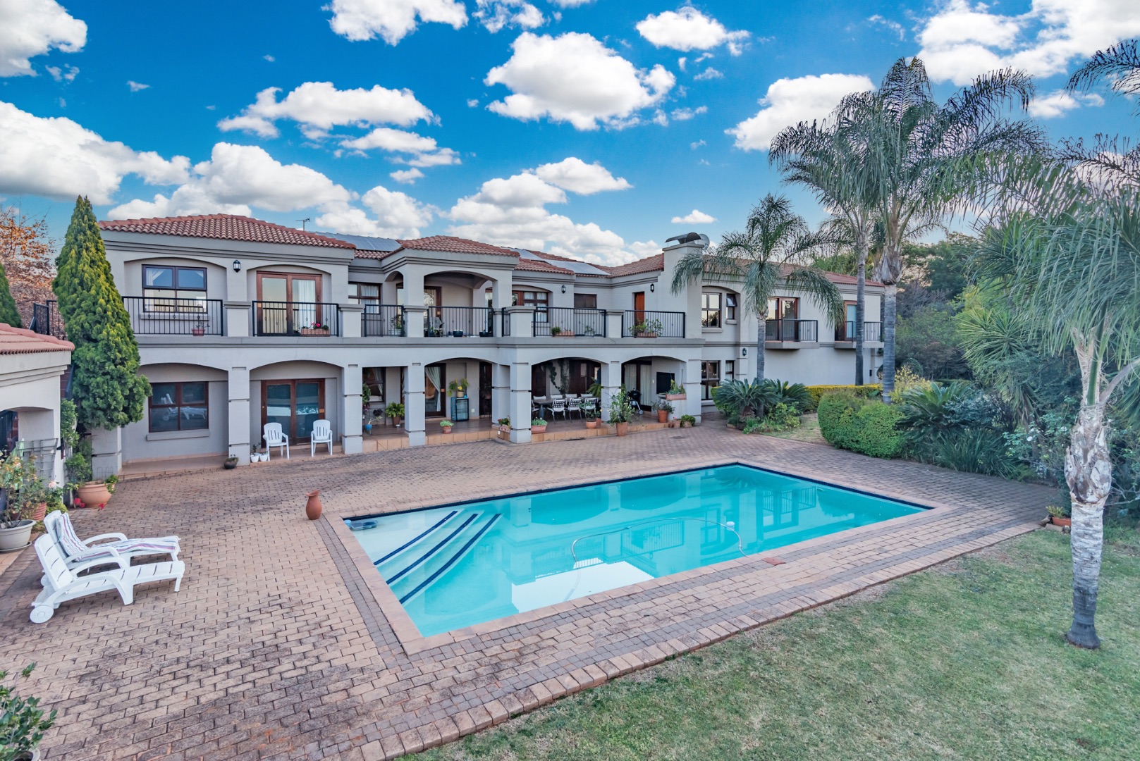 bar, 6 living rooms, 3 garages, a sparkling pool, solar (10 panels), inverter &