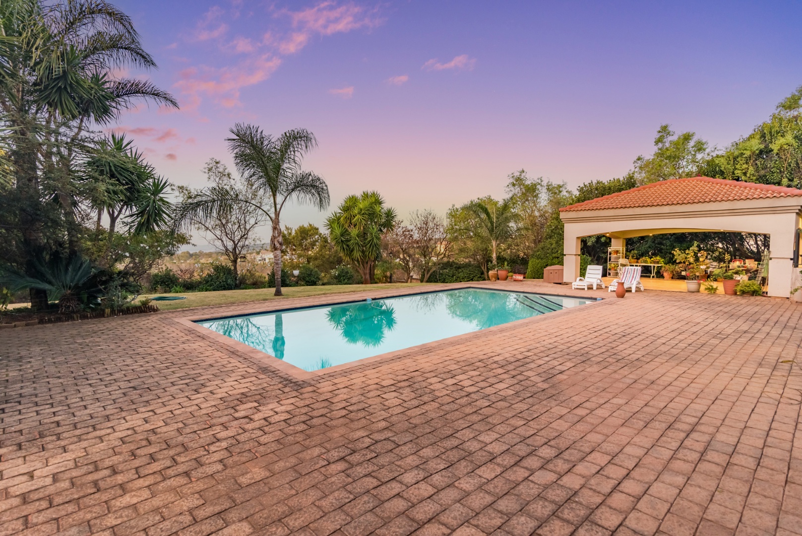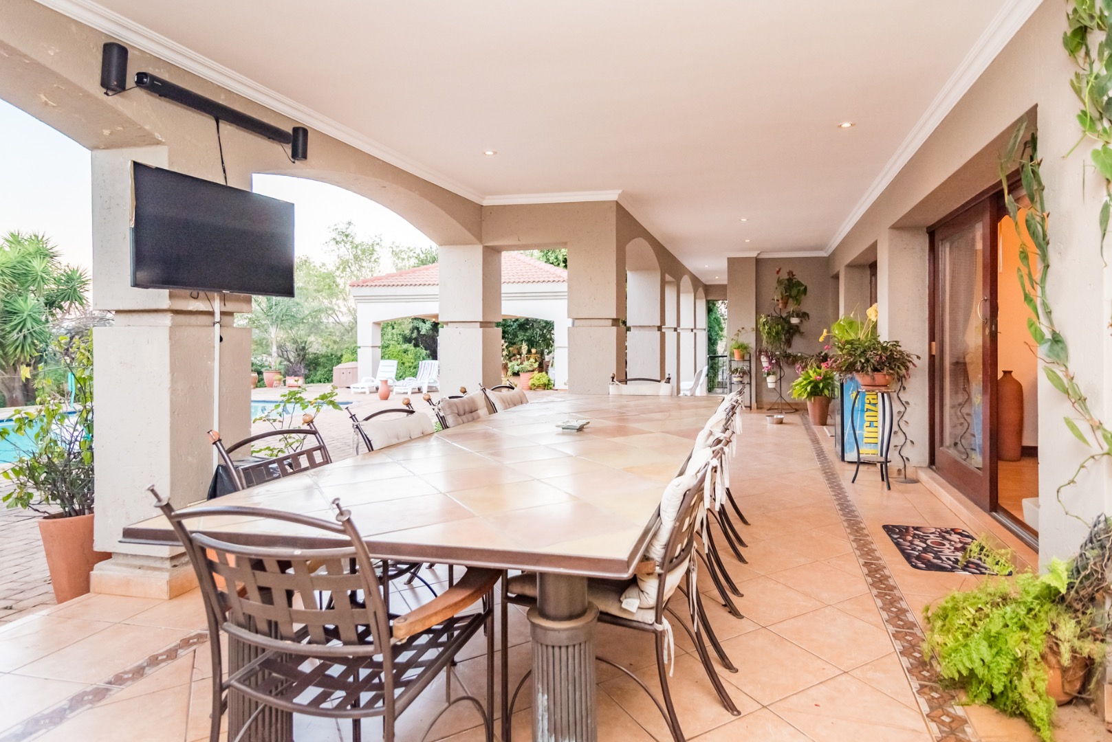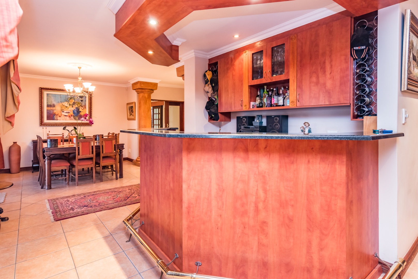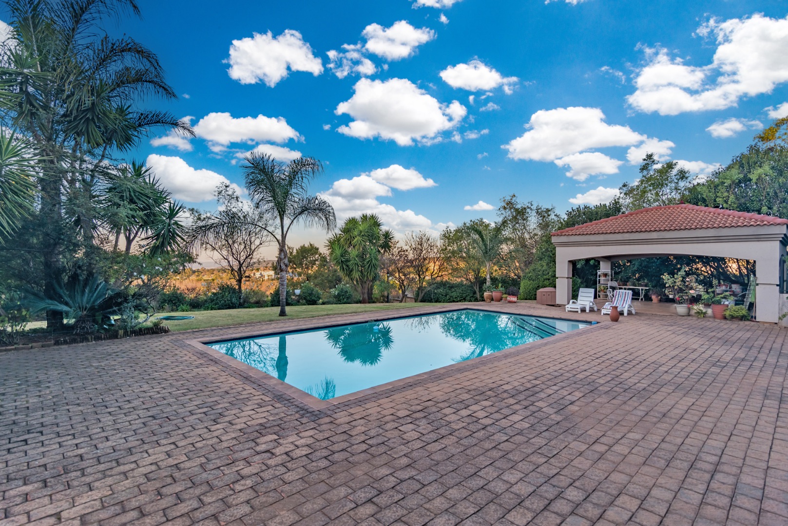 bar, 6 living rooms, 3 garages, a sparkling pool, solar (10 panels), inverter &