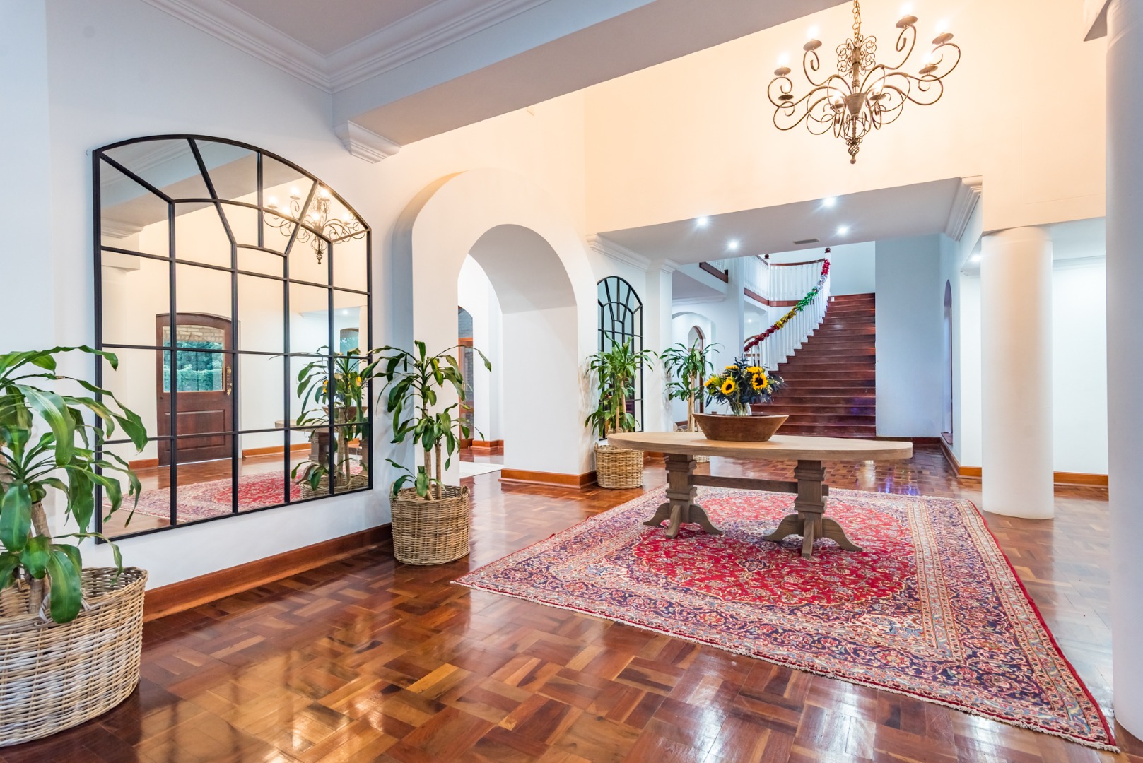 hall highlighted by an impressive solid-wood sweeping staircase - a true