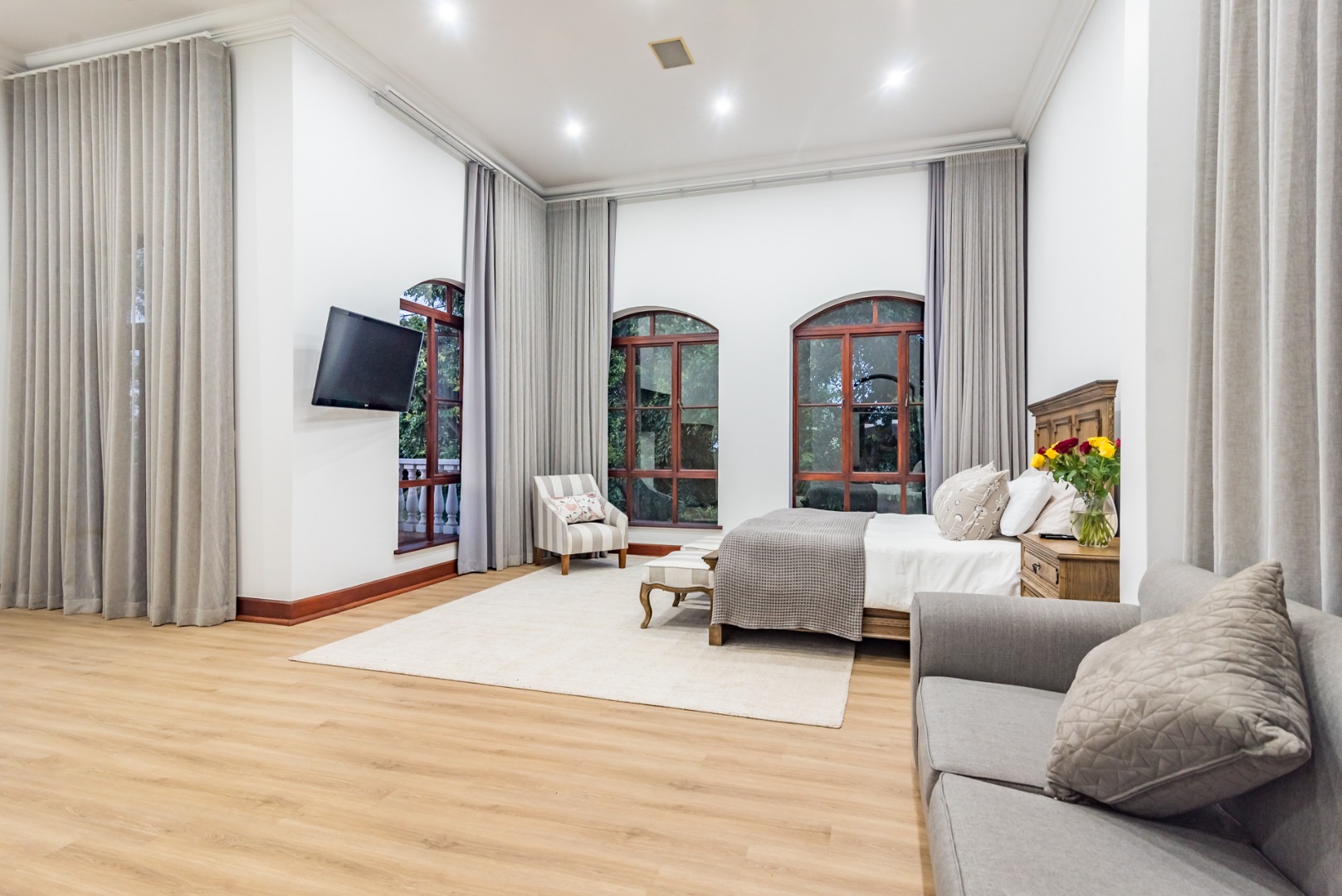 bedroom is a private haven of its own, boasting a lounge area and an expansive