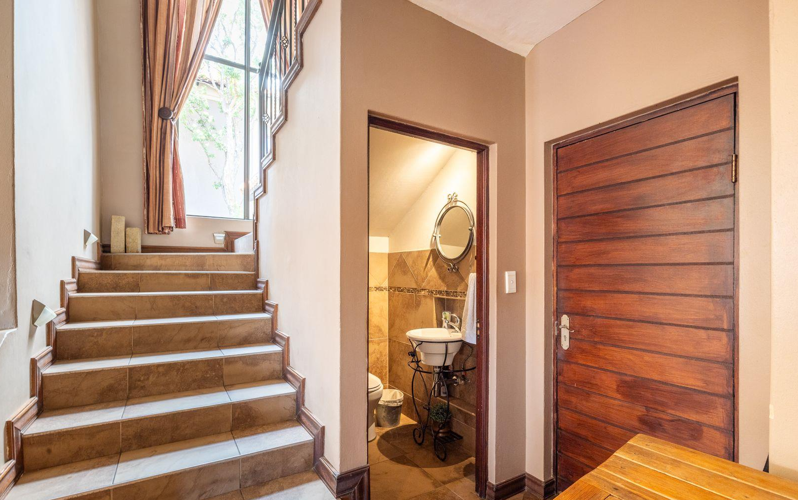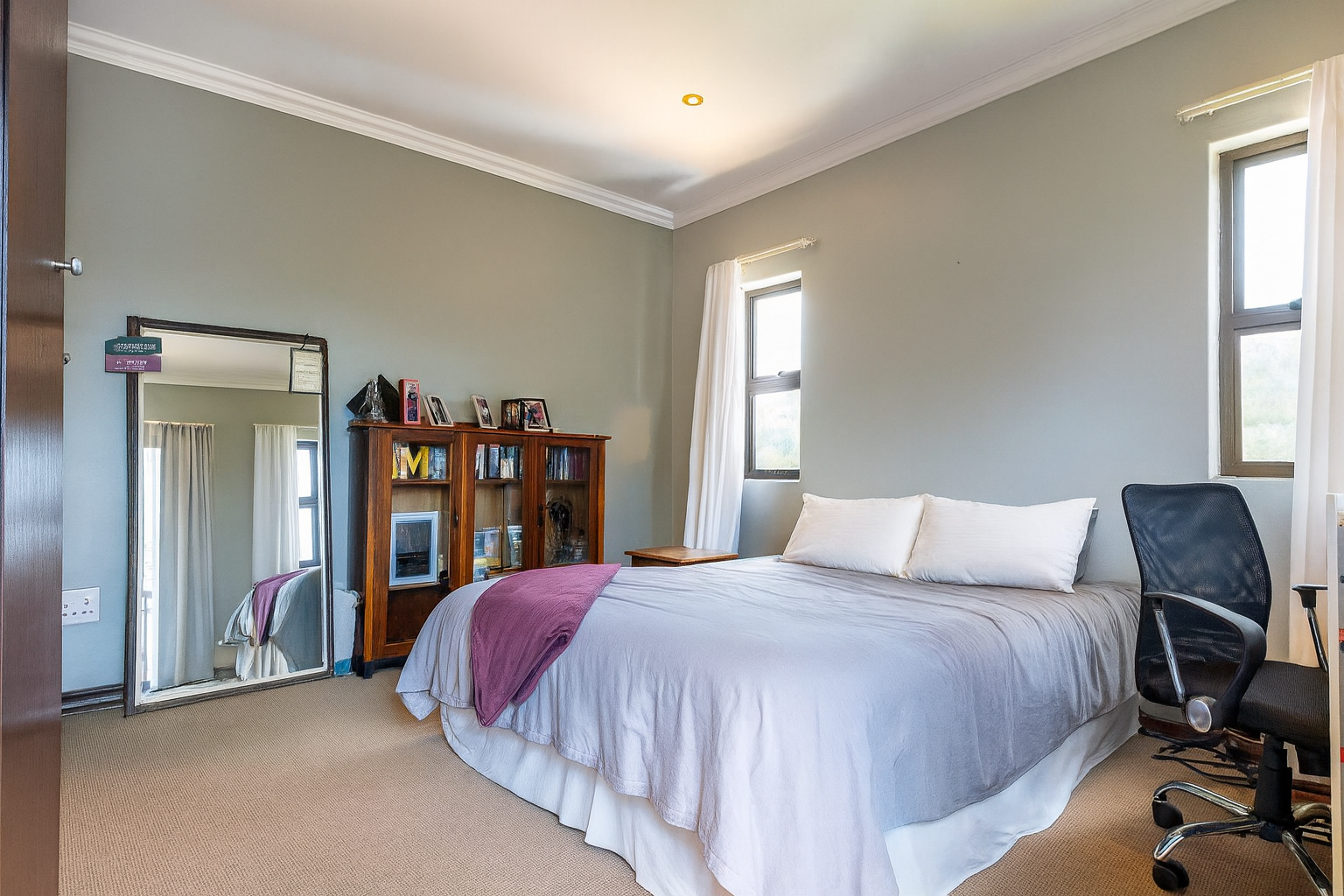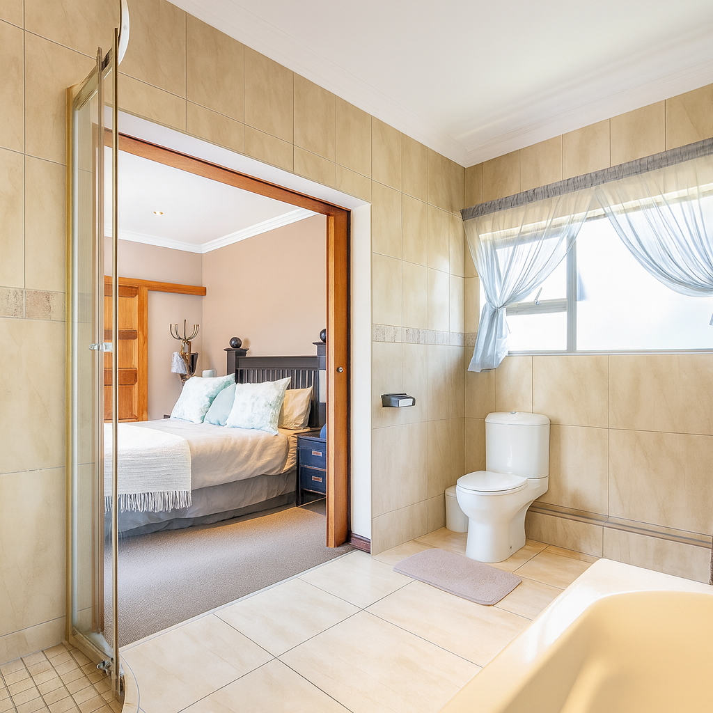 This beautifully maintained double-storey home in Mooikloof Gardens Estate offers a practical, inviting layout perfect for modern family living. The ground floor features a seamless flow between the family room, dining room, and kitchen—ideal for everyday comfort and easy entertaining. A stacking door opens the family room onto a covered patio, while the kitchen offers generous preparation space, a prep bowl, a breakfast seating area, and a separate scullery for added convenience.