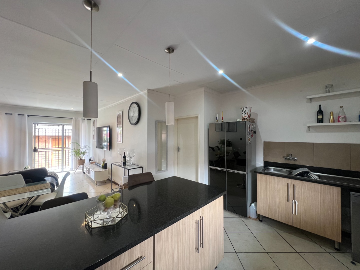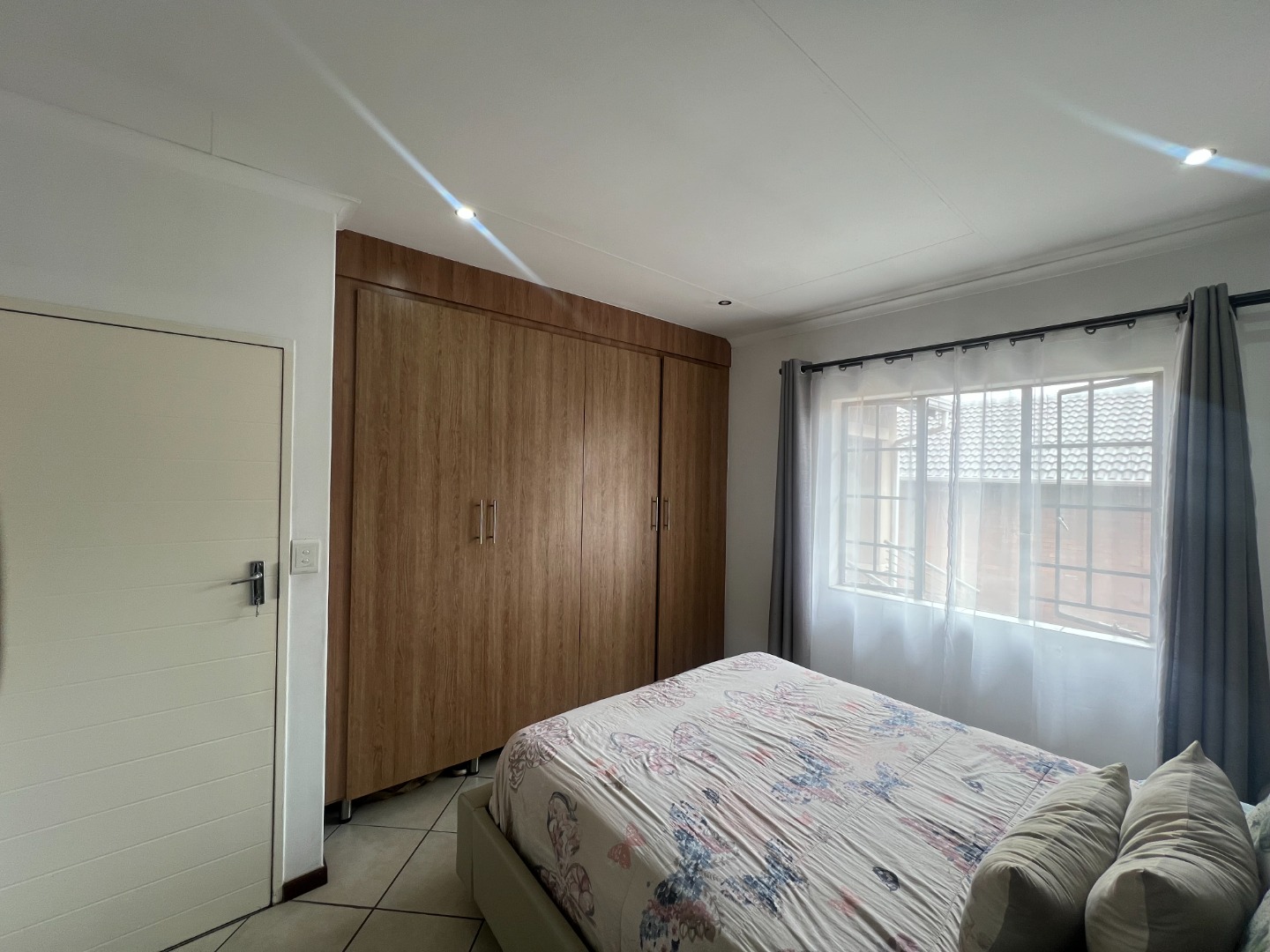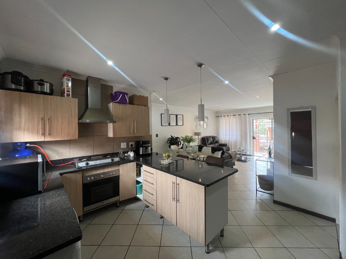 Tucked away in the heart of Mooikloof Ridge Estate lies a home that speaks of warmth, space, and serenity. This beautifully designed three-bedroom, two-bathroom townhouse welcomes you with soft natural light, open spaces, and a sense of ease that makes every day feel like homecoming. The open-plan living and dining area flows effortlessly from a modern, well-fitted kitchen—a space that brings family and friends together. Beyond the glass doors, a private garden awaits: quiet in the mornings, alive with laughter in the afternoons, and peaceful under the evening sky.