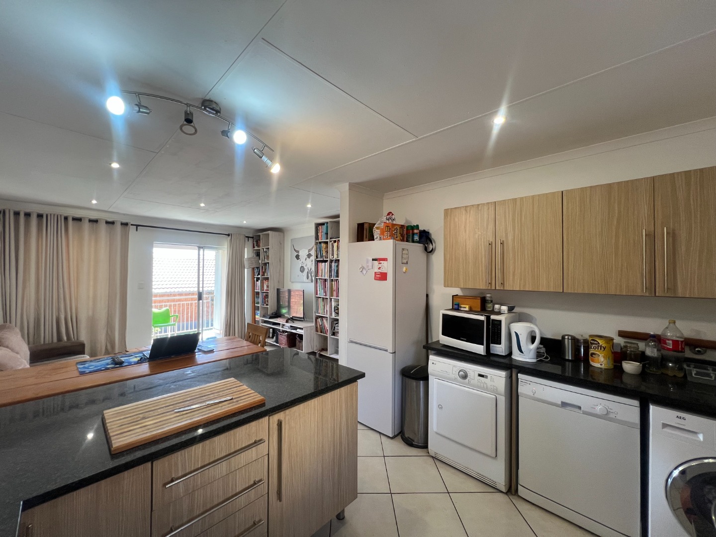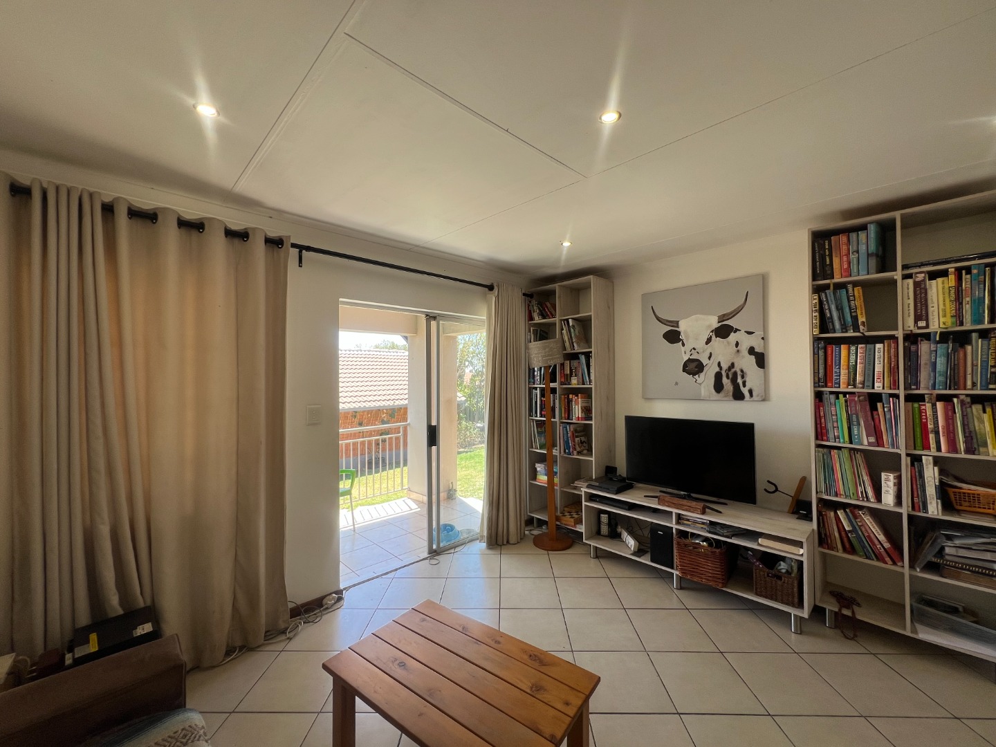 The home boasts a spacious open-plan living and dining area, flowing seamlessly into a modern, well-equipped kitchen with ample cupboard space and a breakfast counter. The three bedrooms are generously sized, with built-in cupboards, while the main bedroom includes an en-suite bathroom for added comfort. A second bathroom serves the additional bedrooms, making the layout both practical and family-friendly. Outdoors, you’ll find a private garden – perfect for entertaining, relaxing, or simply enjoying the fresh air. The unit also includes a double garage and visitor parking.
