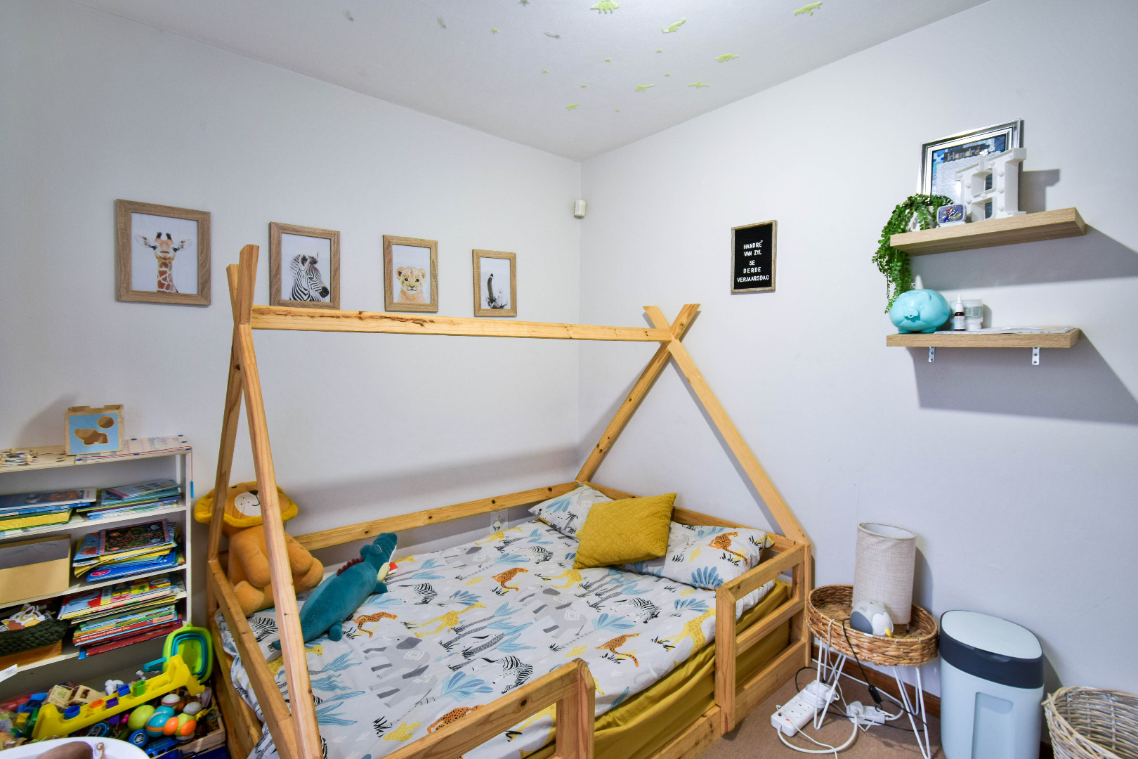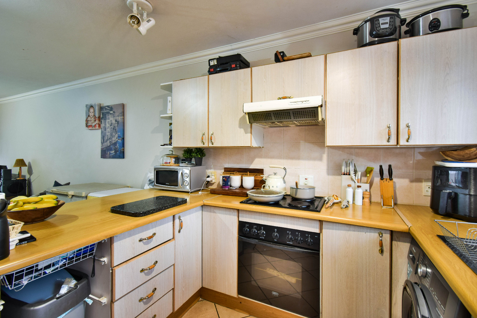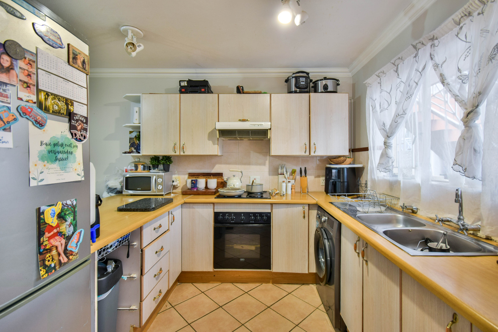 Inside, the open-plan kitchen flows seamlessly into the living areas, featuring ample counter space and storage. Both bedrooms are light-filled and fitted with built-in cupboards, while the bathroom is spacious and functional. Outdoors, the private garden and built-in braai create the ideal setting for relaxed weekends or entertaining friends.