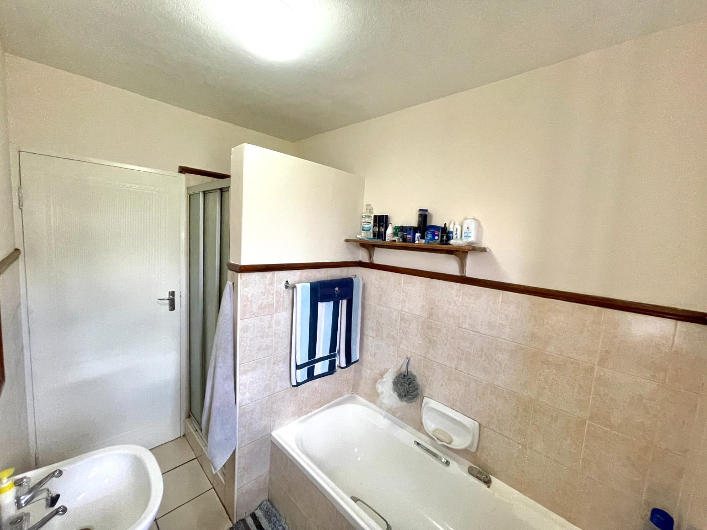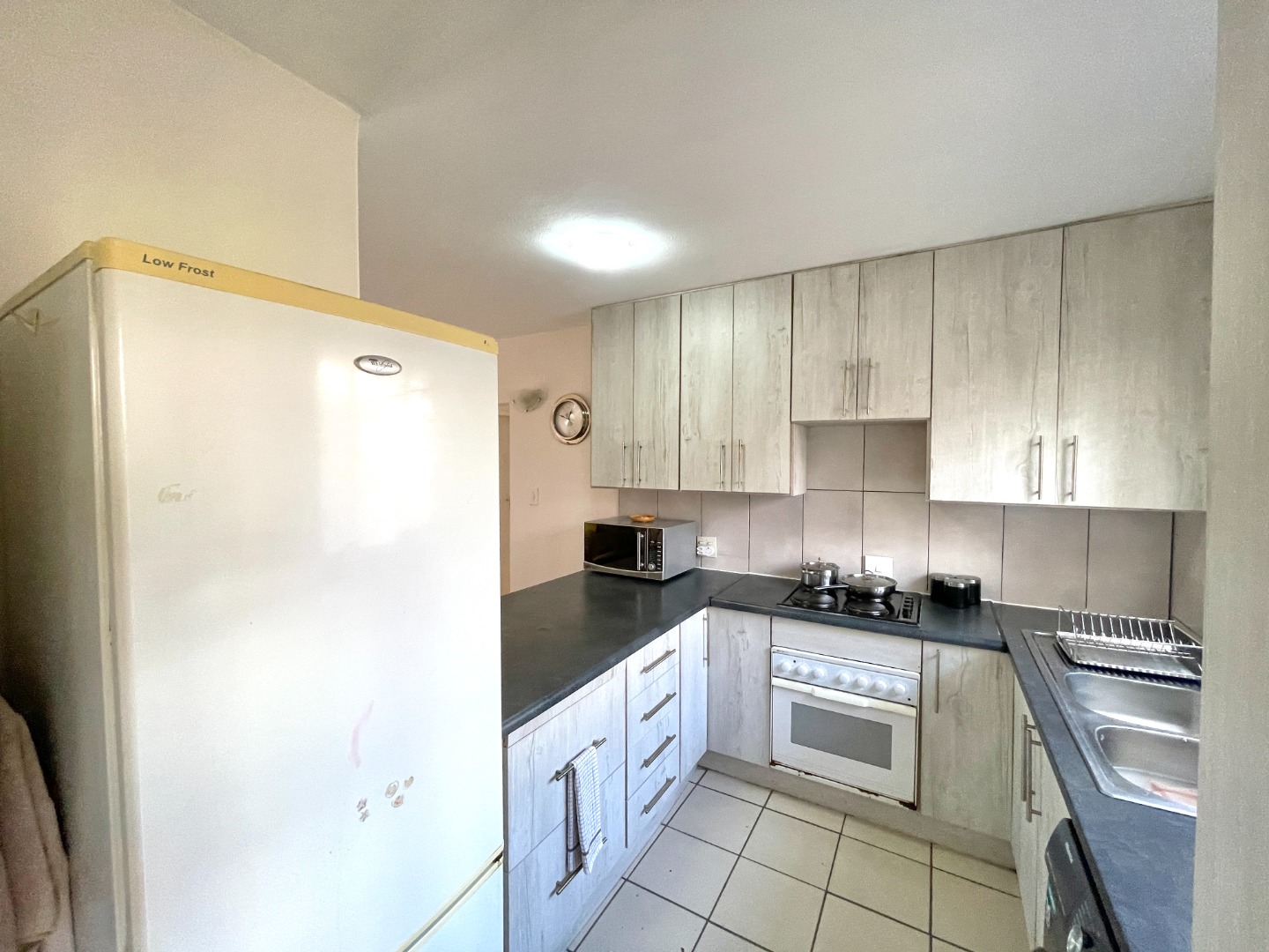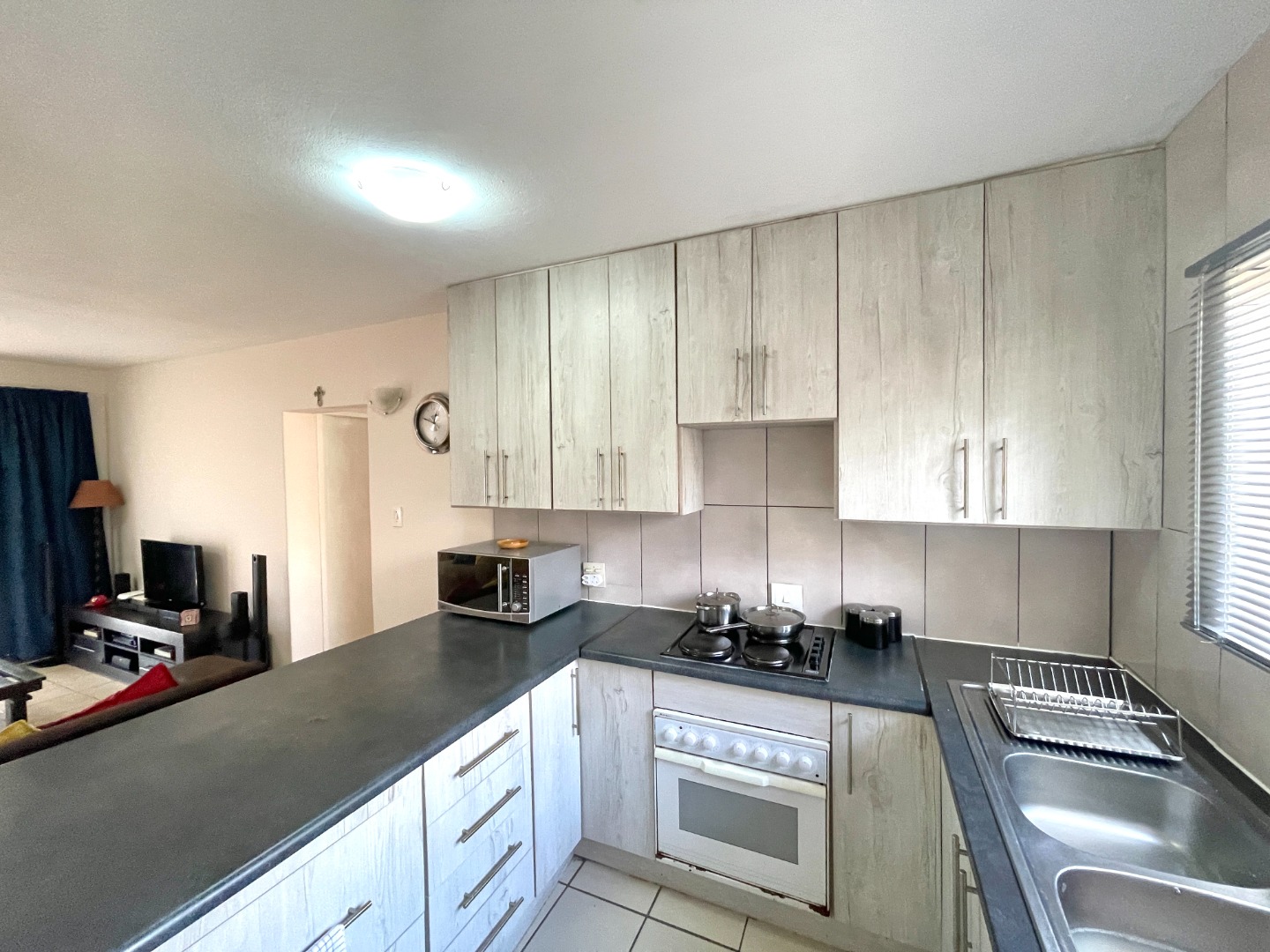 Welcome home to a bright and inviting ground-floor unit that blends comfort, practicality, and modern-day convenience. The spacious lounge flows effortlessly into a cozy breakfast nook and a functional kitchen with space for two appliances. An electric hob and oven are already fitted, and the layout accommodates a single-door fridge with ease. The main bedroom includes a ceiling fan for year-round comfort, the second bedroom offers great natural light, and the shared bathroom features both a bath and a shower giving you the best of both worlds.