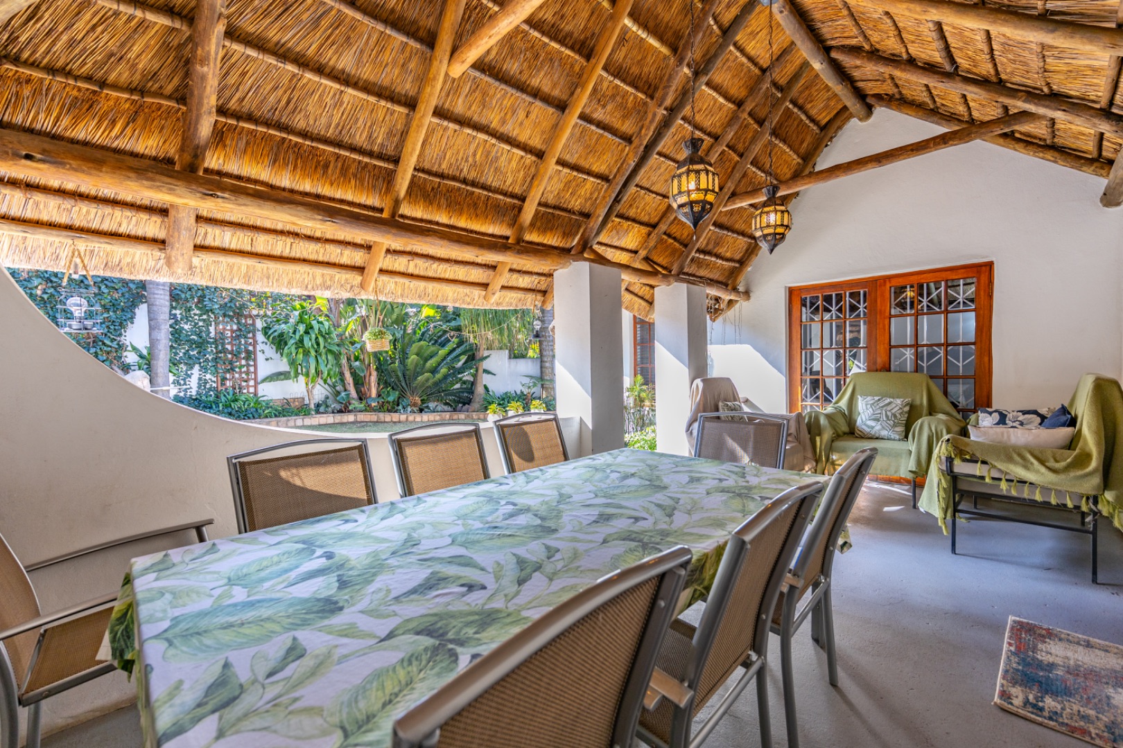 Nestled in a serene neighborhood, this stunning three-bedroom home perfectly blends modern elegance with charming thatched roofing that is newly treated for fire and unwanted bugs.